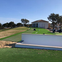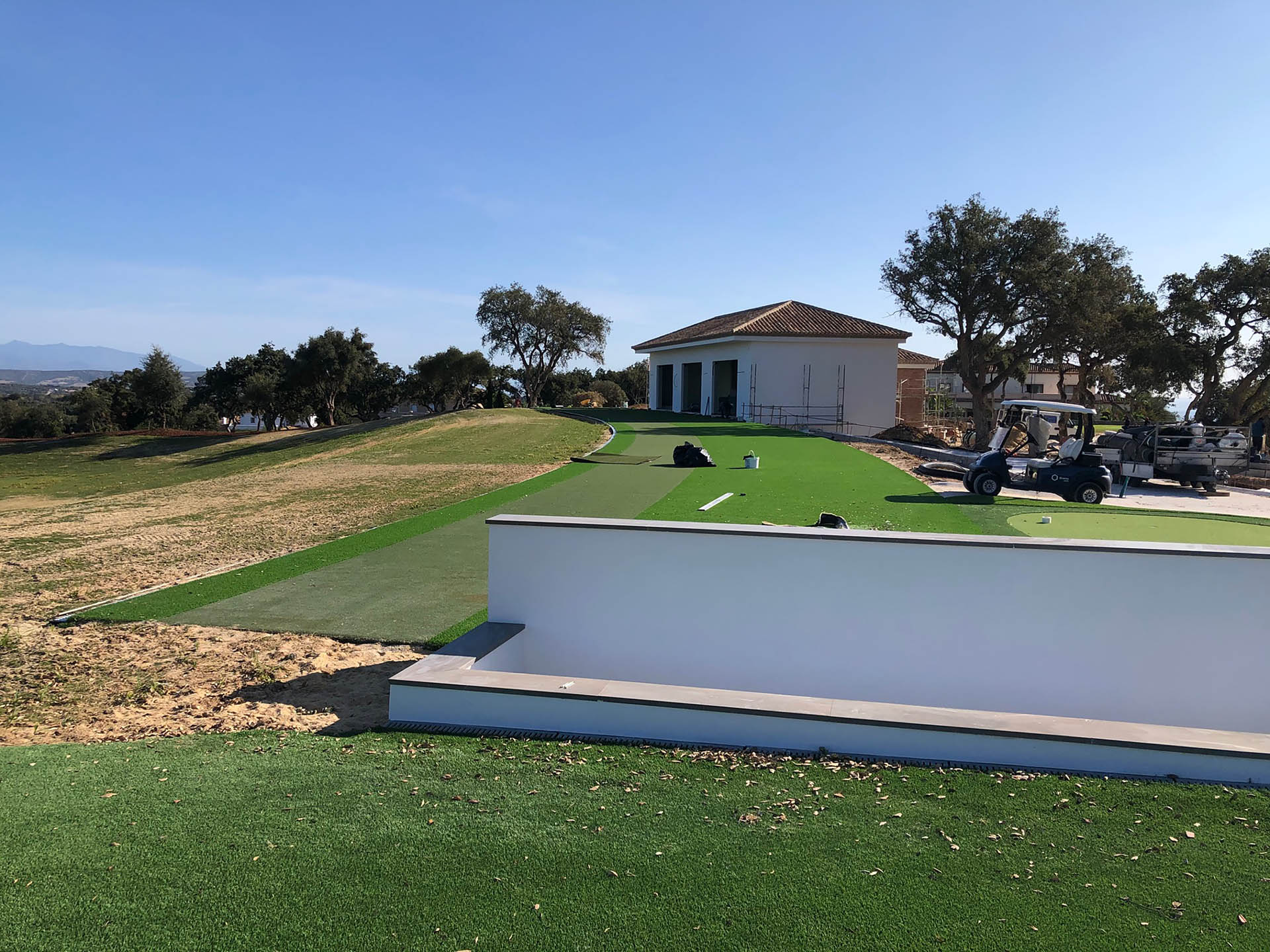 The entire driving range, except for the bunkers, is made of artificial grass. The Practice Green is made of artificial grass! That makes the maintenance of these areas much more economical and always looks neat and clean. In front of the clubhouse there is a huge green for practicing made of “real” grass, 2.9 mm high.