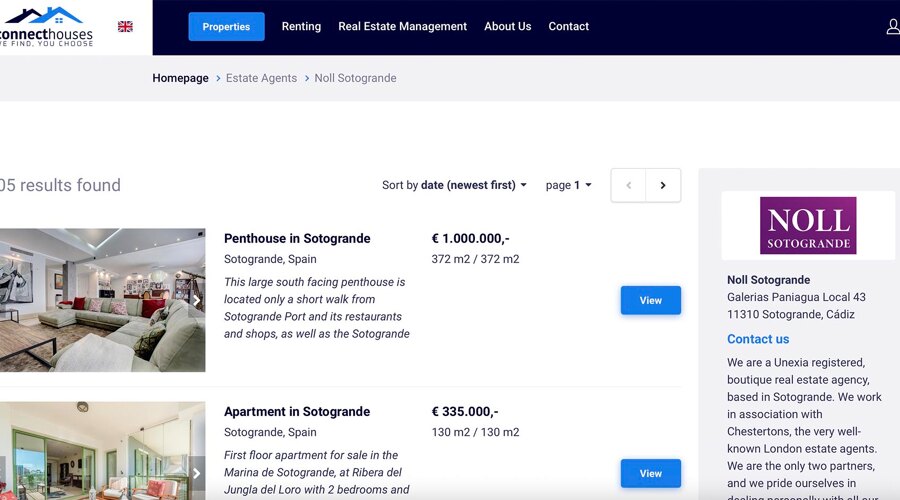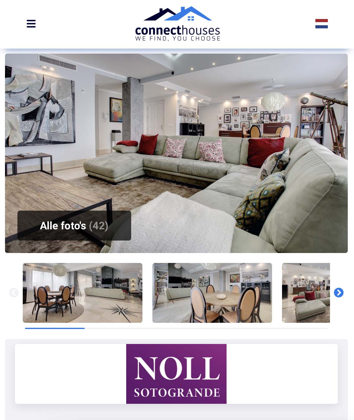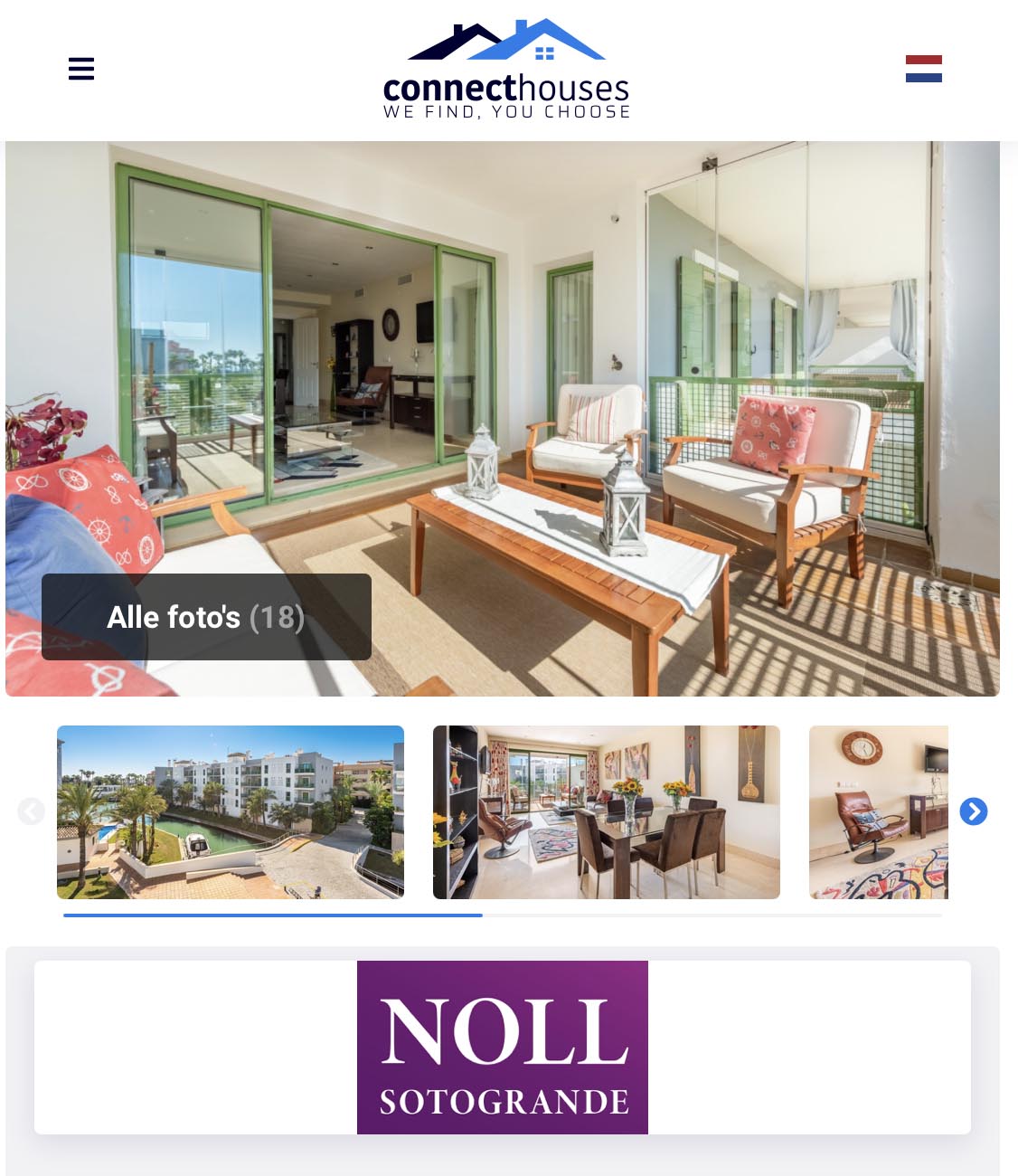 ConnectHouses ist eine internationale Immobilienplattform für Immobilieninteressenten und Immobilienmakler. Noll Sotogrande sucht immer nach neuen Wegen, um ein internationales Publikum zu erreichen, und in diesem Fall wollen wir den niederländischen Markt erreichen.