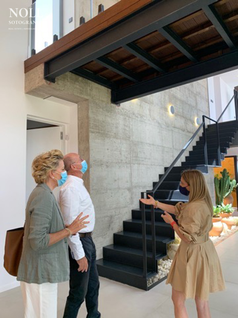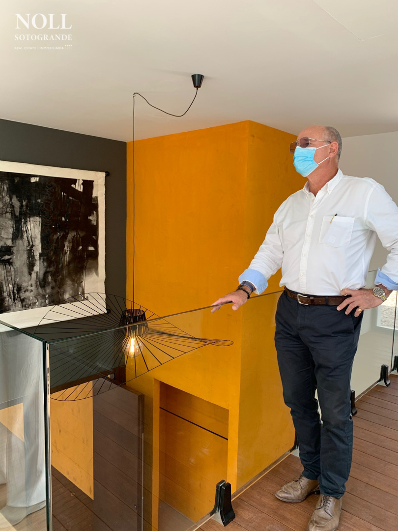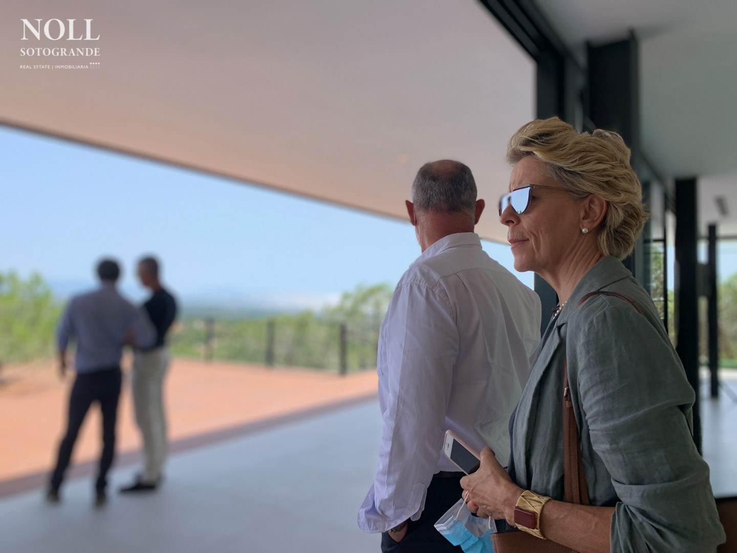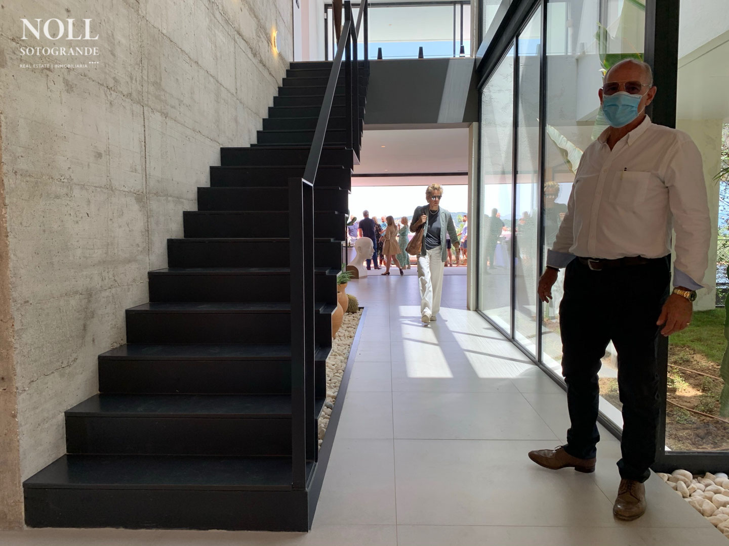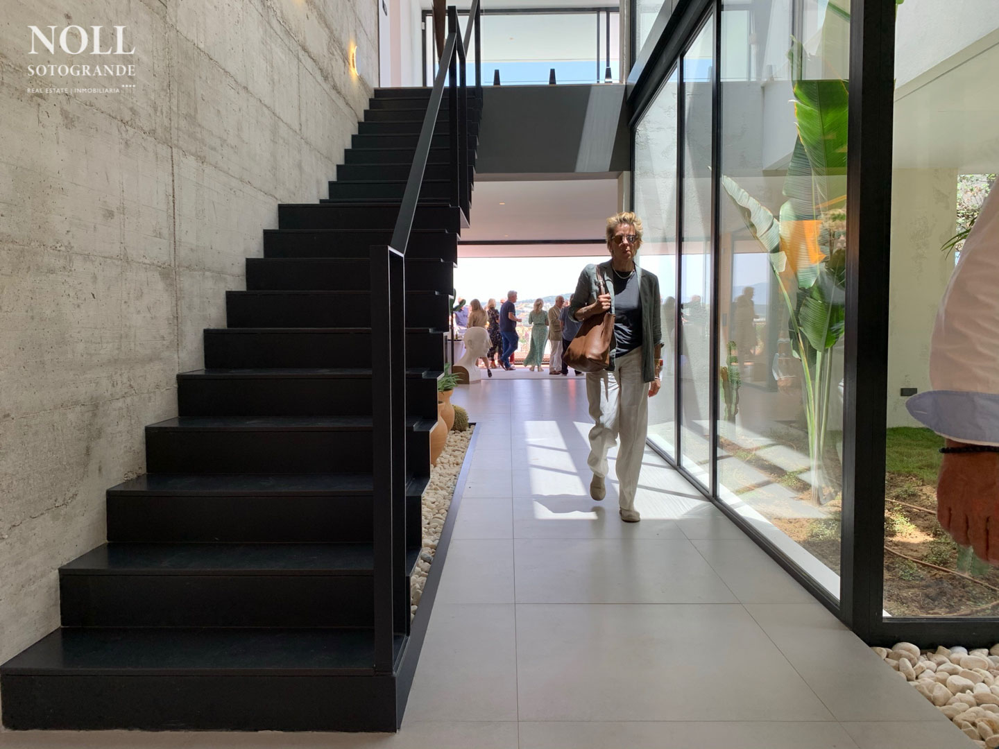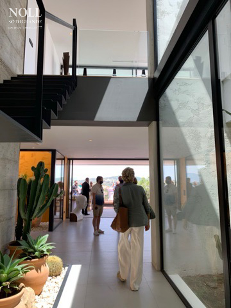 Zu einem Open House in dieser Villa in Sotogrande wurden wir eingeladen, um das fertige Haus zu besichtigen und einige der am Bau beteiligten Personen wie den Architekten Ignacio Merino Rivero zu treffen. Es war sehr interessant, in Sotogrande etwas anderes zu sehen, insofern, dass diese Villa nicht der typischen Villa ähnelt, die wir sonst in Sotogrande sehen. Sie vermittelt das Gefühl, sich in einem Wald zu befinden, in dem nicht nur Bäume das Haus umgeben, sondern auch einige auf der Terrasse wachsen. Die Aussicht ist spektakulär über die Berge der Sierra Bermeja und auf das Meer.