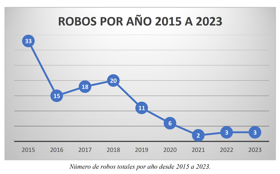 Im Jahr 2023 hatten wir nur 3 Diebstähle. Diese Daten bestätigen zusammen mit den Zahlen aus den Jahren 2021 (2 Diebstähle) und 2022 (3 Diebstähle) den von uns beobachteten Abwärtstrend.