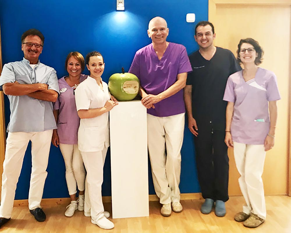 Meine Philosophie ist die interdisziplinäre Zahnheilkunde, was bedeutet, dass man nicht alles auf dem Gebiet der Zahnheilkunde beherrschen können. Man muss sich auf das konzentrieren, was man am besten kann. Deshalb habe ich in der Klinik einen Spezialisten für chirurgische Behandlungen, wie das Einsetzen von Implantaten, Knochentransplantationen usw. Auch einen Spezialisten für kieferorthopädische Behandlungen wie Zahnspangen. Ich habe auch eine Kosmetikerin und einen Arzt für Kunden, die nicht nur nach einer Verbesserung und dem Aussehen ihrer Zähne und ihres Lächelns suchen, sondern auch nach dem Bereich um die Zähne, die Haut, das Gesicht und den Hals.