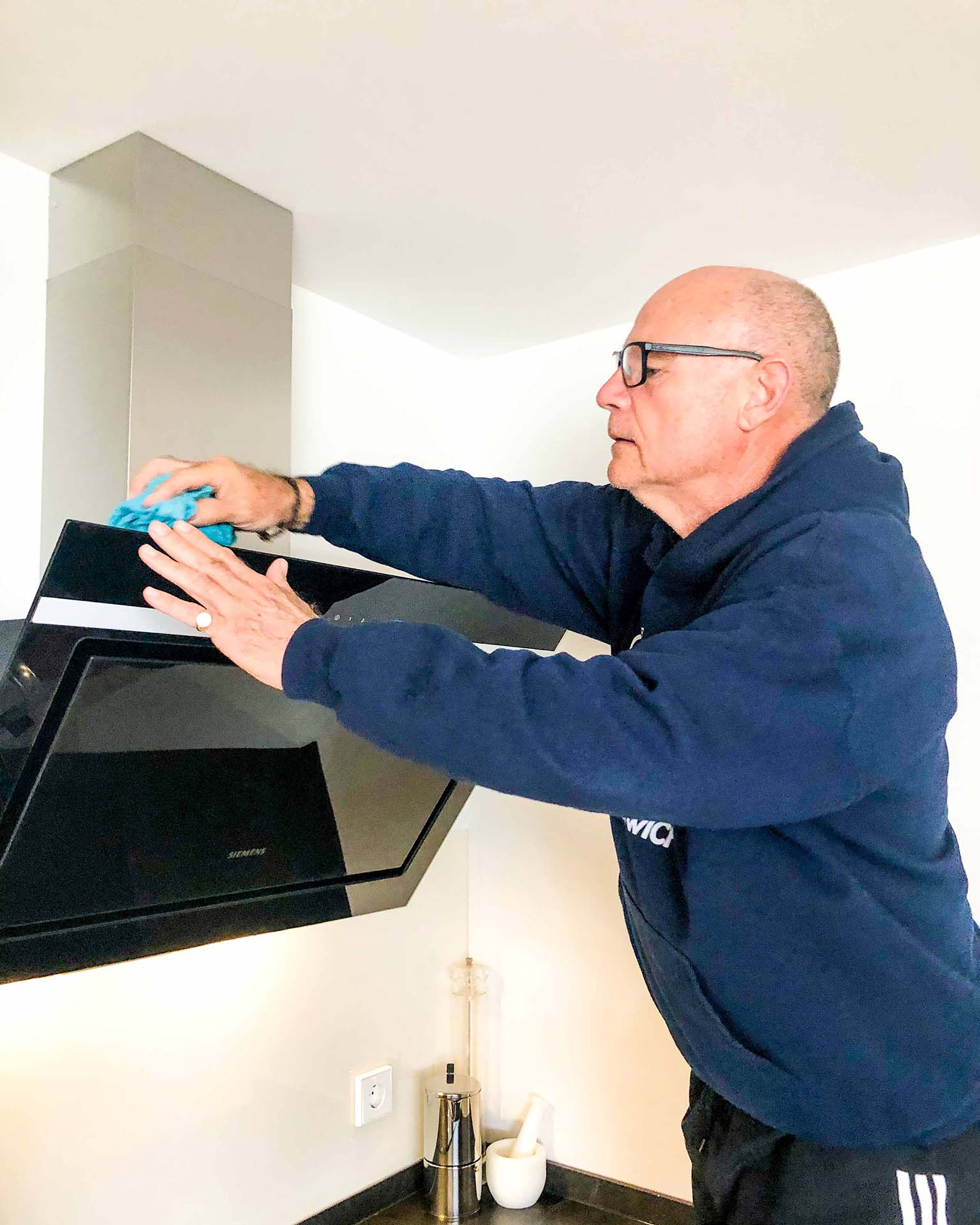 Küche (Für einige mehr sensible Reinigungsarbeiten schient der Rumba ideal zu sein): Ofen und Herd, abwischen der Theken mit antibakteriellen Lösungen, Waschbecken, Speisekammer und Schränke, Abluftventilator, hängende Küchenlampen und deren Glühbirnen.