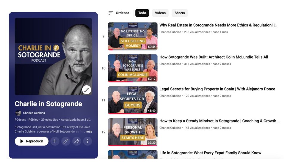 Mit seinem wöchentlichen Podcast "Charlie in Sotogrande" lädt Charles Gubbins seine Zuhörer ein, Sotogrande jenseits seiner Immobilien zu entdecken. Jede Folge enthält authentische Gespräche mit Einheimischen, Unternehmern, Anwälten und Gemeindevertretern – den Menschen, deren Energie und Geschichten den Lebensstil der Region prägen.