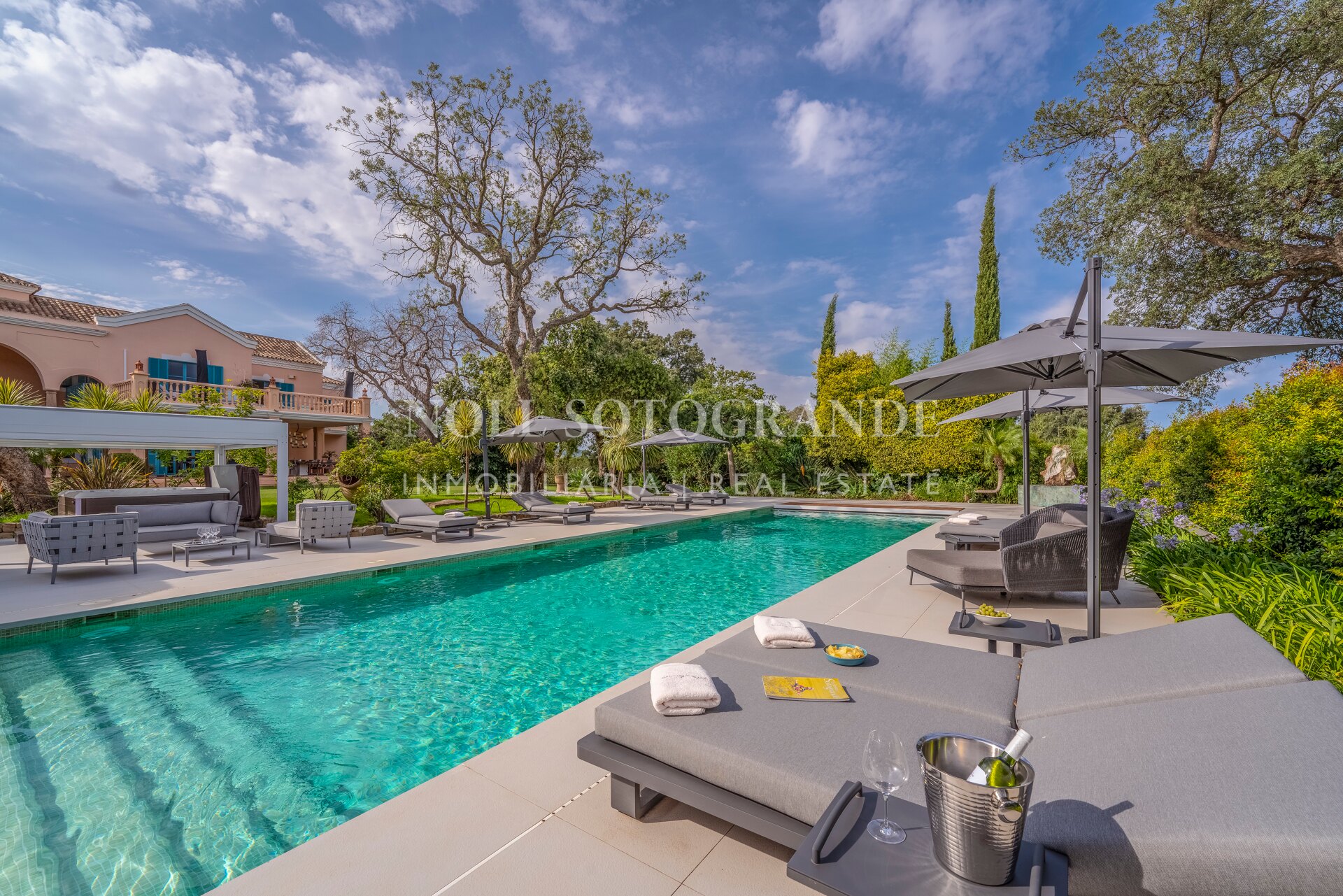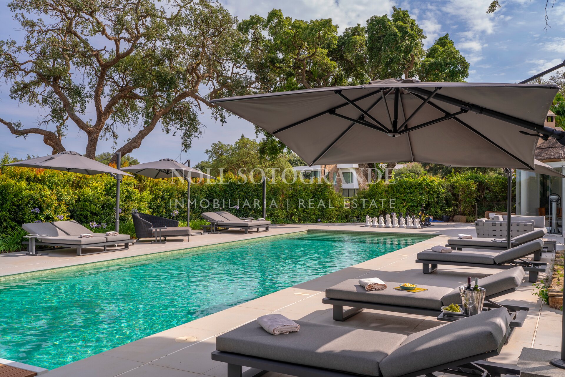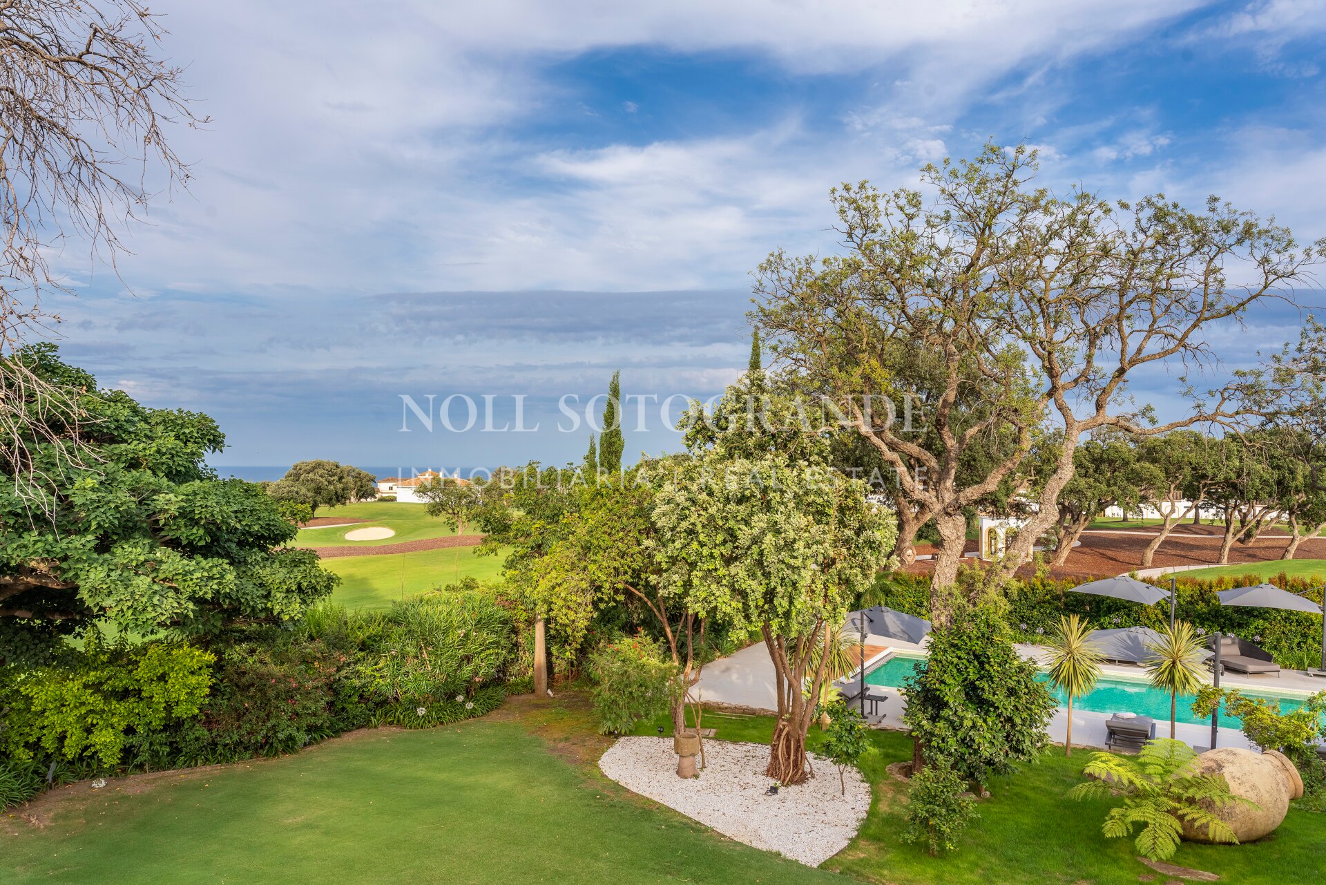Das Anwesen liegt zwischen zwei Fairways des San Roque Old Course und bietet einen herrlichen Blick auf das Meer, das San Roque Clubhaus und die Berge der Sierra Bermeja in der Ferne.
