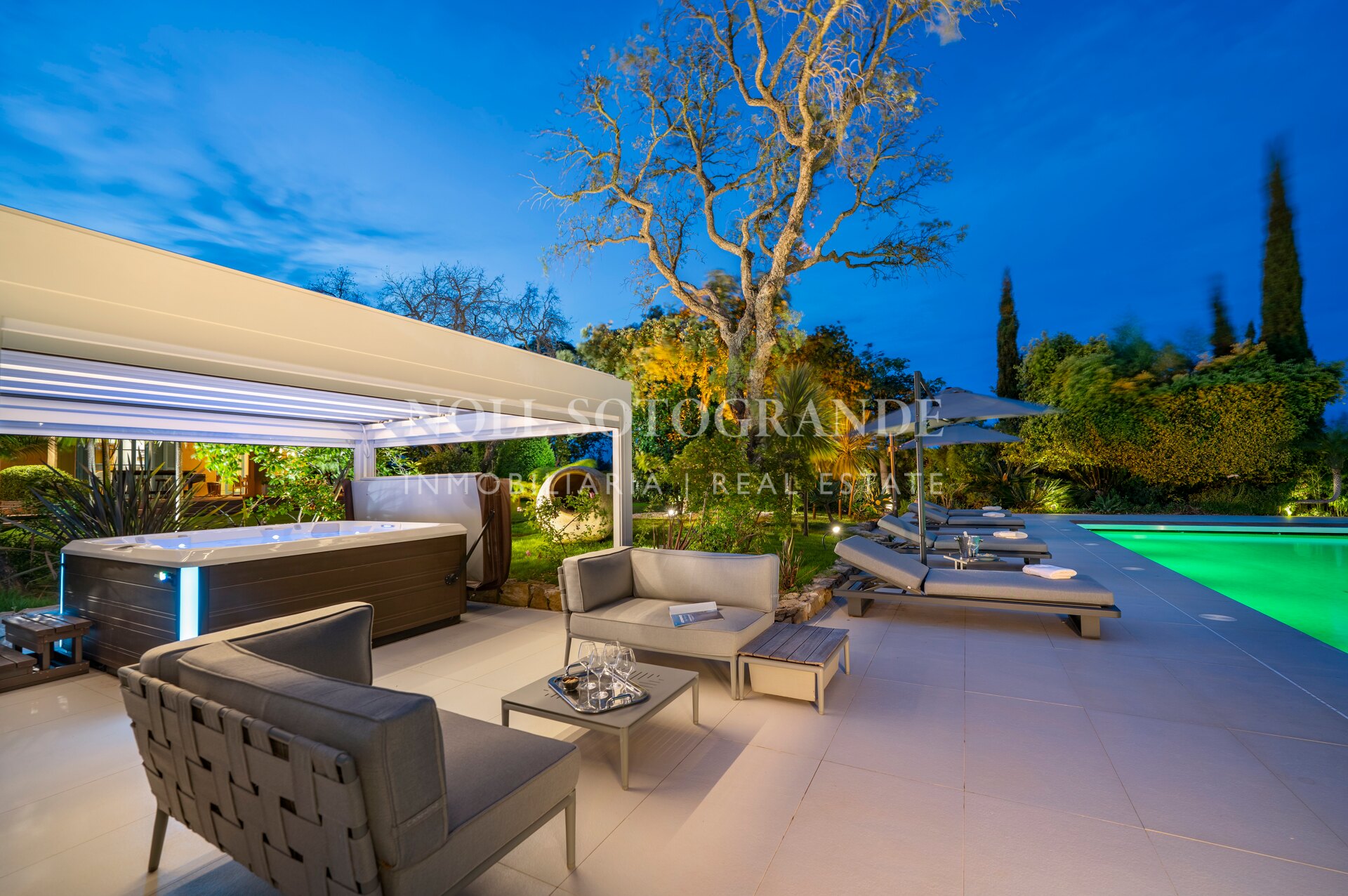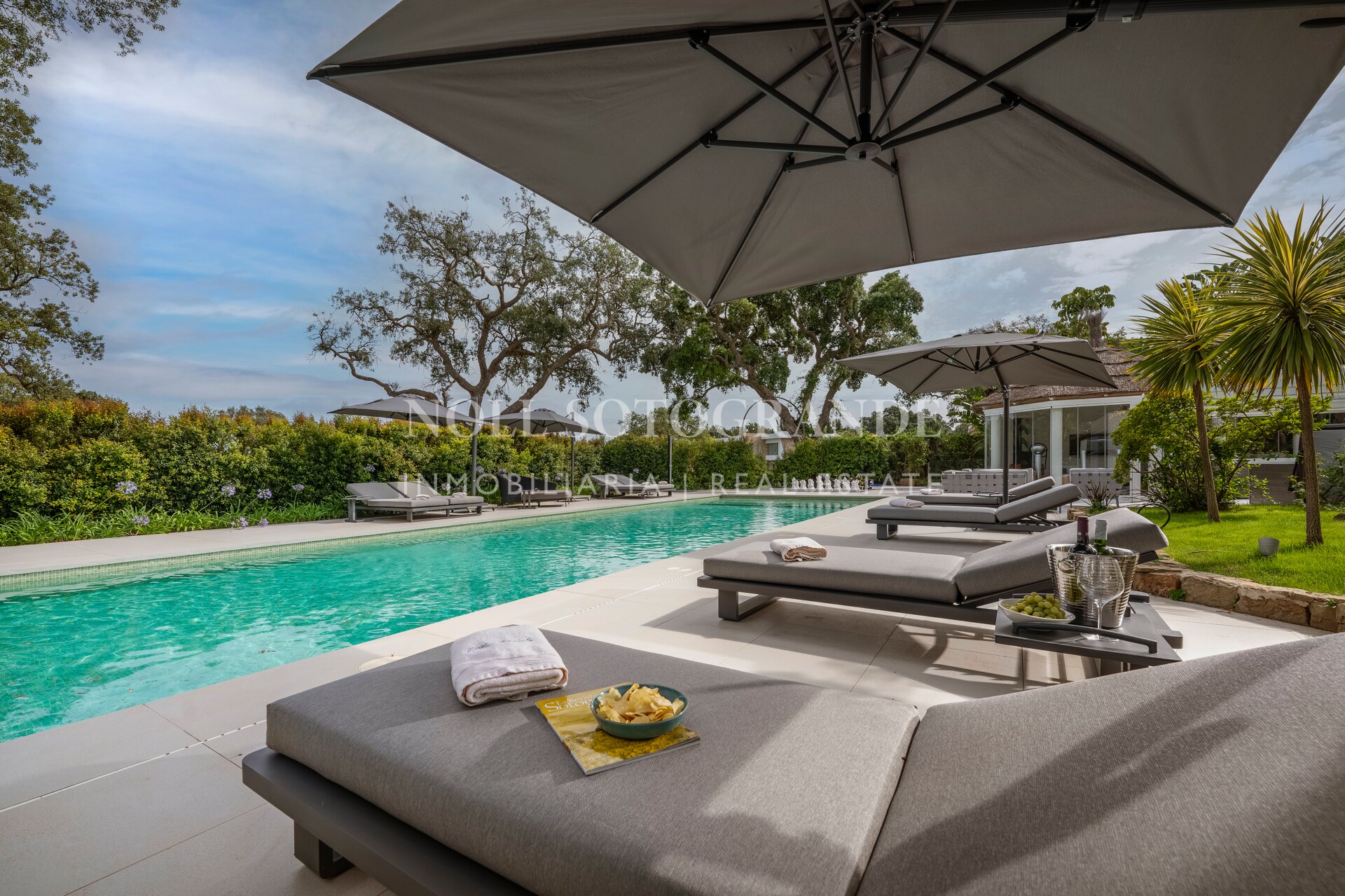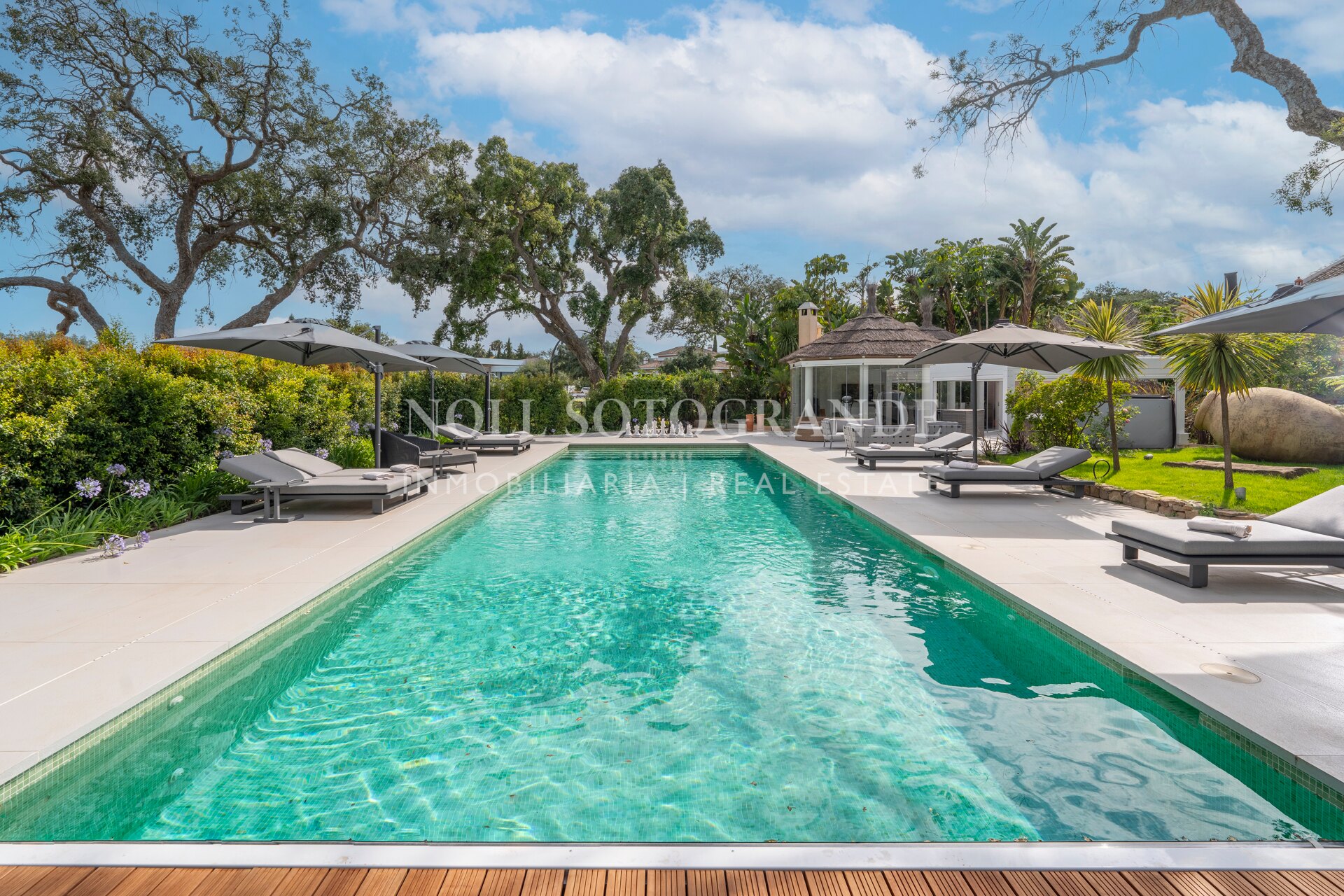 Das Anwesen liegt zwischen zwei Fairways des San Roque Old Course und bietet einen herrlichen Blick auf das Meer, das San Roque Clubhaus und die Berge der Sierra Bermeja in der Ferne.