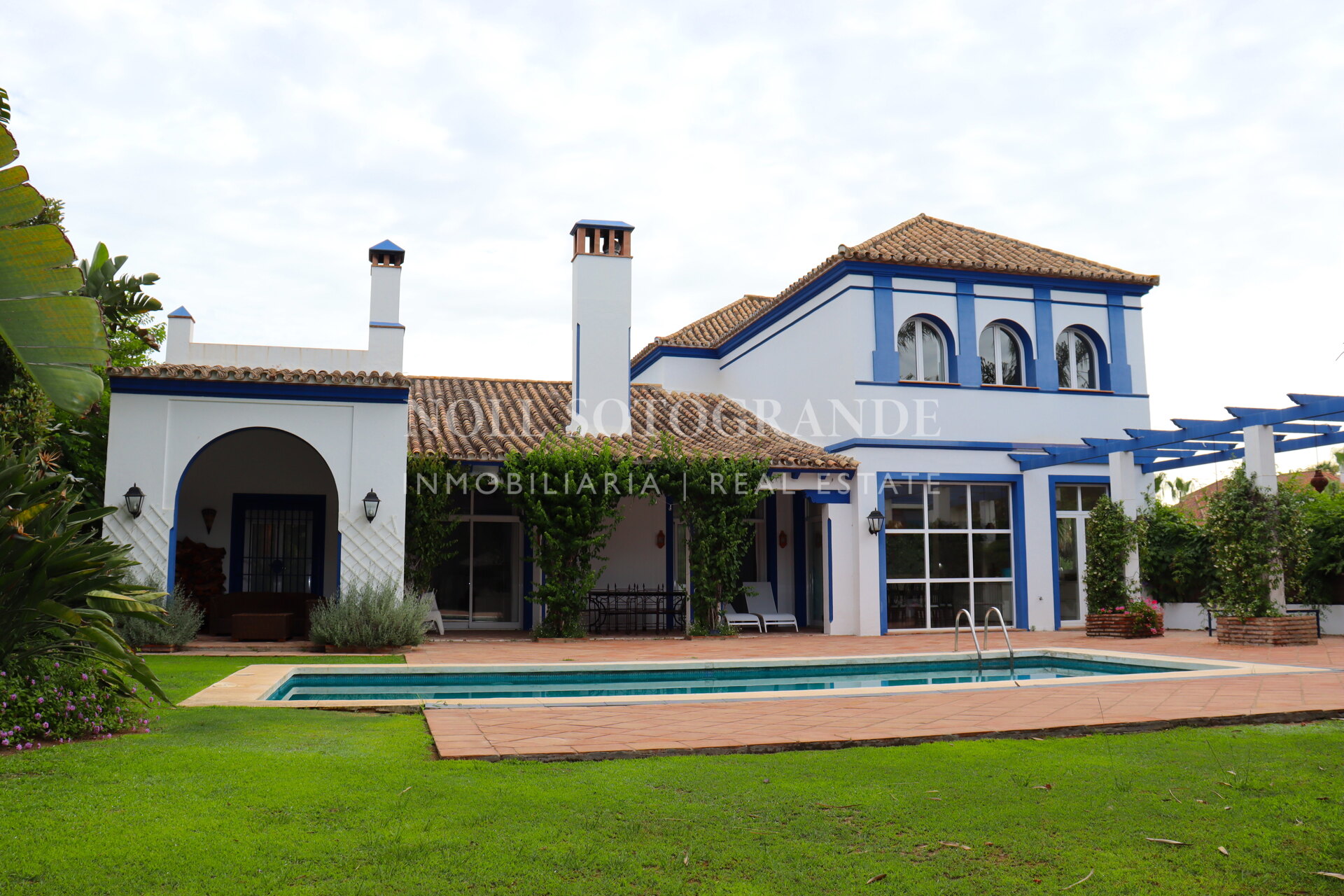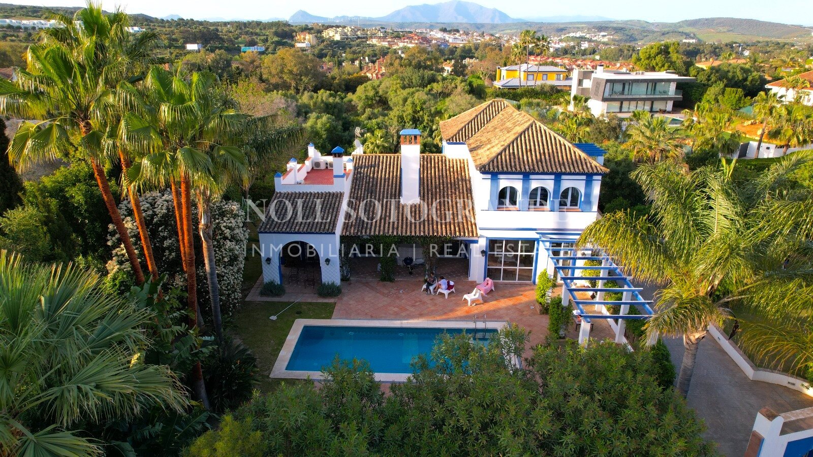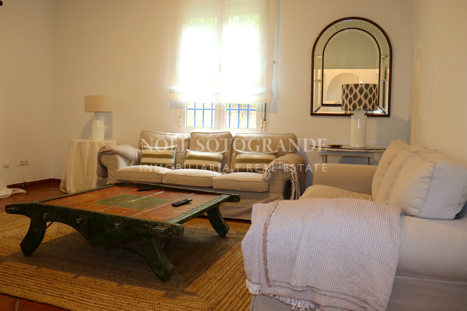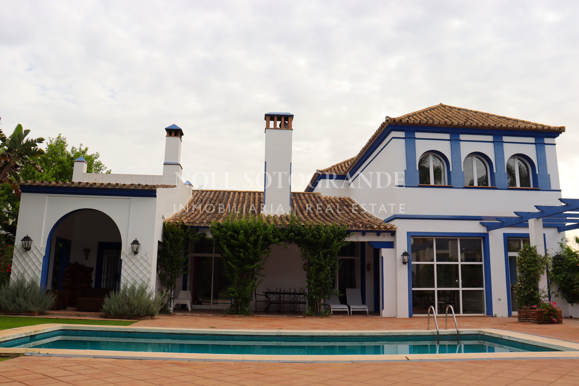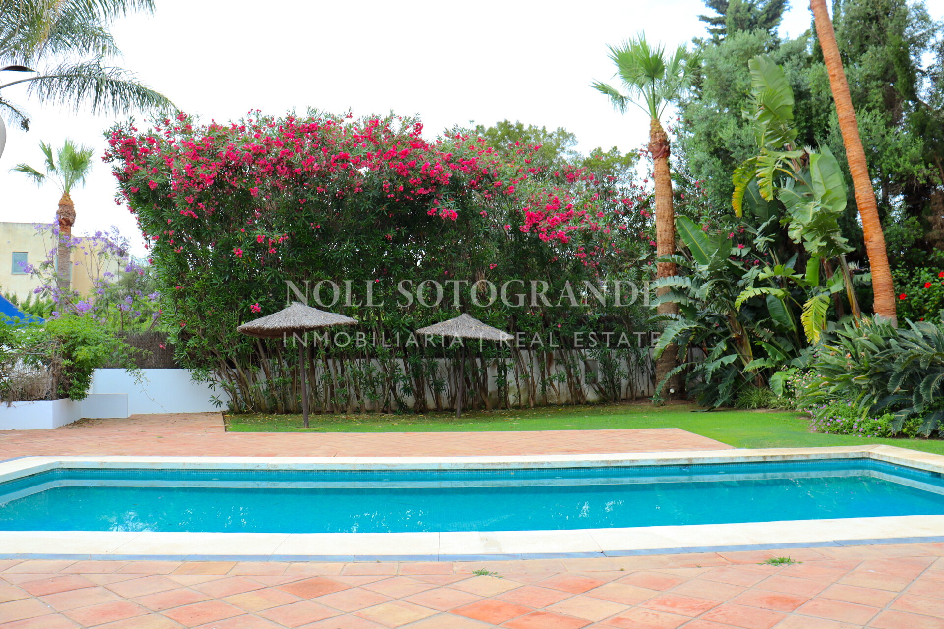Familienvilla im traditionellen Stil in einer sehr ruhigen Gegend von Sotogrande Costa, in der Nähe von Supermärkten und nur 10 Minuten von der Sotogrande International School entfernt. Diese Familienvilla besteht aus einem Halbkeller, dem ersten Stock und dem ersten Stock und hat eine bebaute Fläche von fast vierhundertfünfzig Quadratmetern auf einem ziemlich flachen Grundstück.