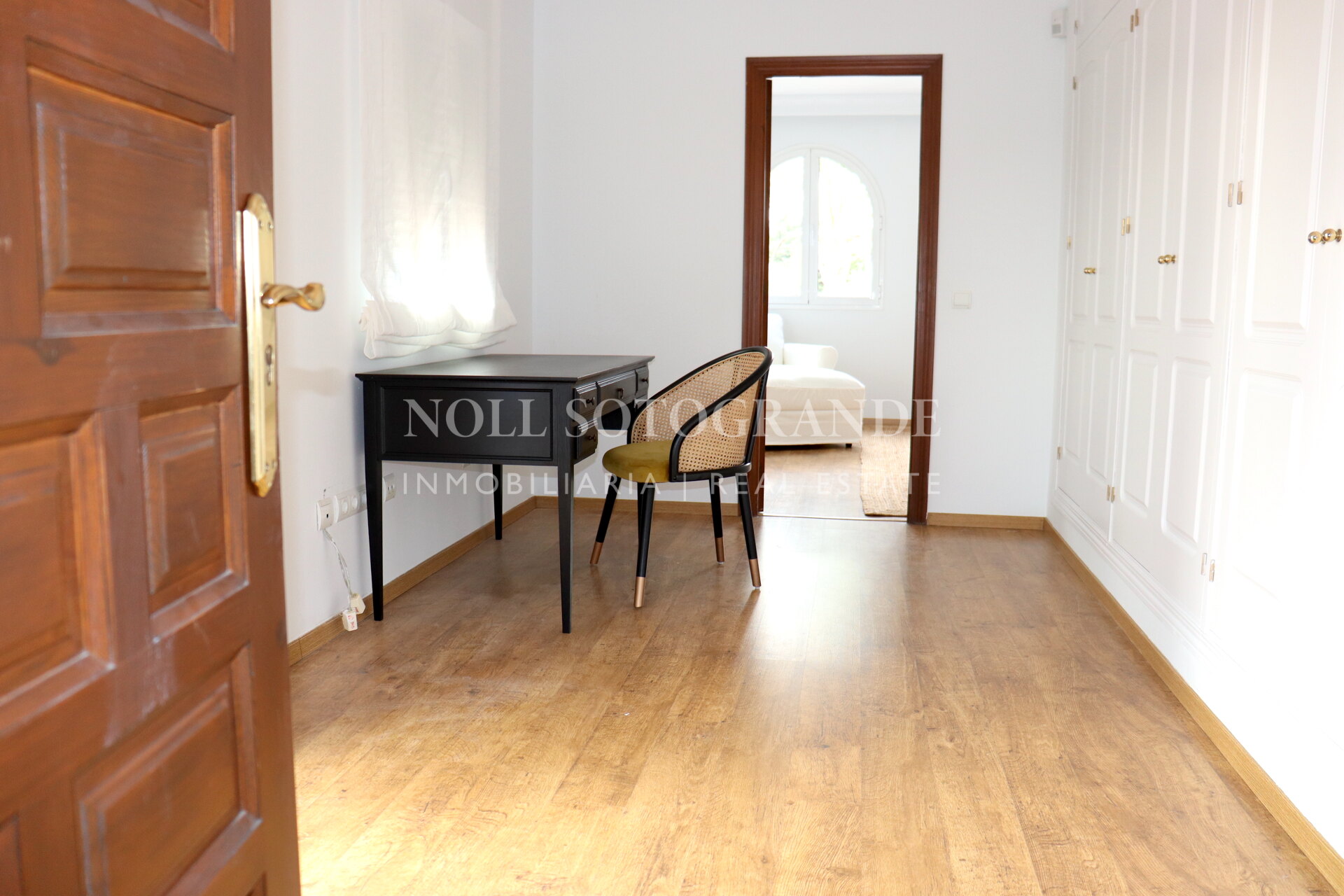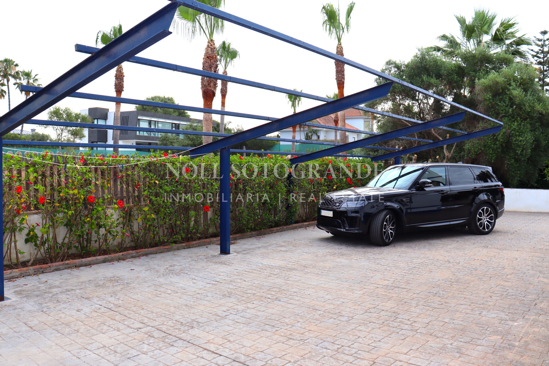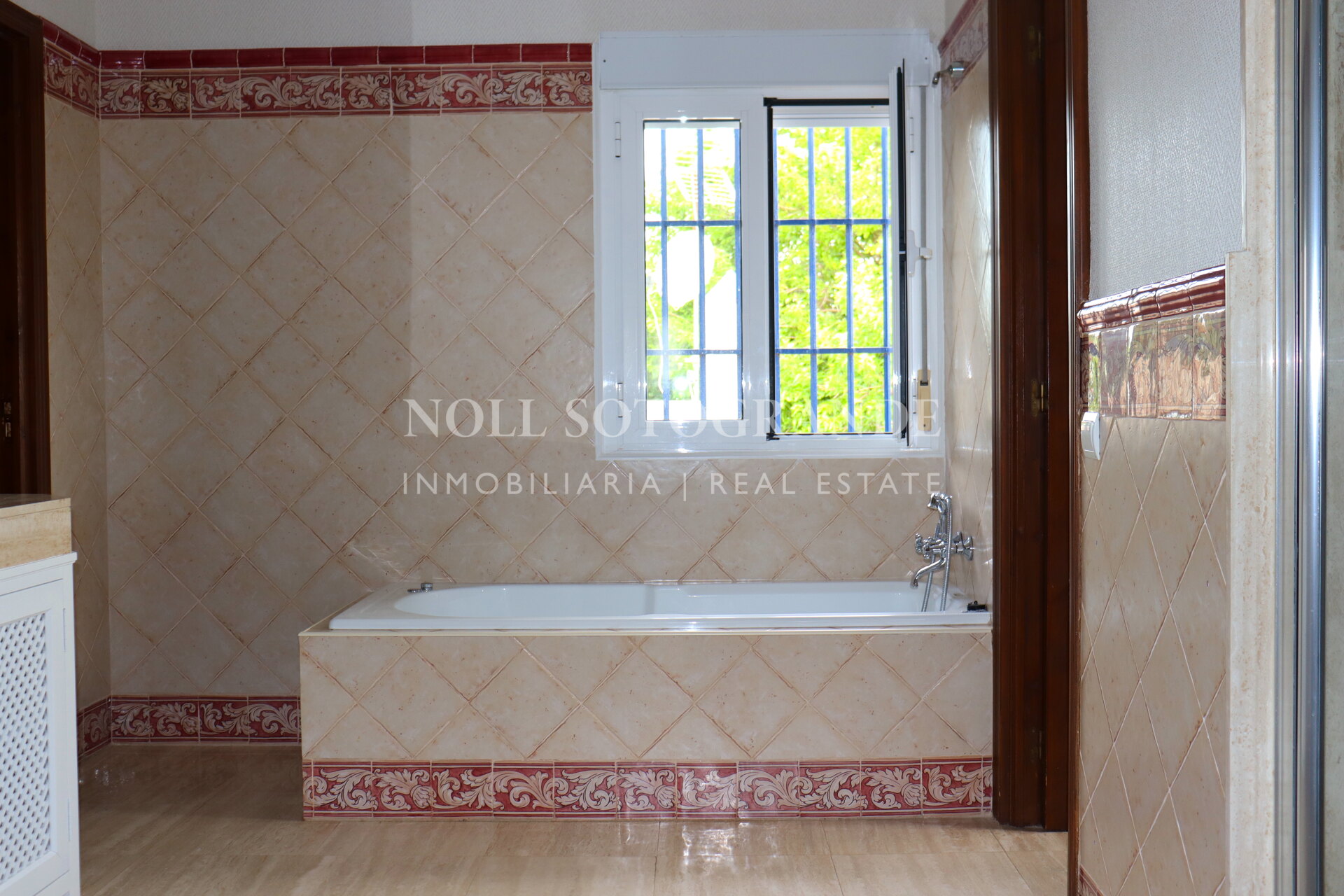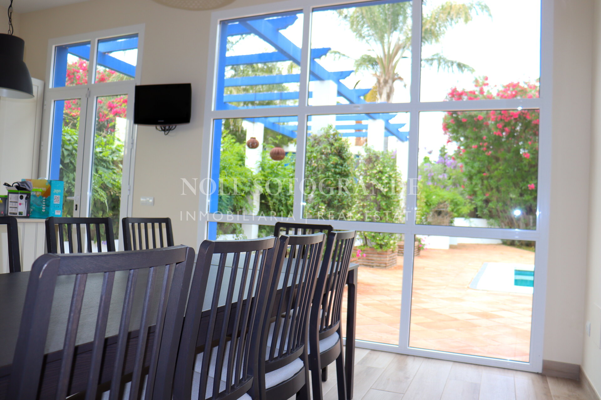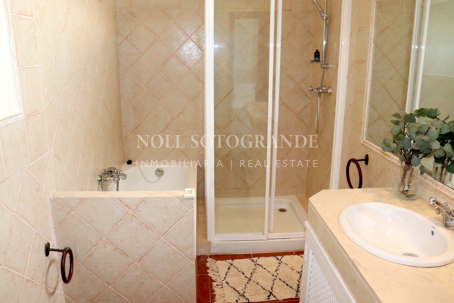Familienvilla im traditionellen Stil in einer sehr ruhigen Gegend von Sotogrande Costa, in der Nähe von Supermärkten und nur 10 Minuten von der Sotogrande International School entfernt. Diese Familienvilla besteht aus einem Halbkeller, dem ersten Stock und dem ersten Stock und hat eine bebaute Fläche von fast vierhundertfünfzig Quadratmetern auf einem ziemlich flachen Grundstück.