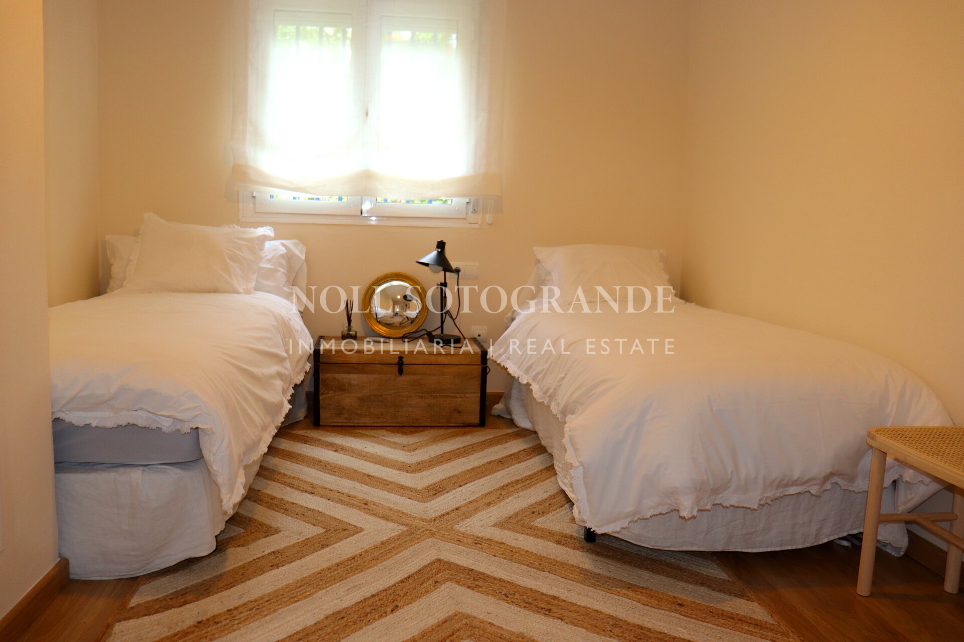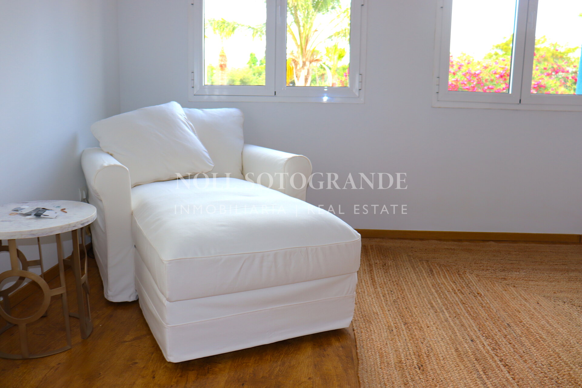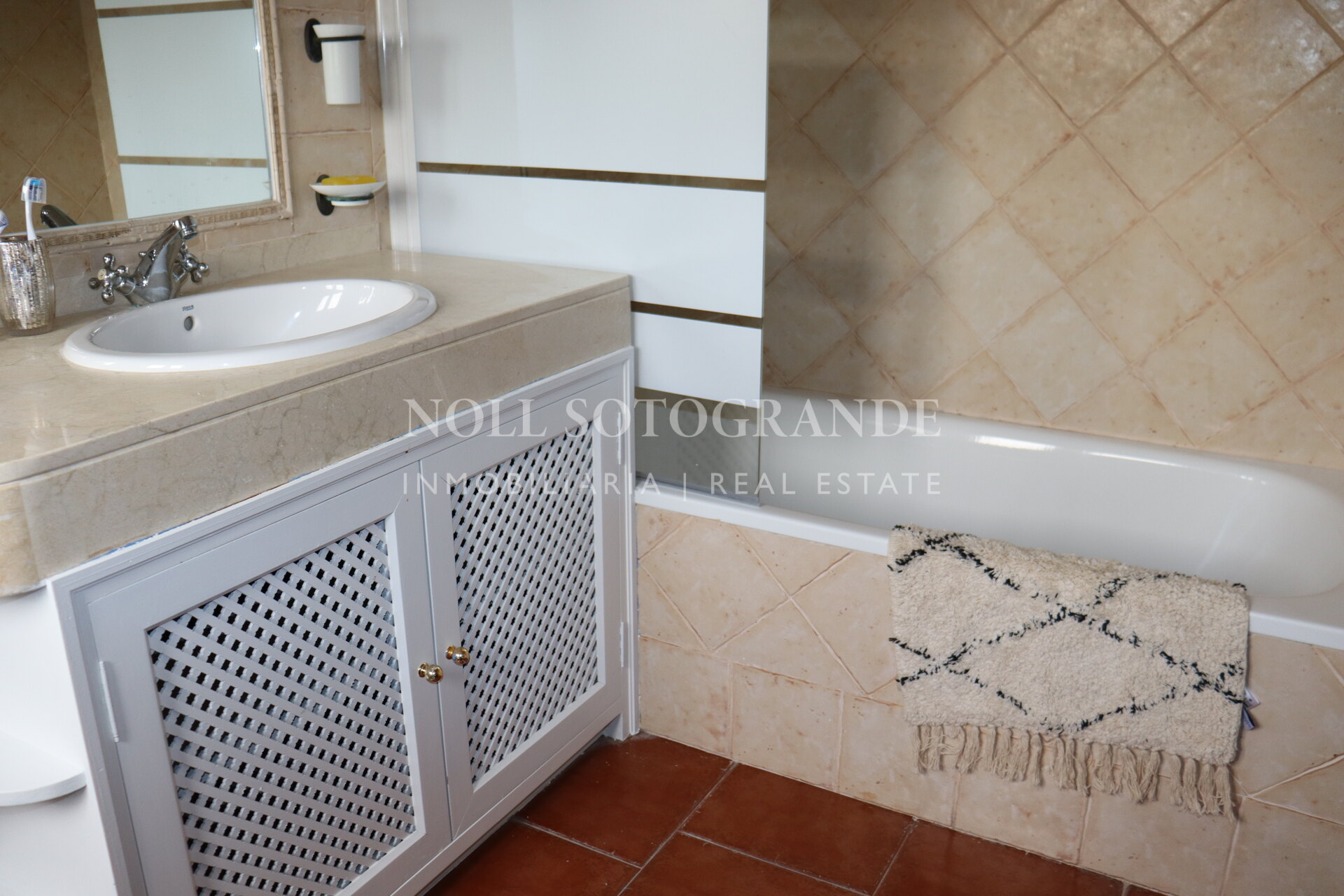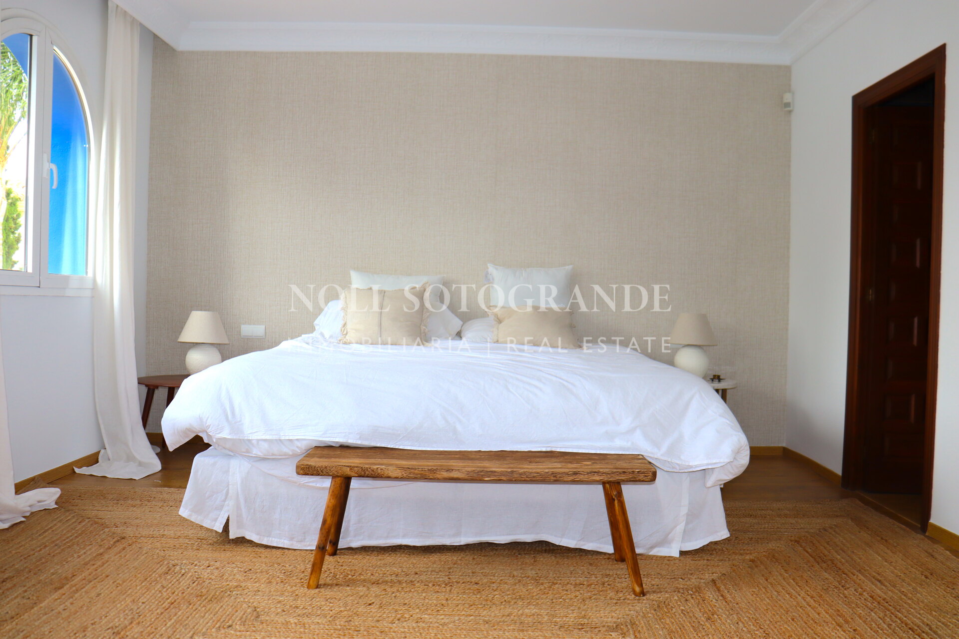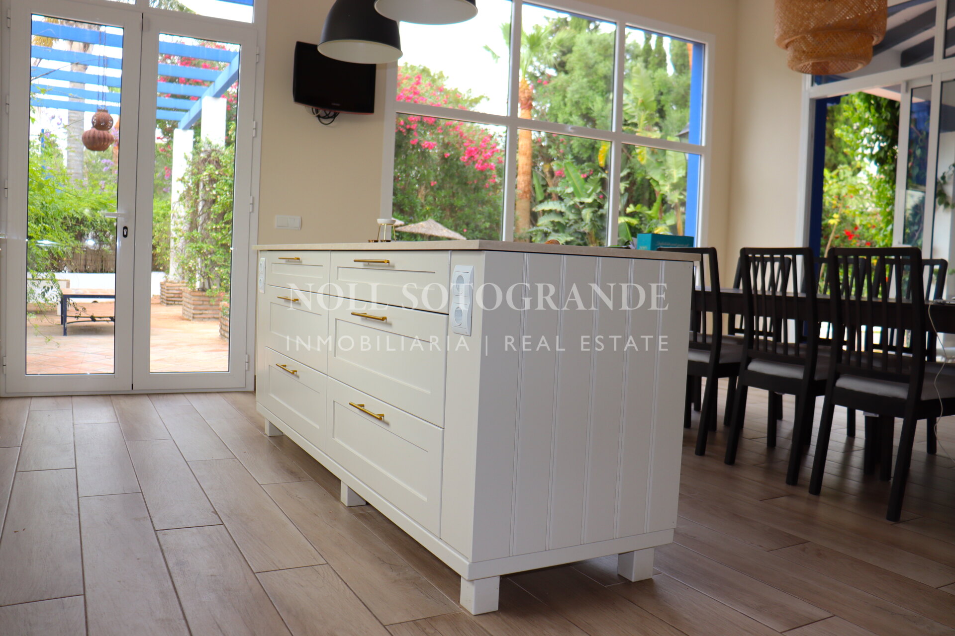 Familienvilla im traditionellen Stil in einer sehr ruhigen Gegend von Sotogrande Costa, in der Nähe von Supermärkten und nur 10 Minuten von der Sotogrande International School entfernt. Diese Familienvilla besteht aus einem Halbkeller, dem ersten Stock und dem ersten Stock und hat eine bebaute Fläche von fast vierhundertfünfzig Quadratmetern auf einem ziemlich flachen Grundstück.