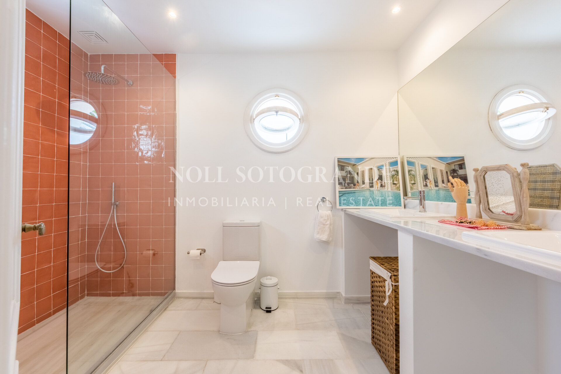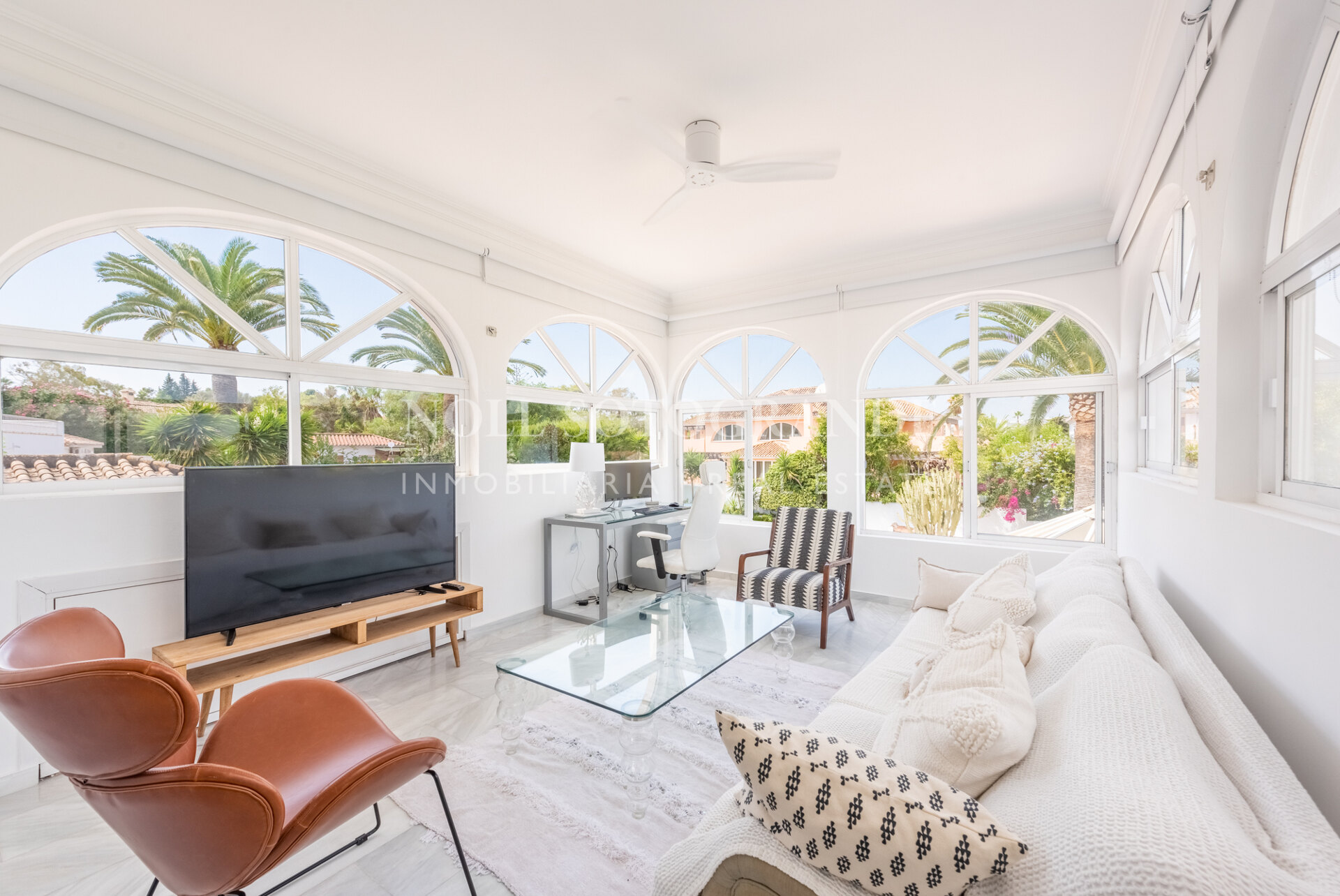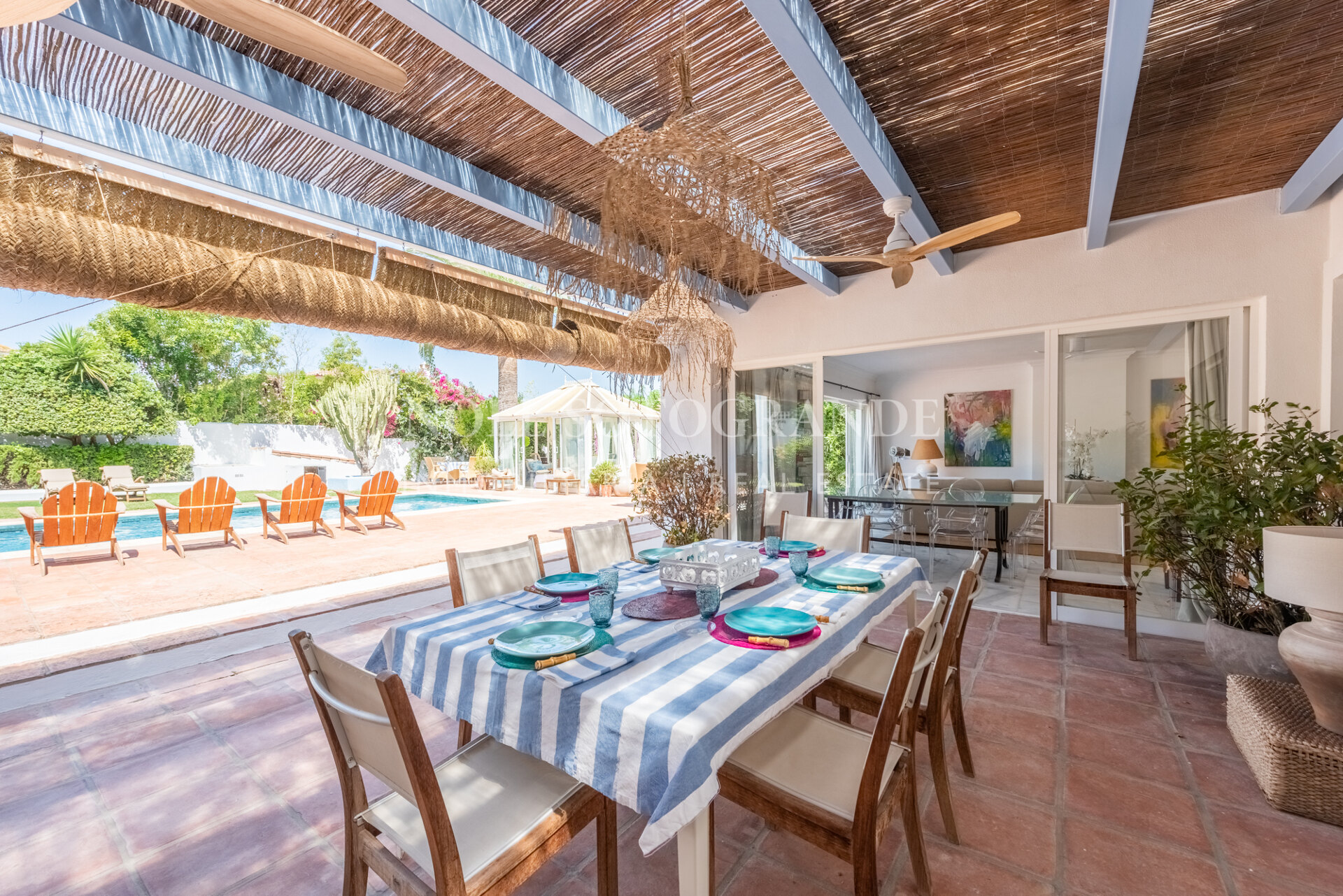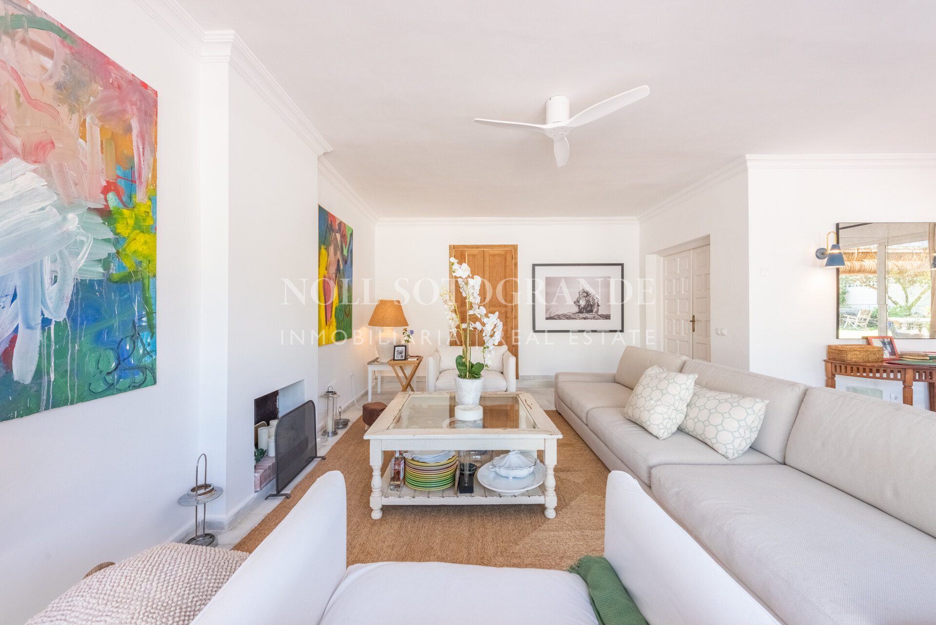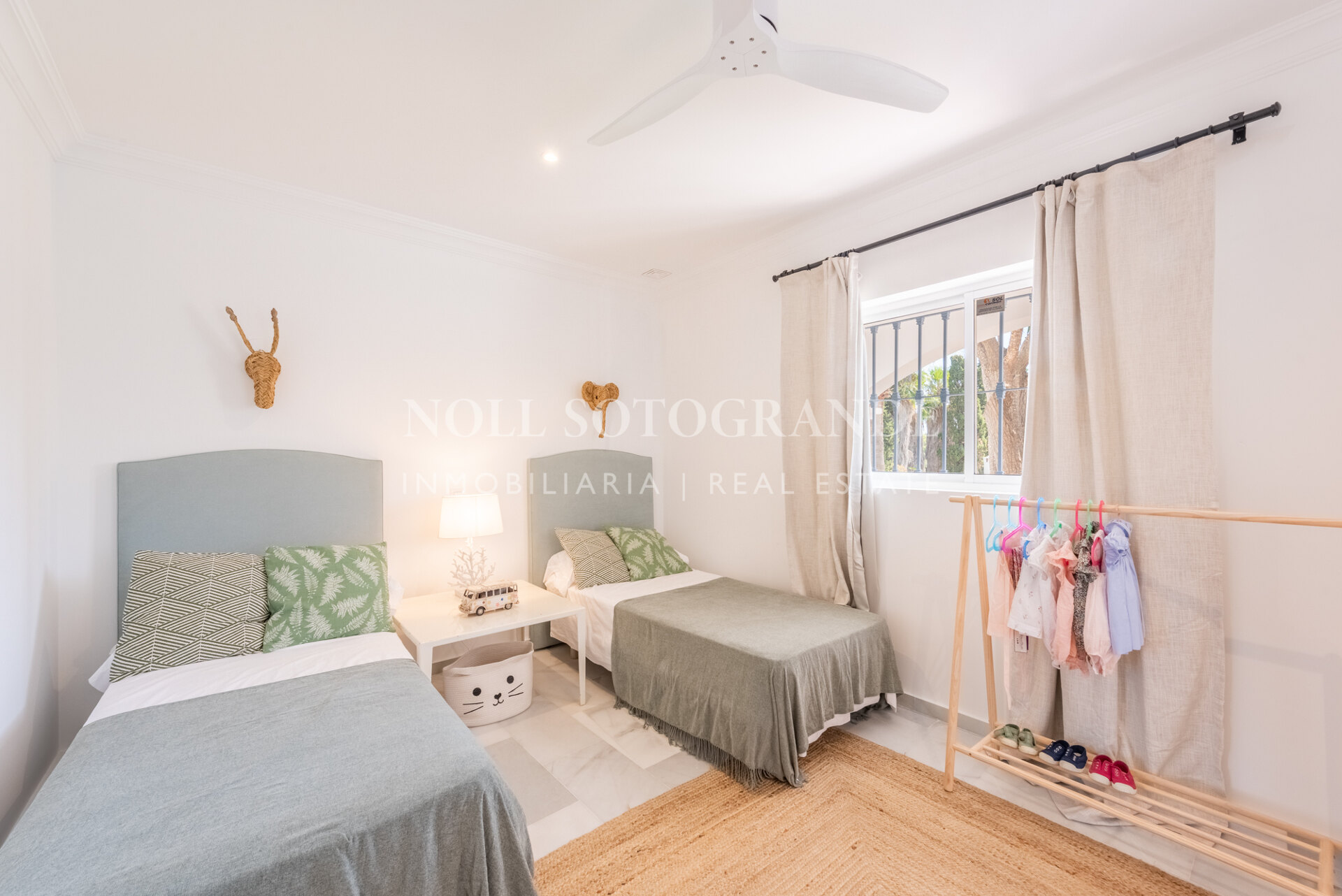 Die Villa besteht aus 6 Schlafzimmern und 4 Bädern, einschließlich des Hauptschlafzimmers im Obergeschoss, das auch über einen hellen Wohnbereich, ein Ankleidezimmer und ein Badezimmer sowie einem Arbeitszimmer verfügt. Im Erdgeschoss befinden sich drei Schlafzimmer, eine separate Küche, ein Wohnzimmer und ein Esszimmer, und über einen separaten Eingang gelangt man zu zwei weiteren unabhängigen Schlafzimmern, die jeweils über ein eigenes Bad verfügen. Darüber hinaus verfügt das Haus über einen zentralen andalusischen Innenhof und einen Schwimmbadbereich, der vom üppigen Garten umgeben ist.