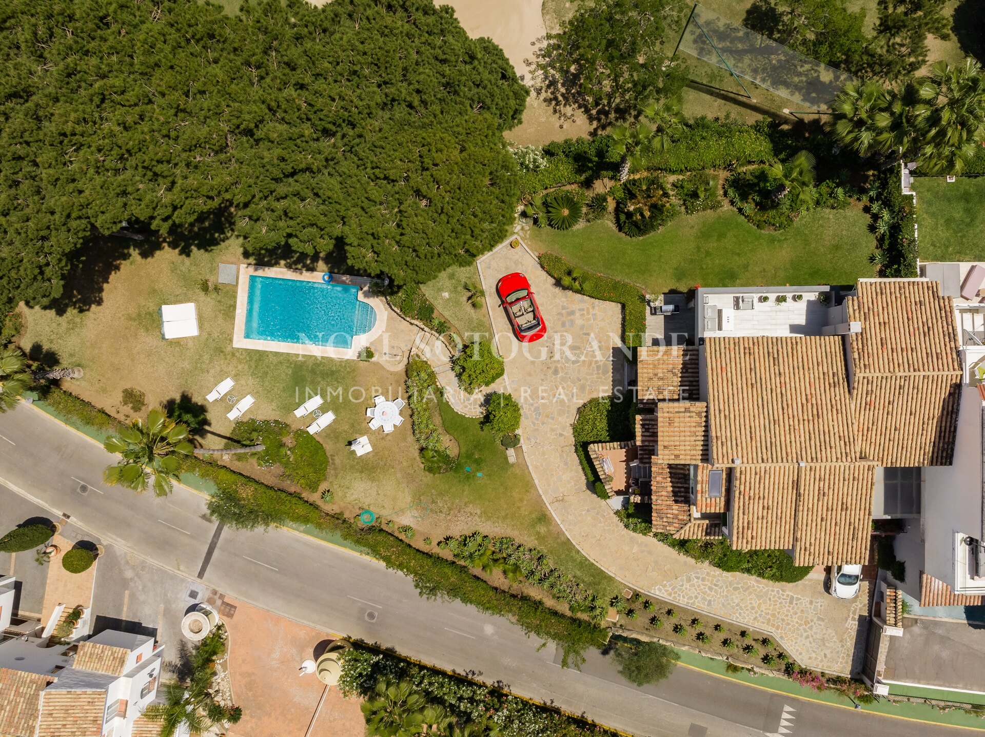 Villa zu verkaufen in La Quinta Golf, Benahavis mit 5 Schlafzimmer, 4 Badezimmer, 3 Badezimmer mit eigenem Bad, 1 Toilette, eingebaut 2002 und hat Pool (privat), garaje (privat) und Garten (privat). Abmessungen: 671m² gebaut und 1230m² Grundstück.