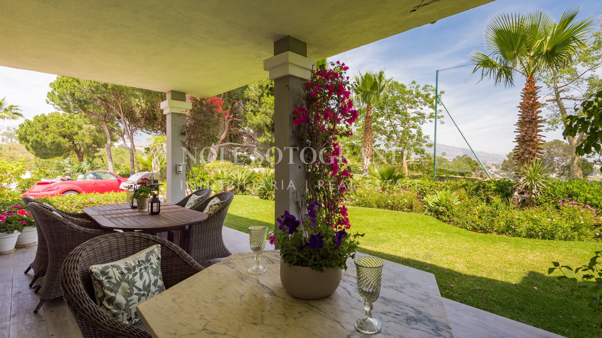 Esta propiedad, Ausrichtung Westen, verfügt über die folgenden Einrichtungen: erste linie golfplatz, küche ausgestattet, annehmlichkeiten nahebei, maturejardens, separate wohnung, meerblick, küche komplett ausgestattet, bergsicht, kinderspielplatz in der nähe, offener kamin, golfsicht, kellergeschoss, separates esszimmer, waschküche, Überdachte terrasse, sicherheitseingang, garageincludedinprice, guter zustand, blick auf garten, blick aufs schwimmbad, gästetoilette und panoramablick.
