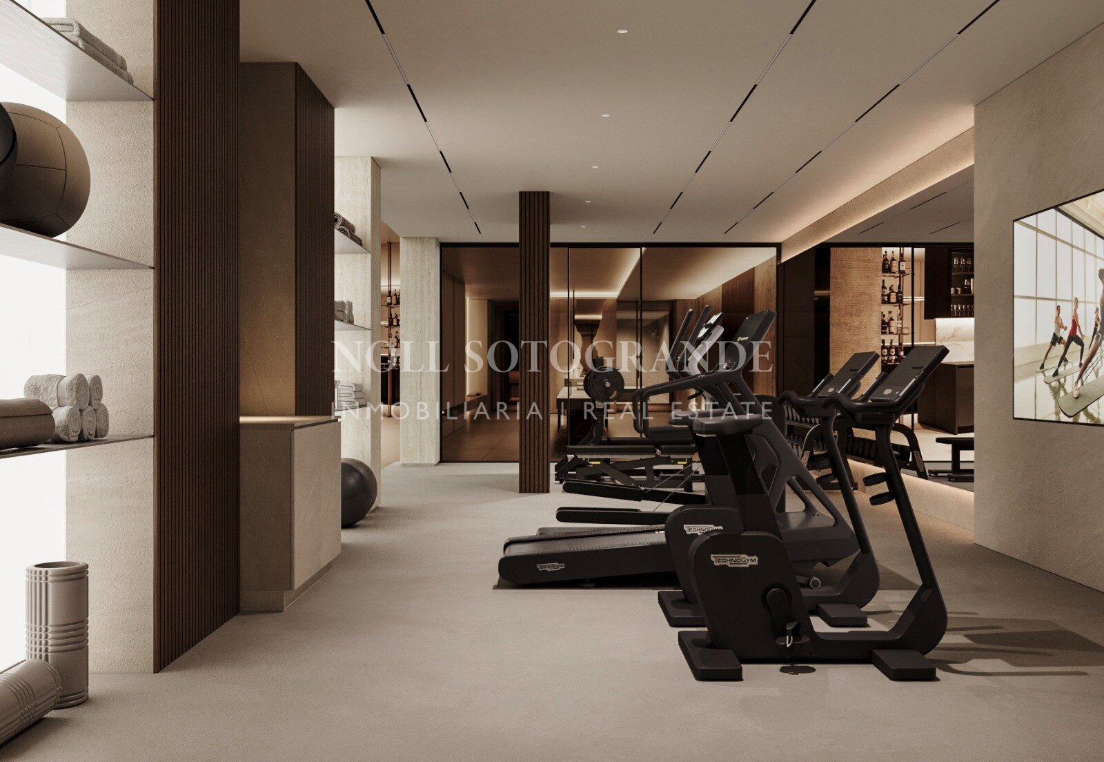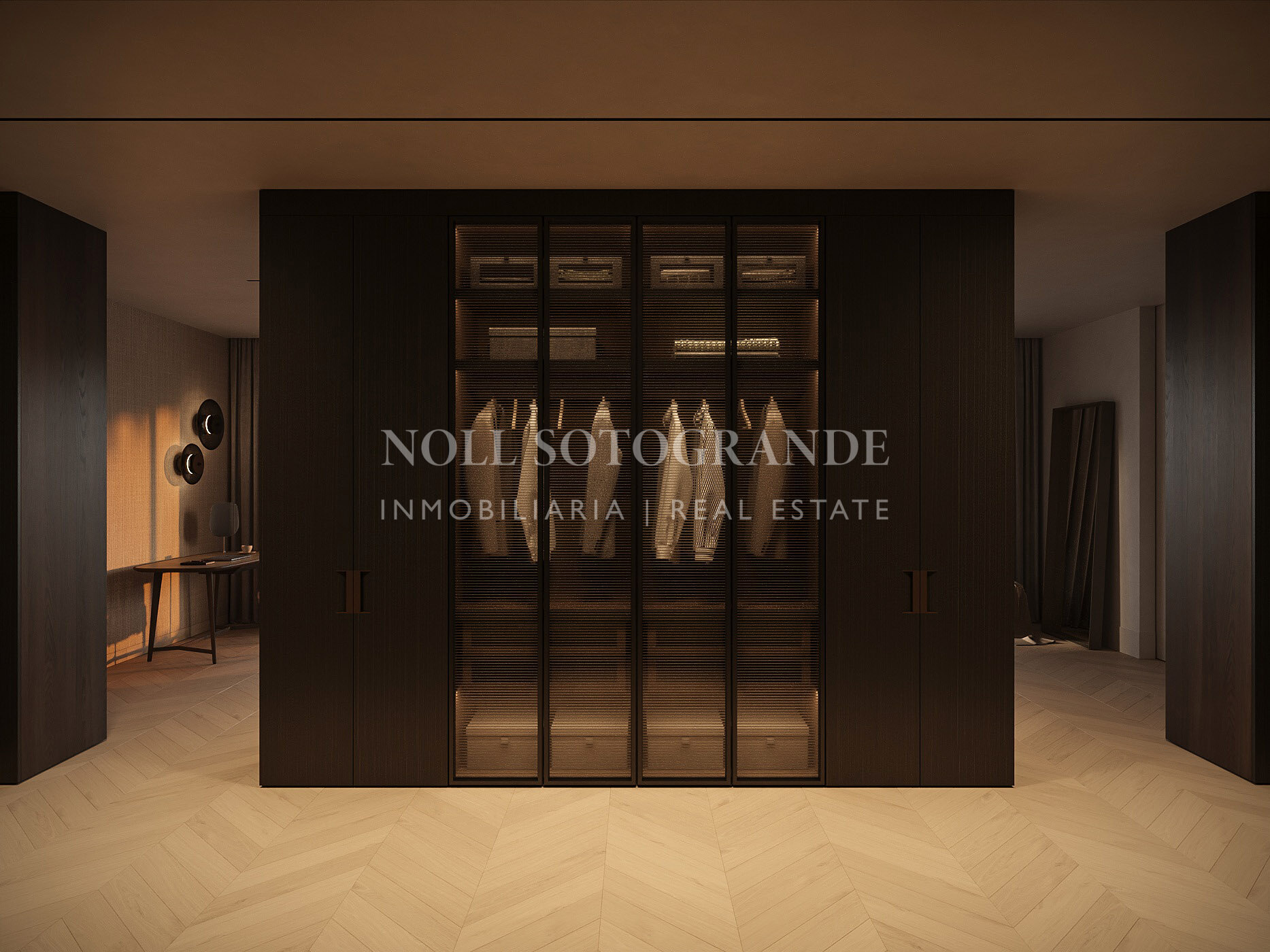 Esta propiedad, Ausrichtung Südwesten, verfügt über die folgenden Einrichtungen: klimaanlage, meerblick, einbauschränke, neubau, geschlossene wohnanlage, garageincludedinprice, begehbarer kleiderschrank, fußbodenheizung im gesamten objekt, blick aufs schwimmbad, nähe golfplatz, gästetoilette und panoramablick.