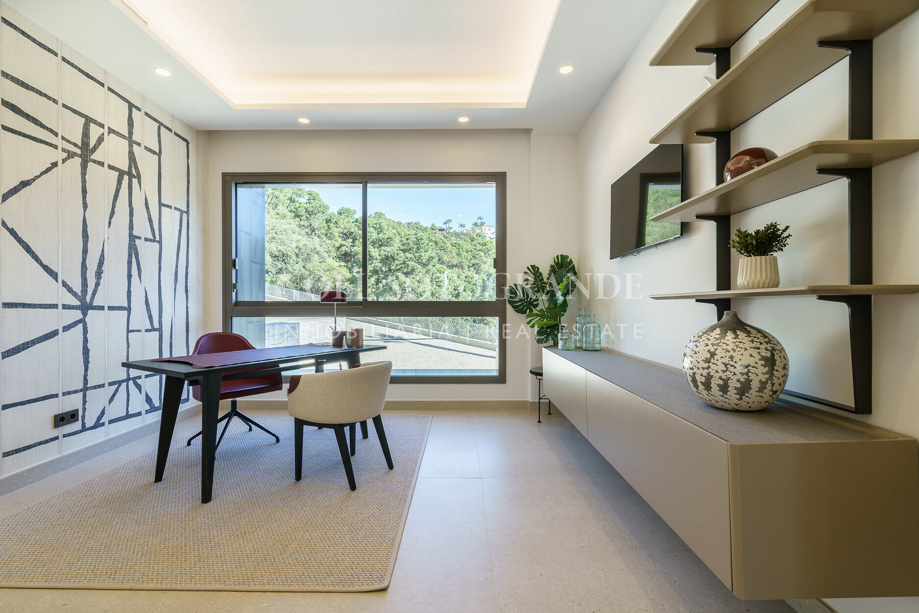 Esta propiedad, Ausrichtung Süd, verfügt über die folgenden Einrichtungen: hanglage, klimaanlage, zentralheizung, meerblick, bergsicht, beheiztes svhwimmbad, sauna, fußbodenheizung im gesamten objekt, nähe golfplatz, abstellraum, fitness, 24std service, neubau, geschlossene wohnanlage, 24std sicherheitsdienst und blick aufs schwimmbad.
