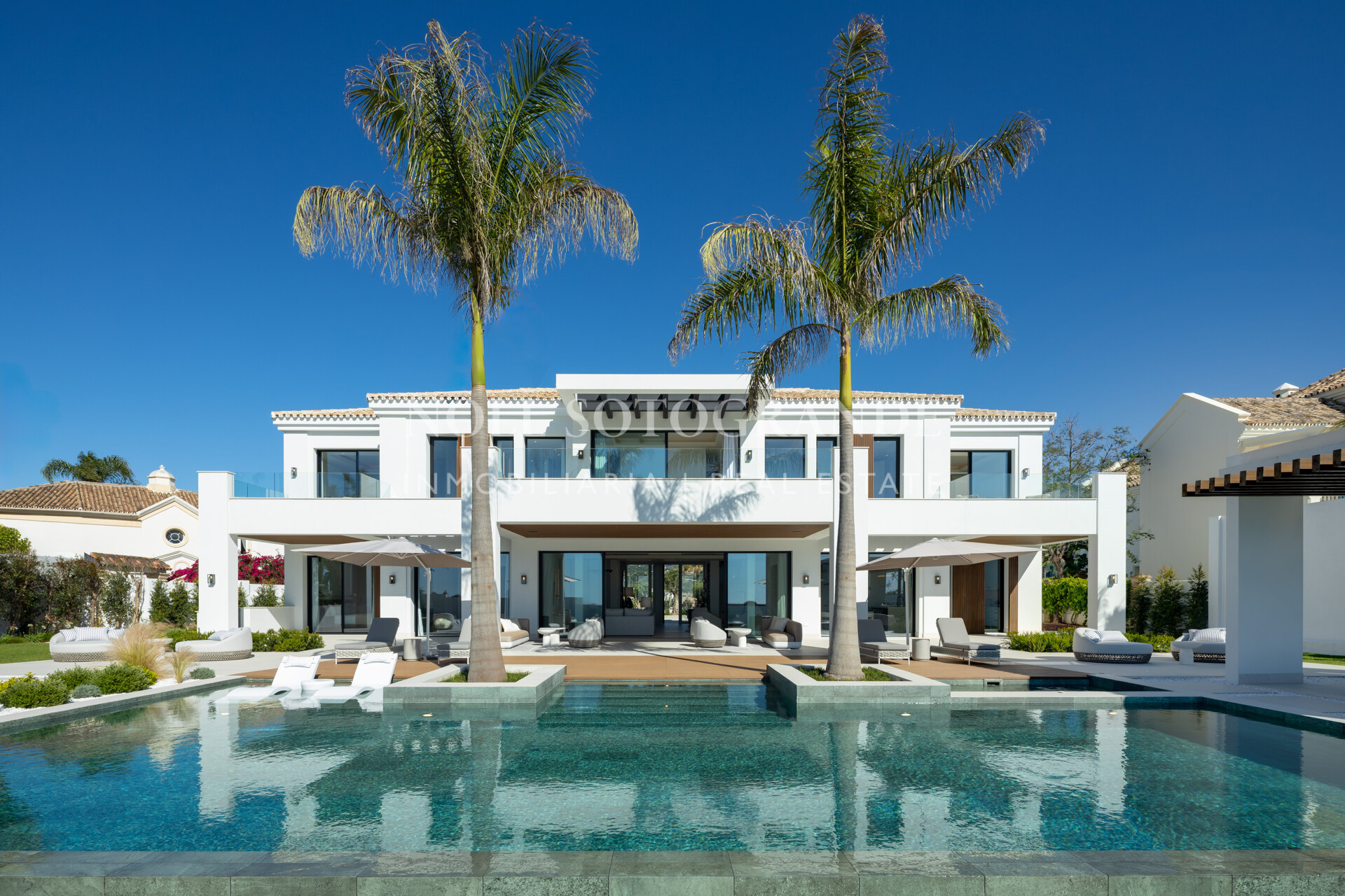 Villa zu verkaufen in Monte Halcones, Benahavis mit 7 Schlafzimmer, 7 Badezimmer, 7 Badezimmer mit eigenem Bad, 2 Toiletten, eingebaut 2024 und hat Pool (privat), garaje (privat) und Garten (privat). Abmessungen: 803m² gebaut, 2042m² Grundstück, 605m² Innenraum und 196m² Terrasse.