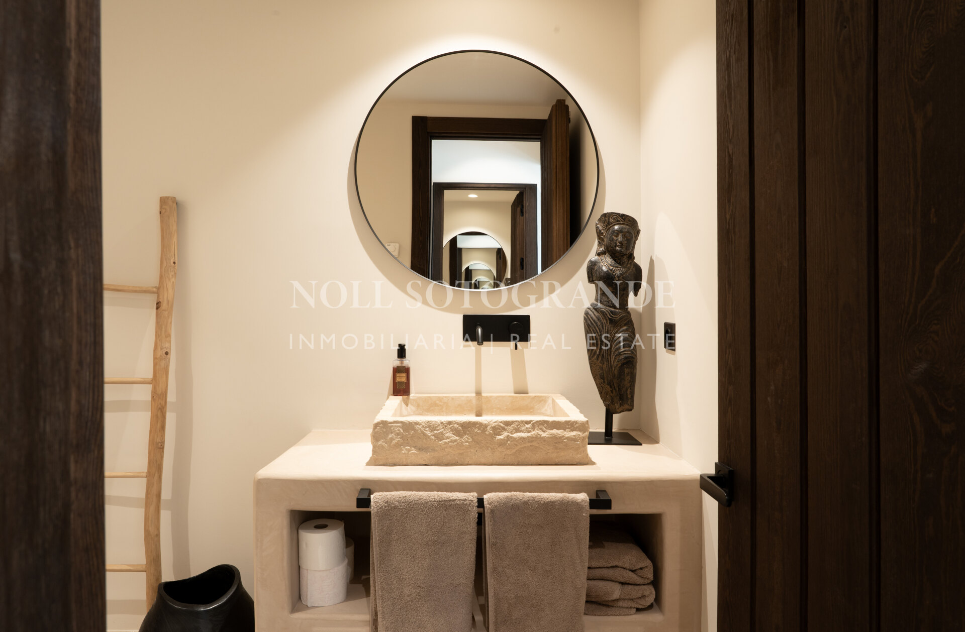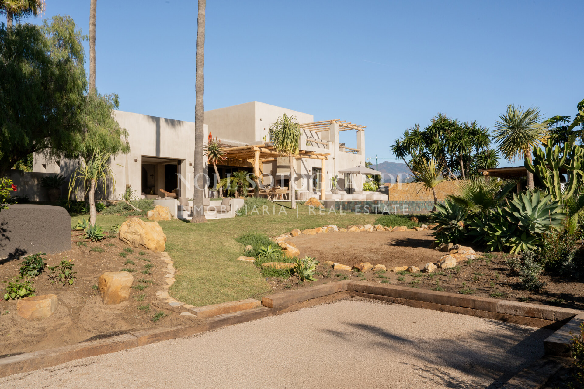 Villa zu verkaufen in Selwo, Estepona Ost mit 5 Schlafzimmer, 5 Badezimmer und hat Pool (privat), garaje (abstellplatz) und Garten (privat). Abmessungen: 385m² gebaut, 1852m² Grundstück und 138m² Terrasse.