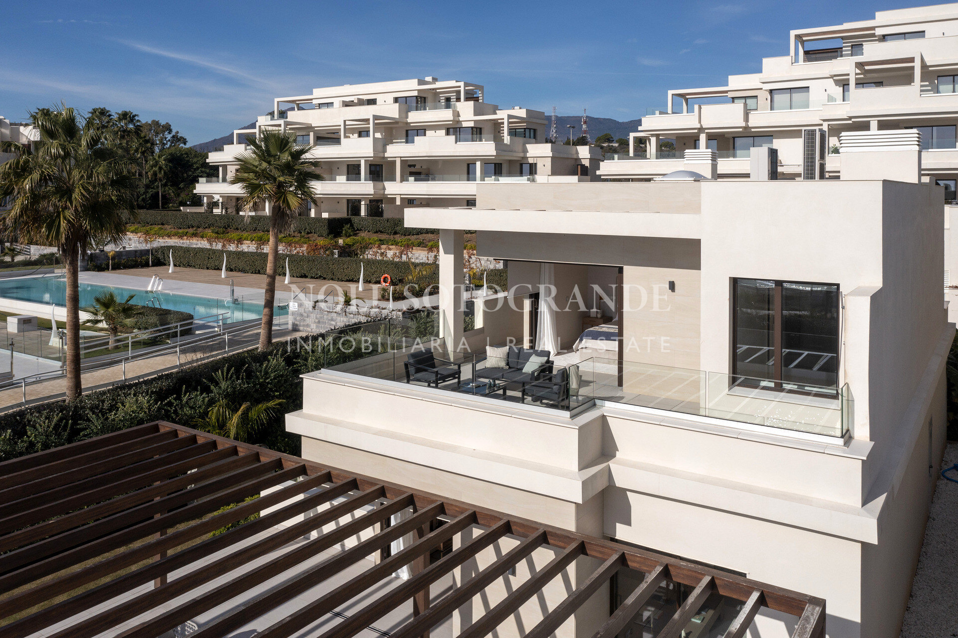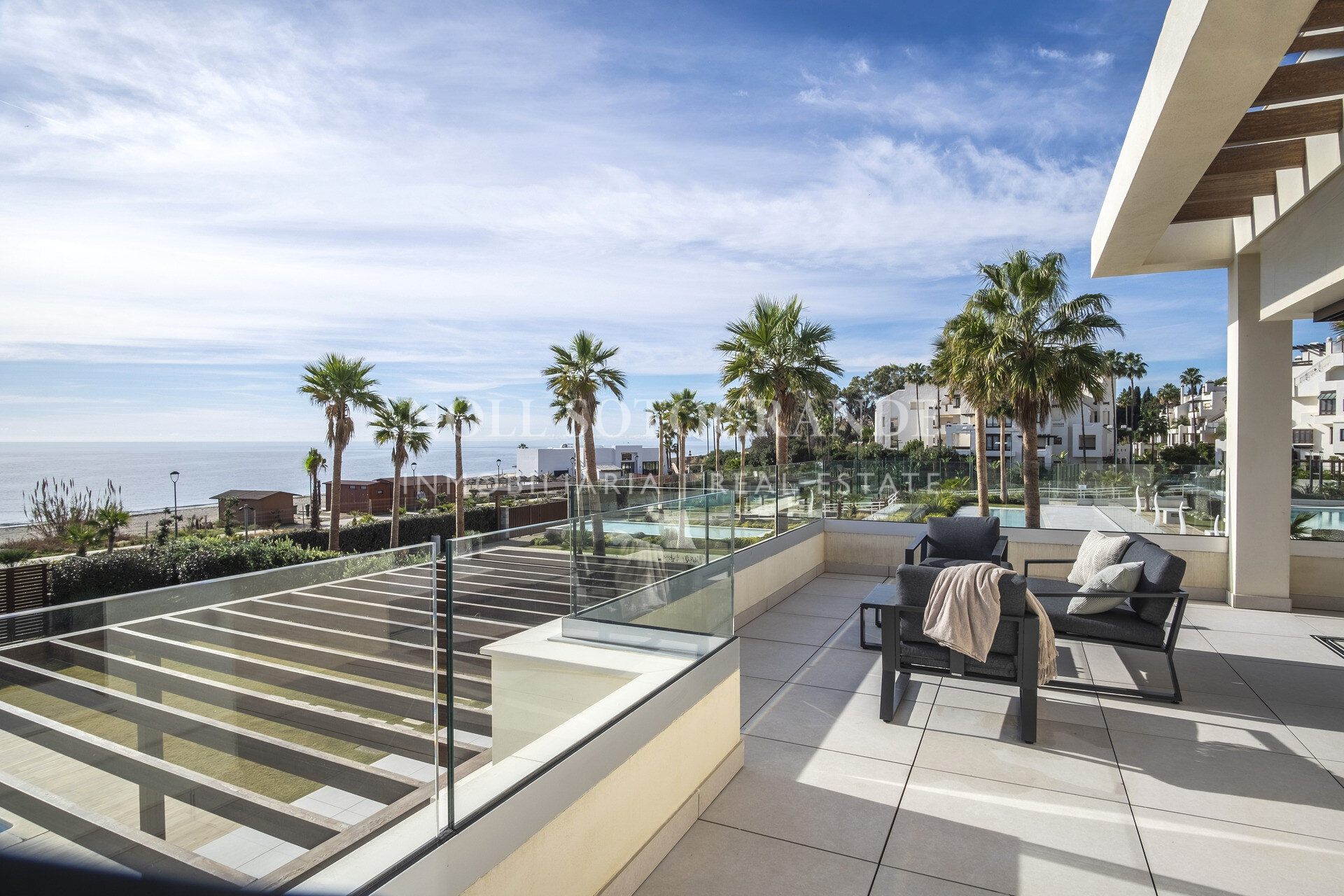 Esta propiedad, Ausrichtung Südwesten, verfügt über die folgenden Einrichtungen: private terrasse, erste strandlinie, küche ausgestattet, strandseite, annehmlichkeiten nahebei, nahe öffentlicher verkehrsmittel, klimaanlage, directseaaccess, komplett eingerichtet, meerblick, beheiztes svhwimmbad, fußbodenheizung im gesamten objekt, offene terrasse, spielzimmer, fitness, elektrische rollläden, einbauschränke, aerothermik, geschlossene wohnanlage, hervorragender zustand, aufzug, grill, begehbarer kleiderschrank und gästetoilette.