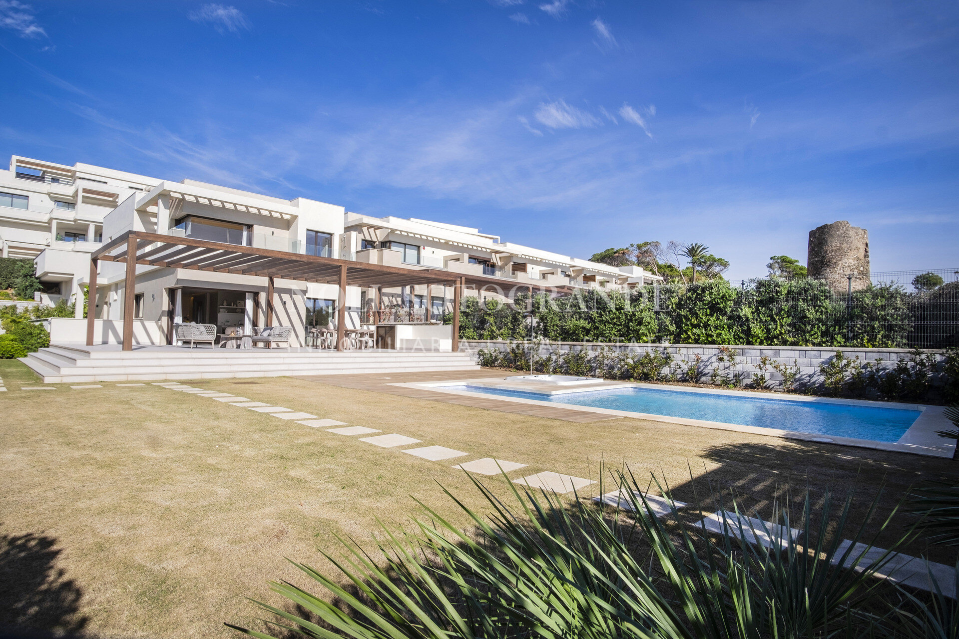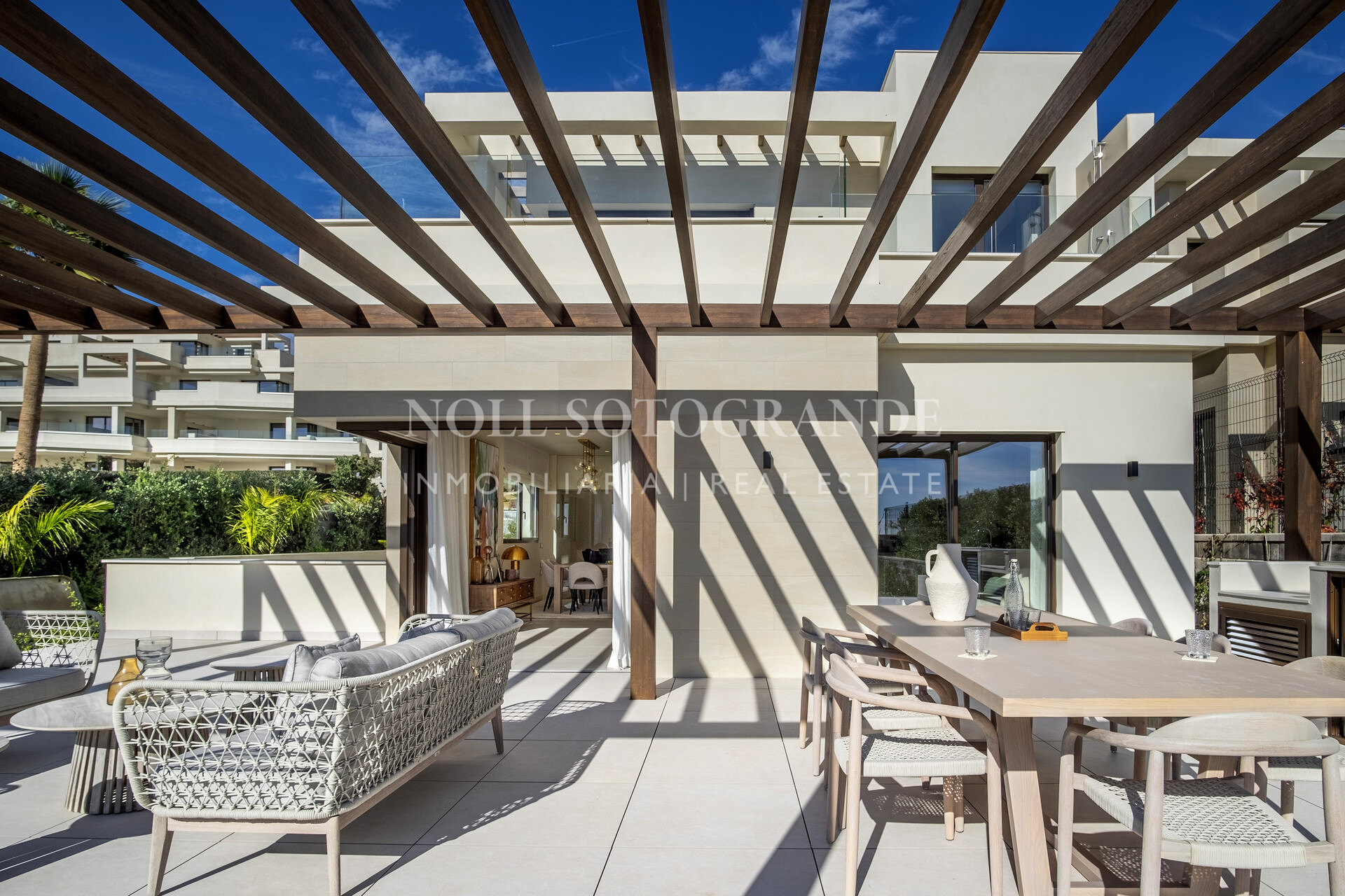 Villa zu verkaufen in Velaya, Estepona Ost mit 4 Schlafzimmer, 4 Badezimmer, 1 Toilette und hat Pool (privat), garaje (abstellplatz) und Garten (privat). Abmessungen: 517m² gebaut, 884m² Grundstück, 371m² Innenraum und 146m² Terrasse.