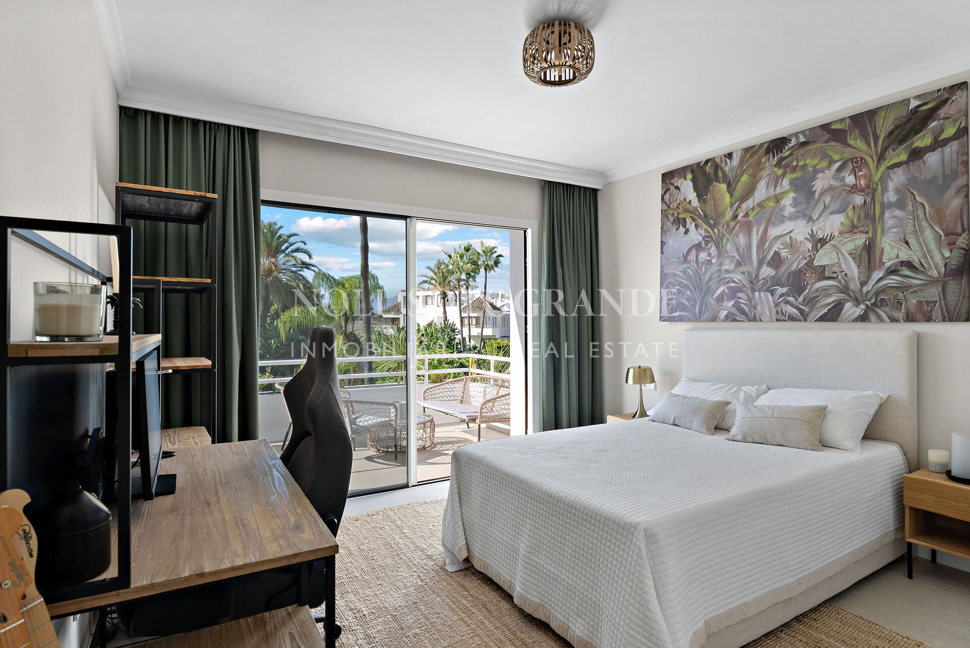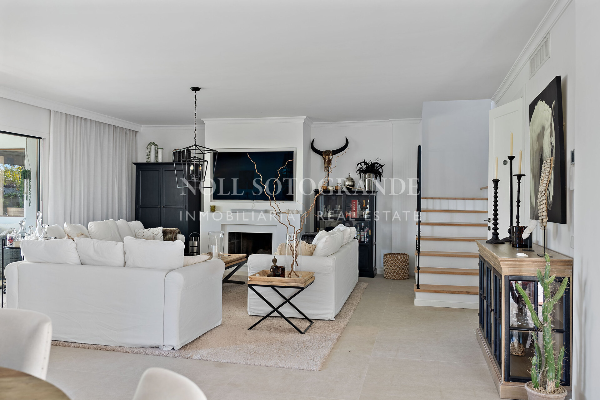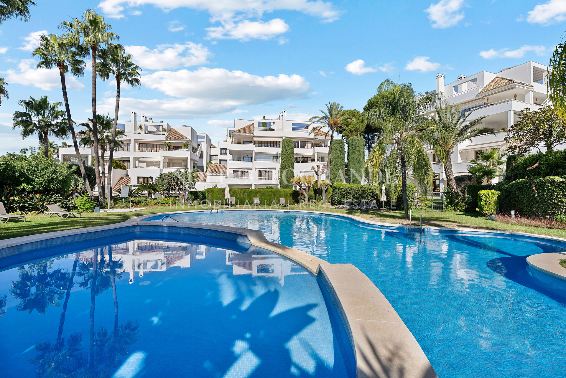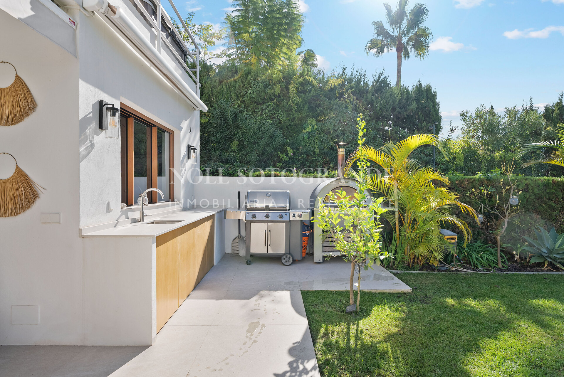Ground Floor Duplex zu verkaufen in Alcores del Golf, Nueva Andalucia mit 3 Schlafzimmer, 3 Badezimmer, 3 Badezimmer mit eigenem Bad, 1 Toilette, eingebaut 1991 und hat Pool (gemeinschaftlich), garaje (privat) und Garten (privat). Abmessungen: 207m² gebaut, 110m² Grundstück und 50m² Terrasse.