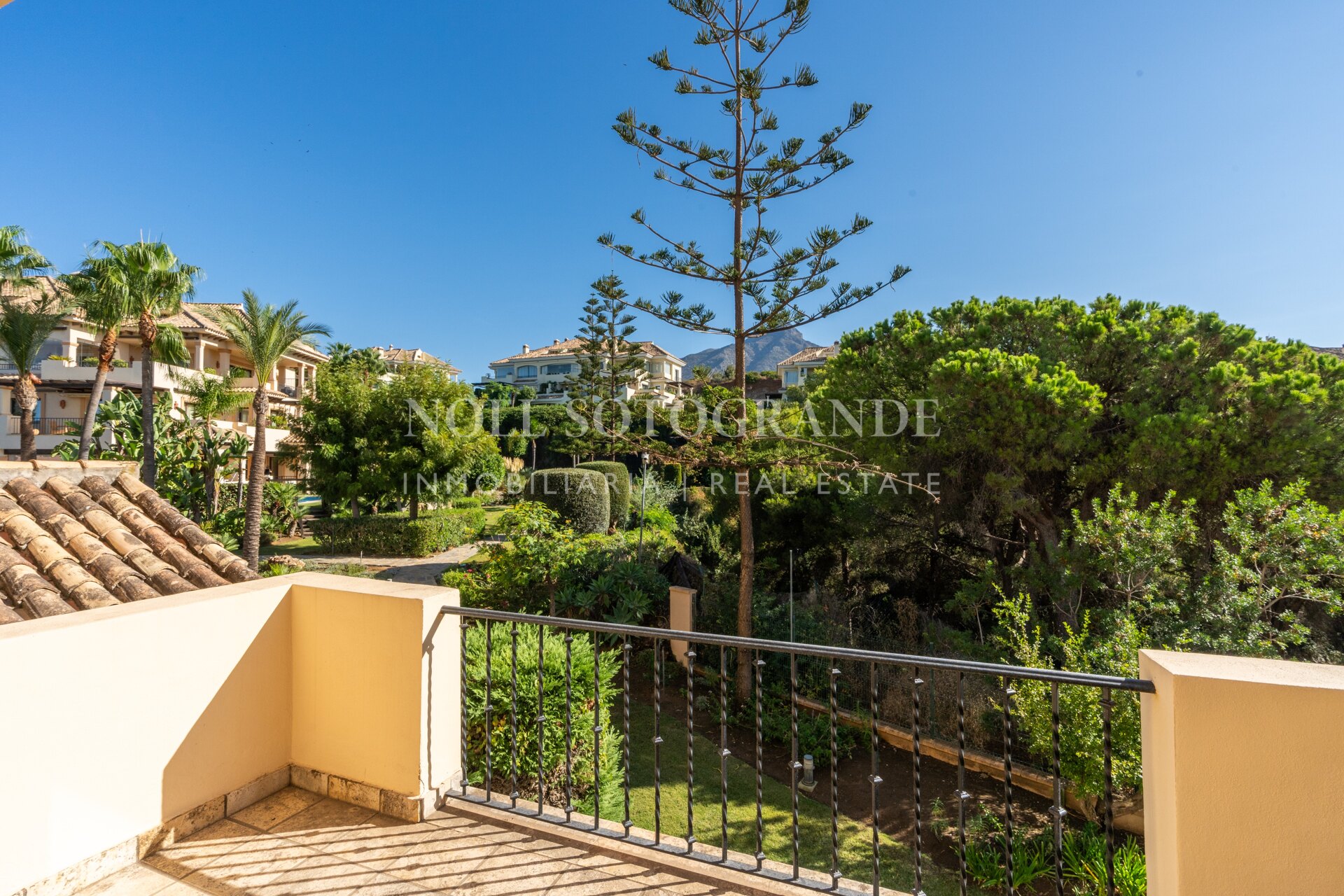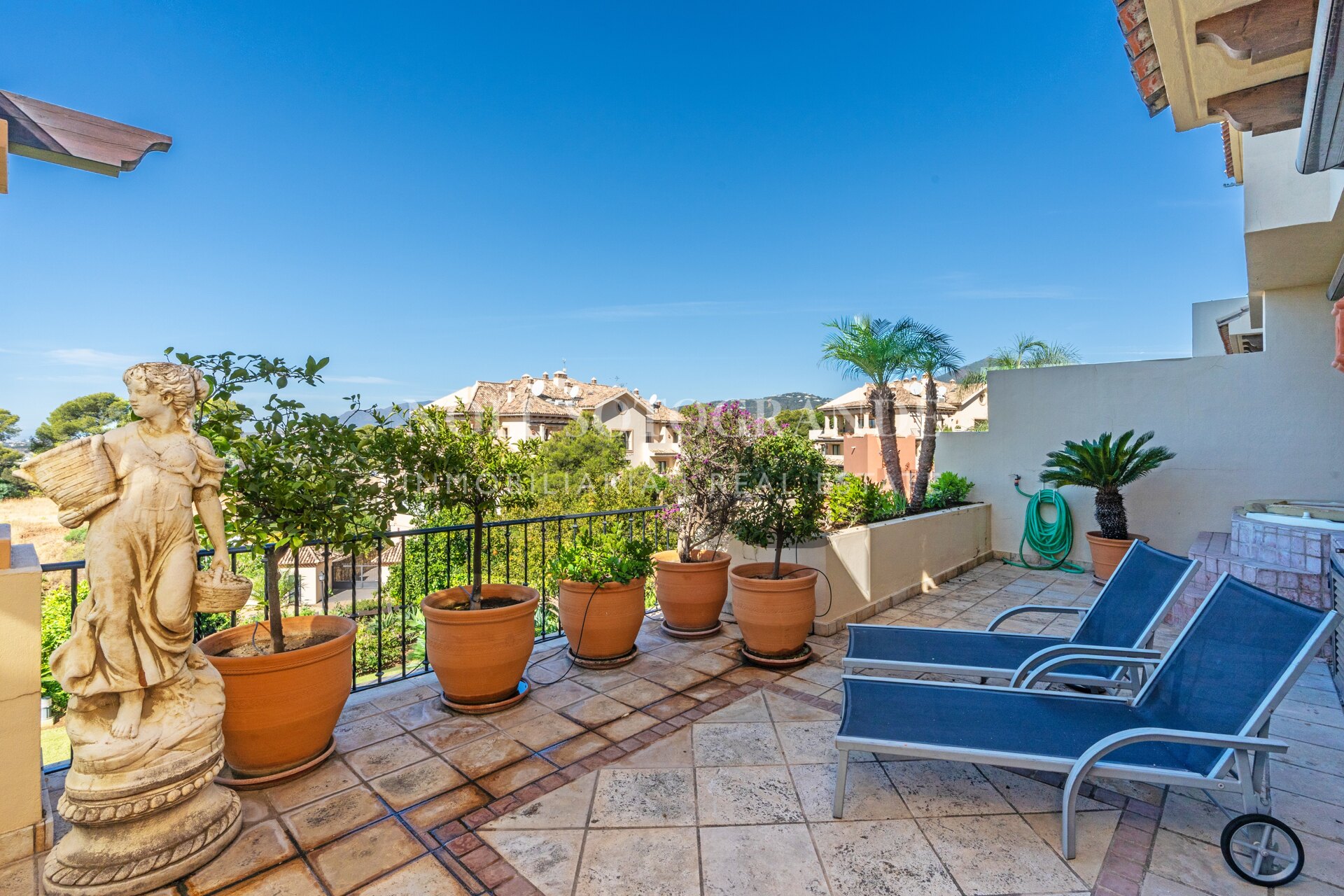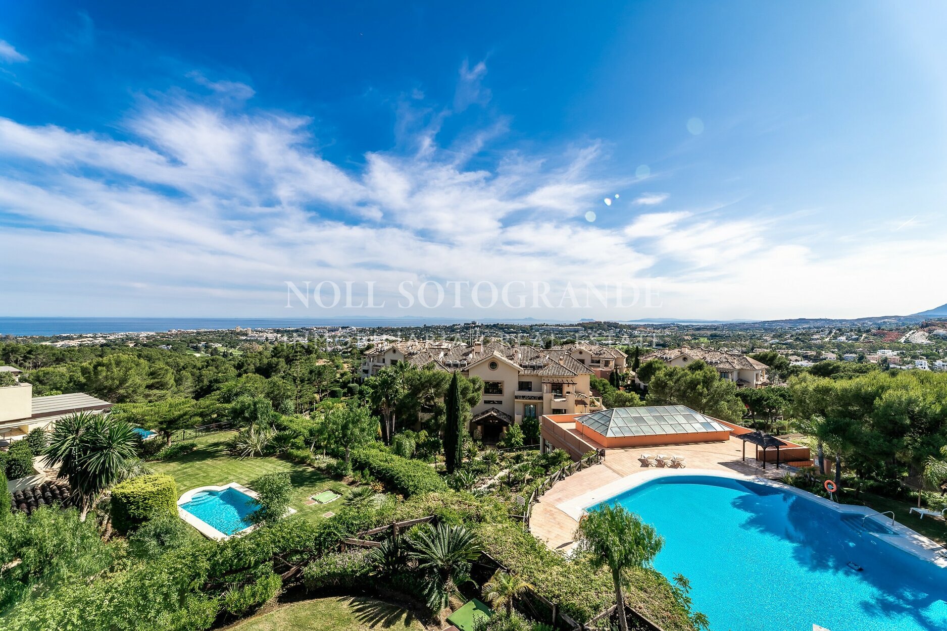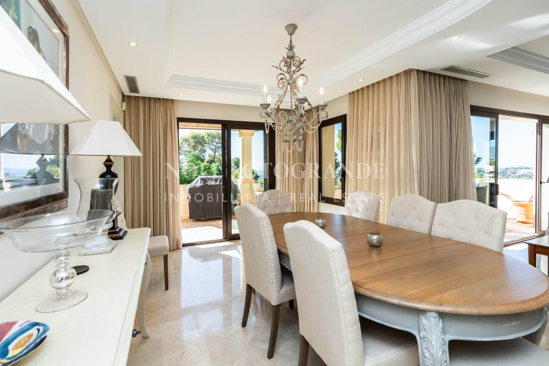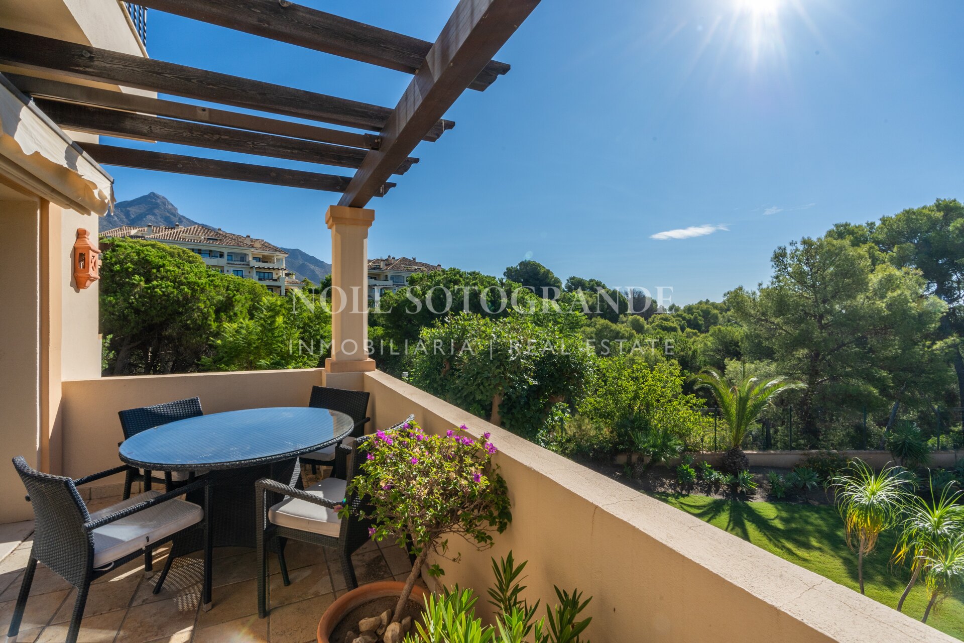 Wohnung zu verkaufen in Aloha Park, Nueva Andalucia mit 3 Schlafzimmer, 3 Badezimmer, 3 Badezimmer mit eigenem Bad, 1 Toilette, eingebaut 2003 und hat Pool (gemeinschaftlich), garaje (gemeinschaftlich) und Garten (gemeinschaftlich). Abmessungen: 229m² gebaut und 109m² Terrasse.