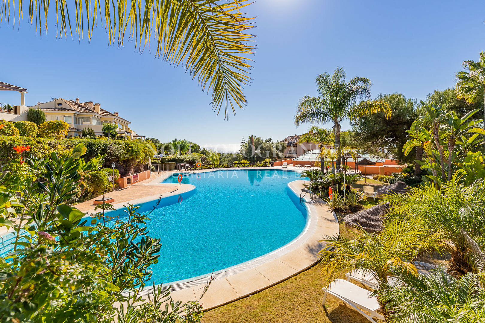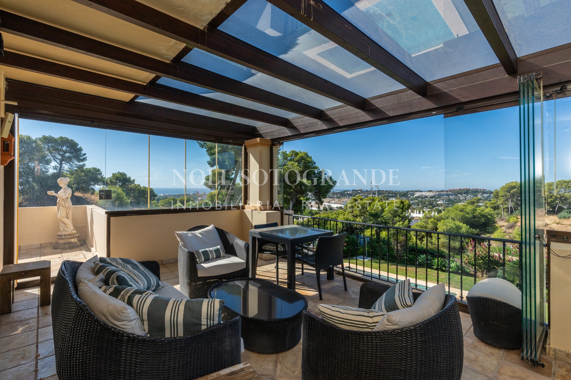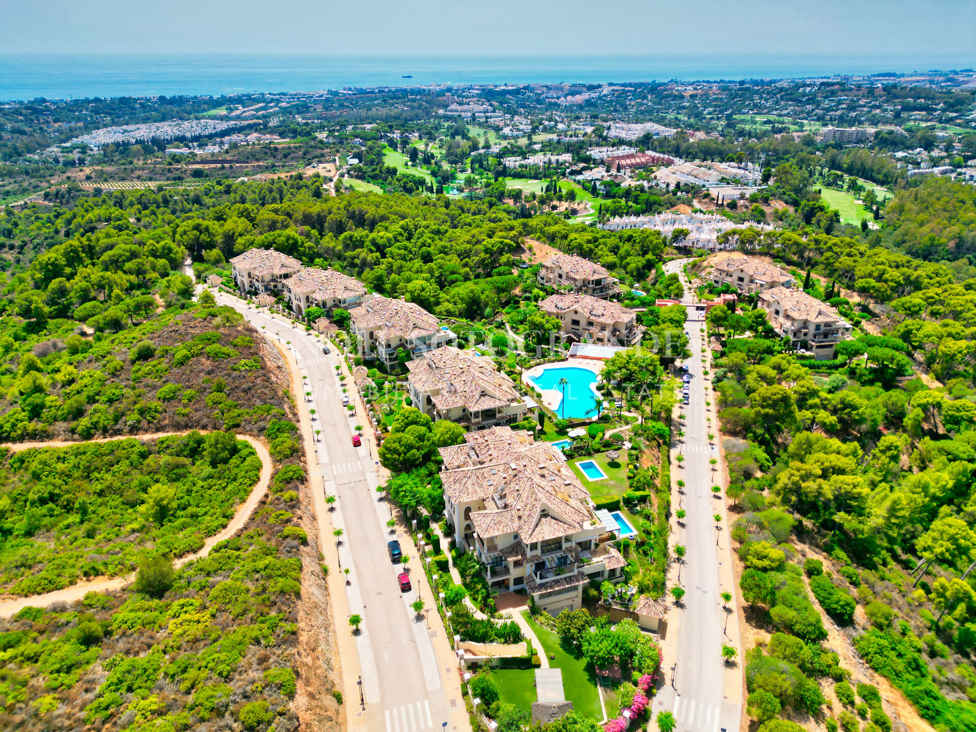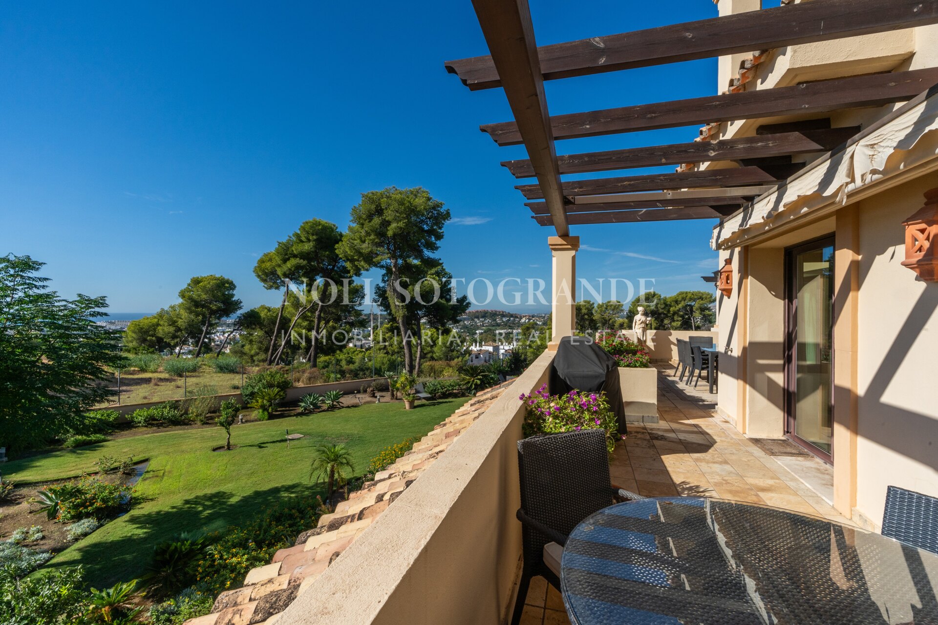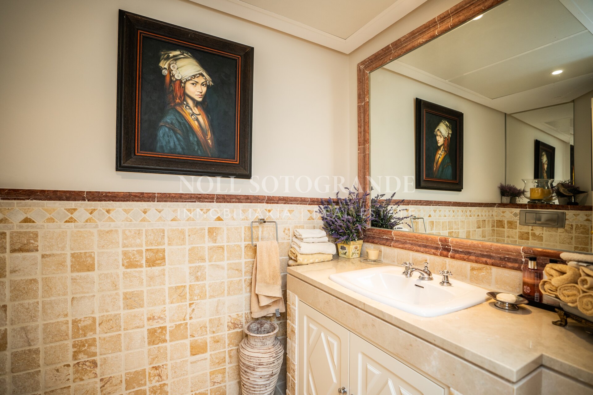 Wohnung zu verkaufen in Aloha Park, Nueva Andalucia mit 3 Schlafzimmer, 3 Badezimmer, 3 Badezimmer mit eigenem Bad, 1 Toilette, eingebaut 2003 und hat Pool (gemeinschaftlich), garaje (gemeinschaftlich) und Garten (gemeinschaftlich). Abmessungen: 229m² gebaut und 109m² Terrasse.