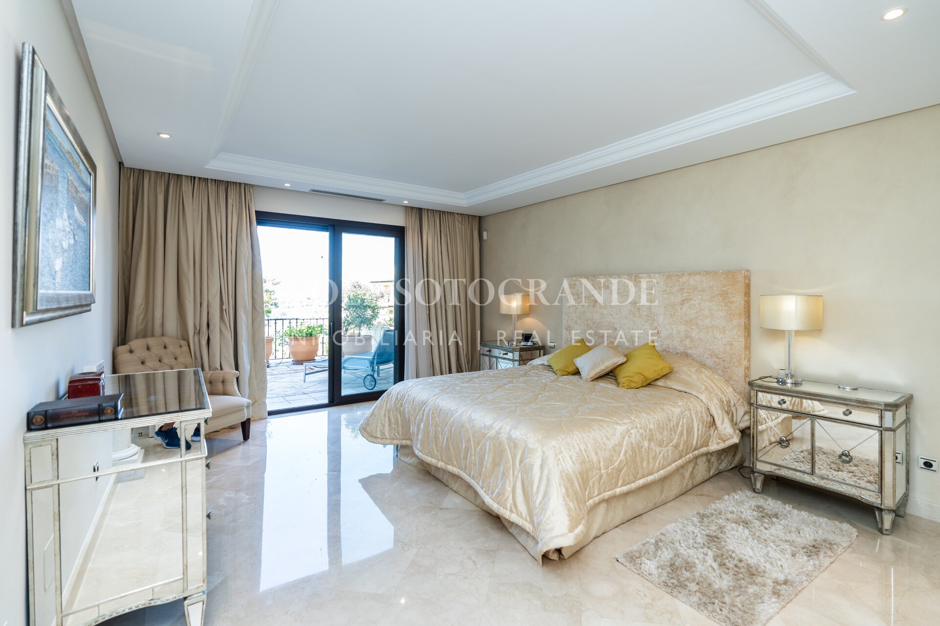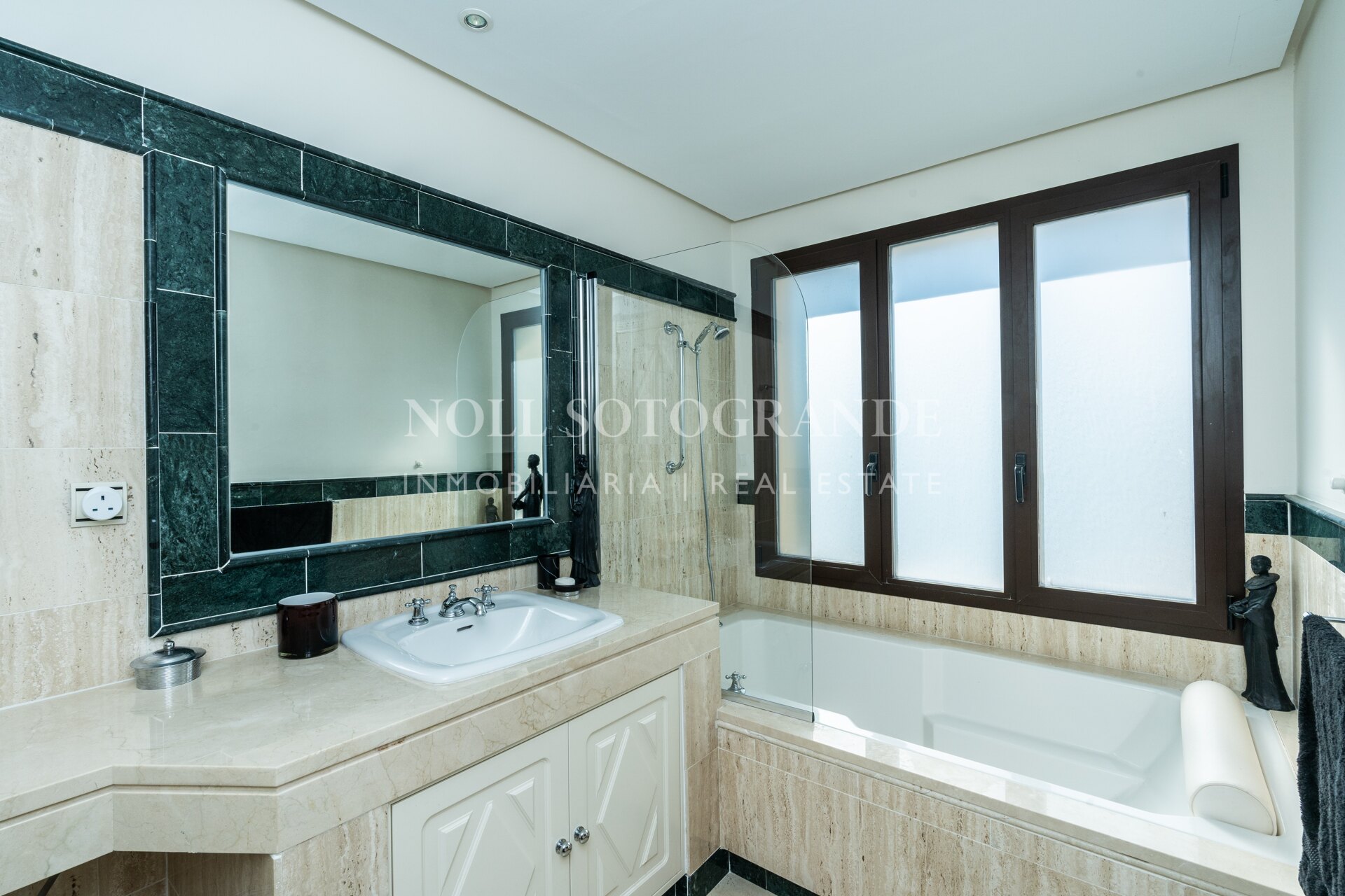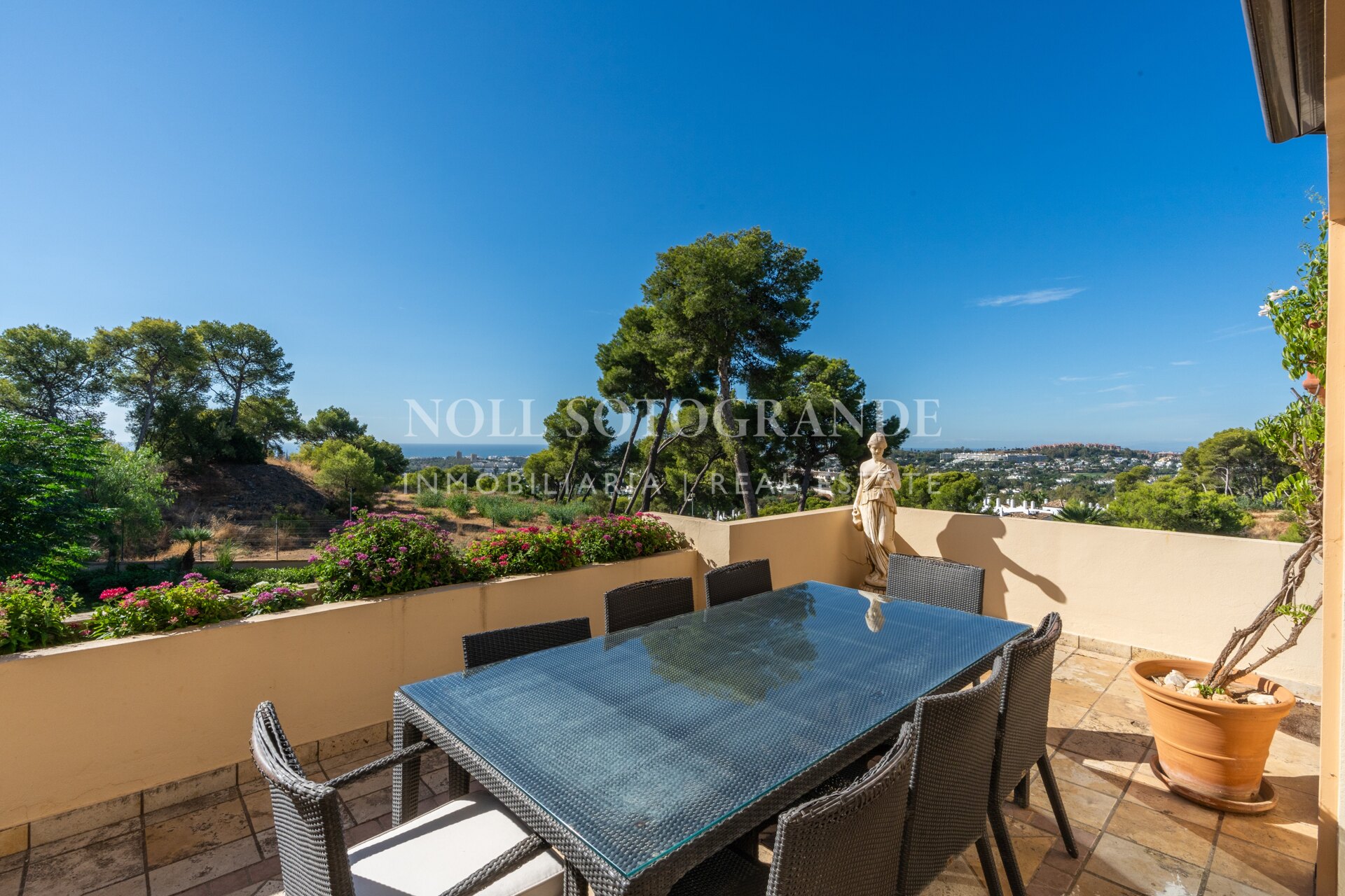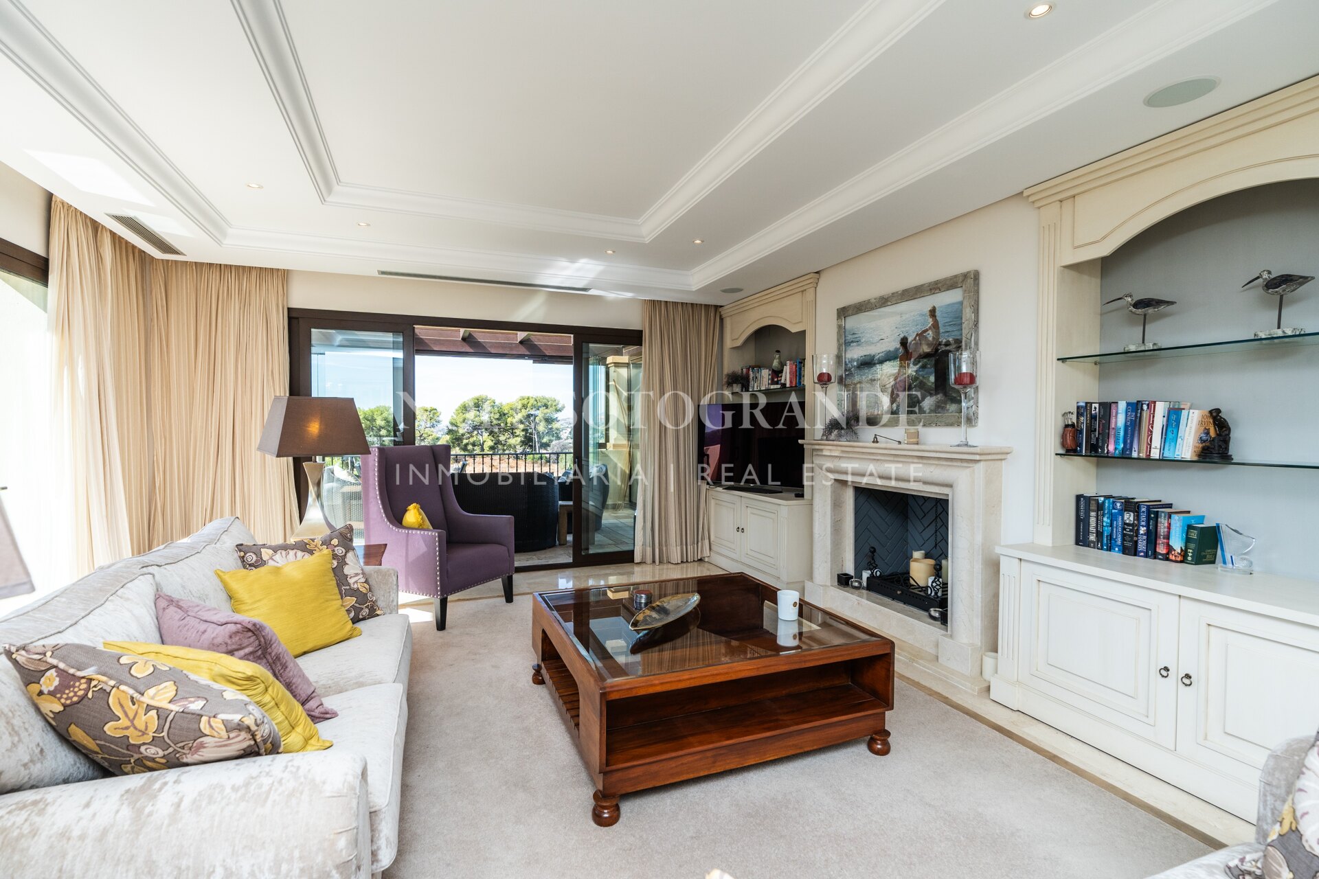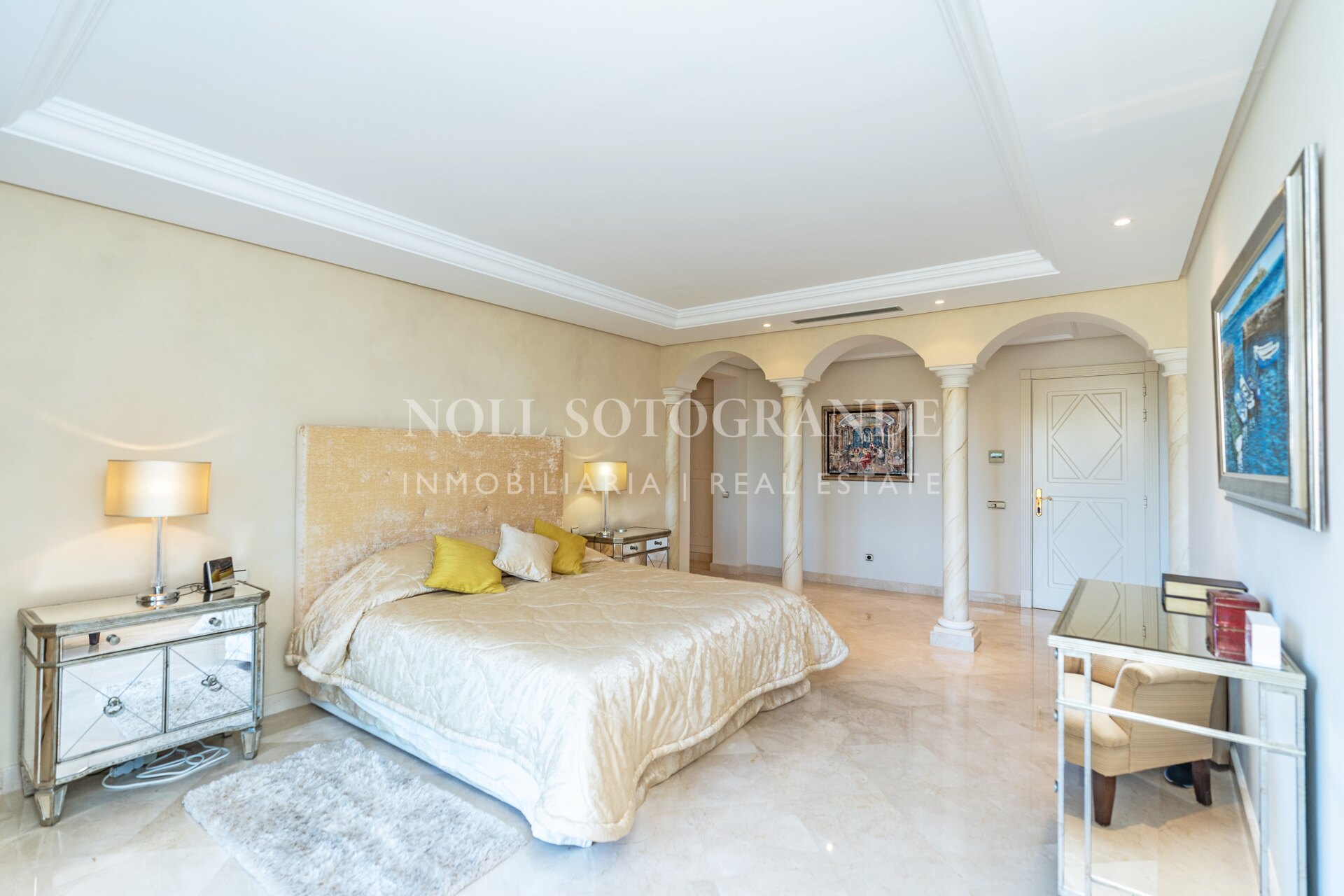 Wohnung zu verkaufen in Aloha Park, Nueva Andalucia mit 3 Schlafzimmer, 3 Badezimmer, 3 Badezimmer mit eigenem Bad, 1 Toilette, eingebaut 2003 und hat Pool (gemeinschaftlich), garaje (gemeinschaftlich) und Garten (gemeinschaftlich). Abmessungen: 229m² gebaut und 109m² Terrasse.