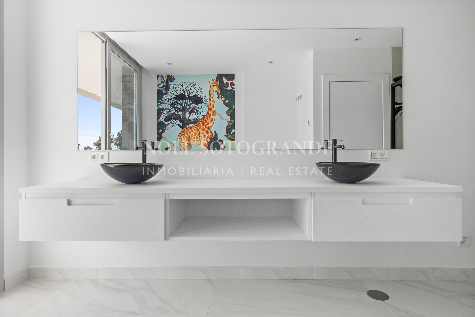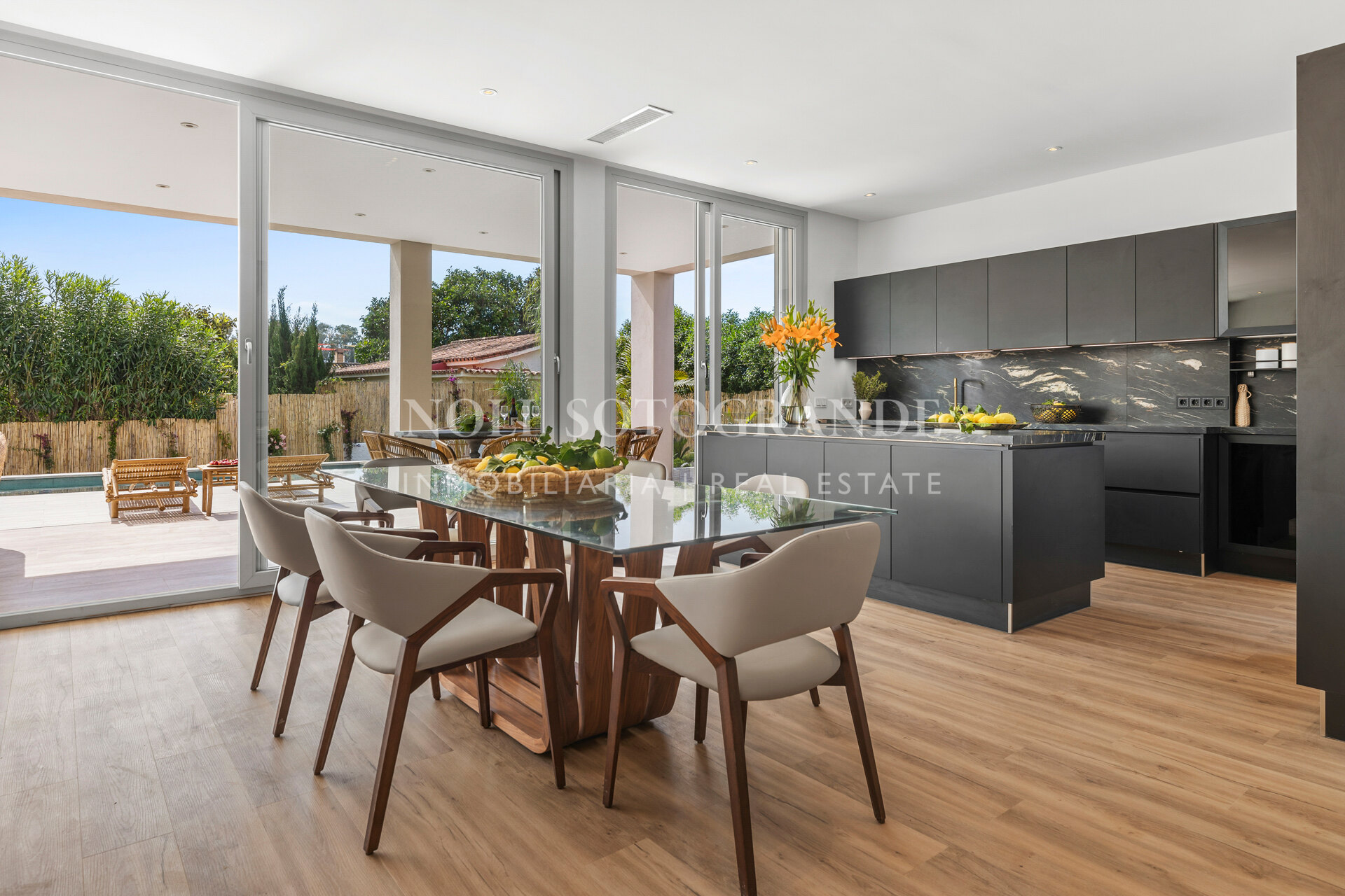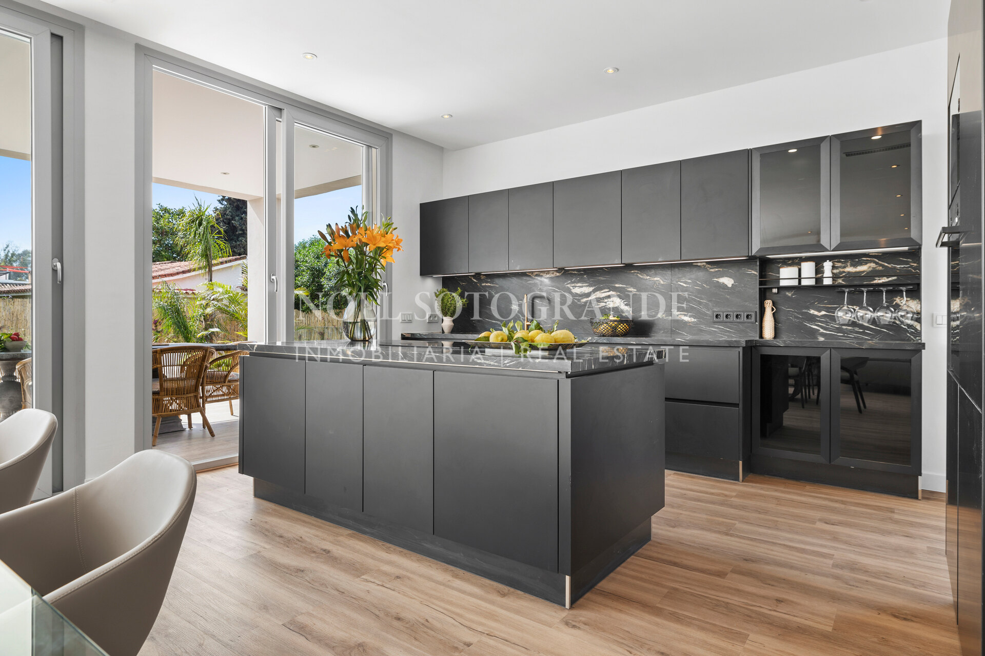 Esta propiedad, Ausrichtung Süd, verfügt über die folgenden Einrichtungen: annehmlichkeiten nahebei, nahe öffentlicher verkehrsmittel, klimaanlage, fussbodenheizung (badezimmer), nähe ortszentrum, nähe schulen, gästewohnung, offener kamin, meer/strandnähe, nähe golfplatz, closetorestaurants, einbauschränke, hervorragender zustand, blick auf garten, begehbarer kleiderschrank, blick aufs schwimmbad und gästetoilette.