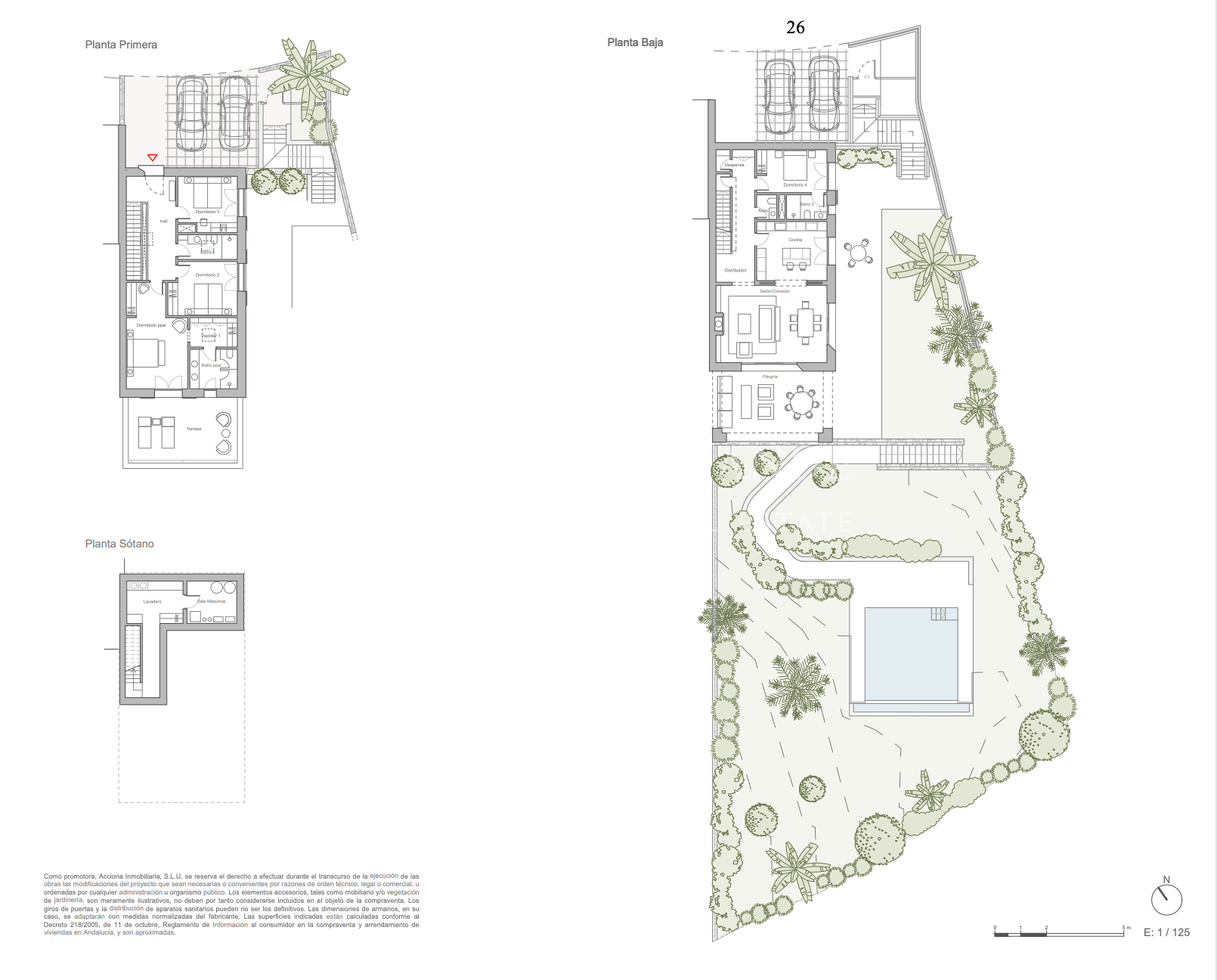 Es wird drei Arten von Häusern geben: Patio-Häuser, Garten-Häuser und Villen. Im Falle der Garten-Häuser handelt es sich um 24 Doppelhäuser im zeitlosen Design, deren Volumina sich nahtlos in die verschiedenen Gärten und Plattformen integrieren und sich harmonisch an die Topografie des Geländes anpassen. Alle diese Residenzen bieten großzügige Grundstücke mit privaten Gärten und Swimmingpools sowie eine geräumige Pergola, die den Innenraum nach außen erweitert und es ermöglicht, das angenehme Klima von Sotogrande zu genießen. Die meisten dieser Häuser verfügen über Grundstücke von mehr als 500 Quadratmetern.