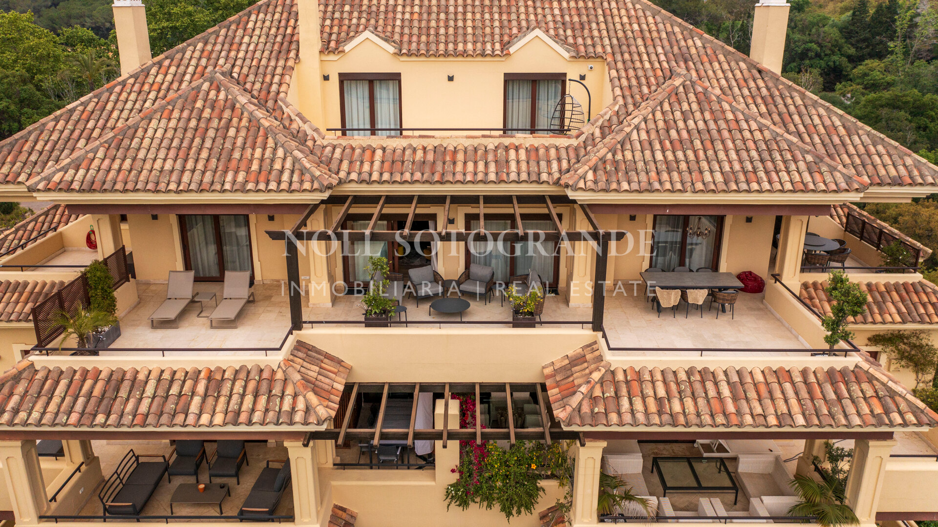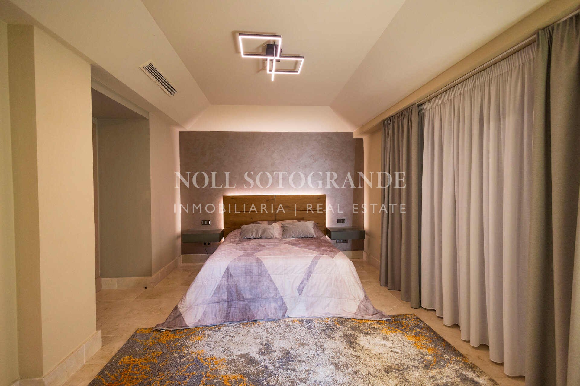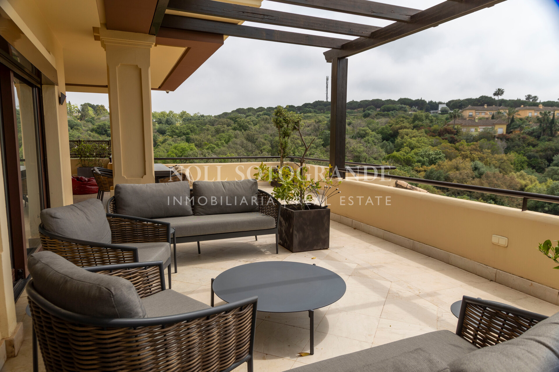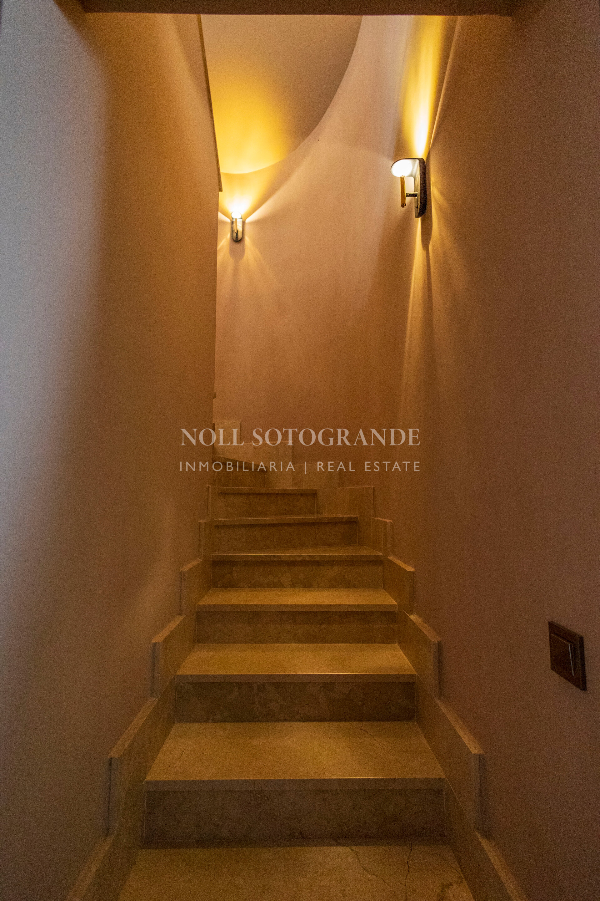 Dieses spektakuläre Duplex-Penthaus befindet sich in der Urbanisation Valgrande, nur wenige Meter vom Golfclub Valderrama entfernt und wurde kürzlich renoviert. Die beeindruckende Eingangshalle dieses Penthauses ist sowohl durch das Treppenhaus zugängig, als auch den Lift, der direkt in die Wohnung führt. Das Hauptgeschoss verfügt über: ein Gäste-WC, eine voll ausgestattete Küche mit Ausgang zur Terrasse mit Frühstücksbereich und Waschküche; ferner ein großes Wohnzimmer mit offenem Kamin. Ebenso befinden sich hier zwei Schlafzimmer, beide mit eigenem Bad, Ankleideraum und Zugang zur Terrasse. Das Esszimmer wurde in ein Heimkino umgewandelt. Das Obergeschoss verfügt über zwei Schlafzimmer mit Bad, eines davon mit Ankleideraum, und beide mit Zugang zur Terrasse. Die Immobilie verfügt außerdem über Fußbodenheizung, Klimaanlage (warm/kalt), rustiklale Marmorböden, zwei Stellplätze und einen Abstellraum in der Gemeinschaftsgarage.