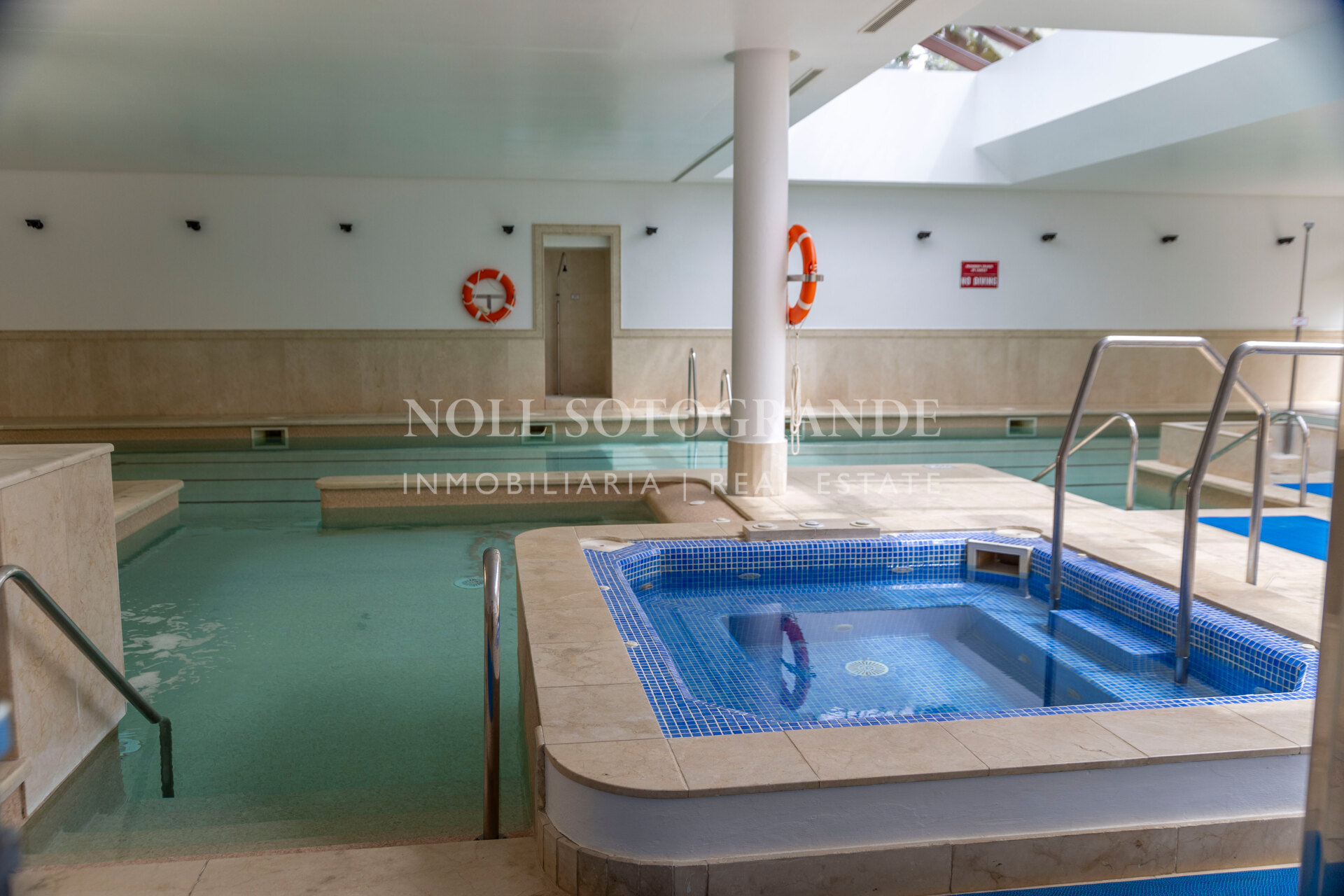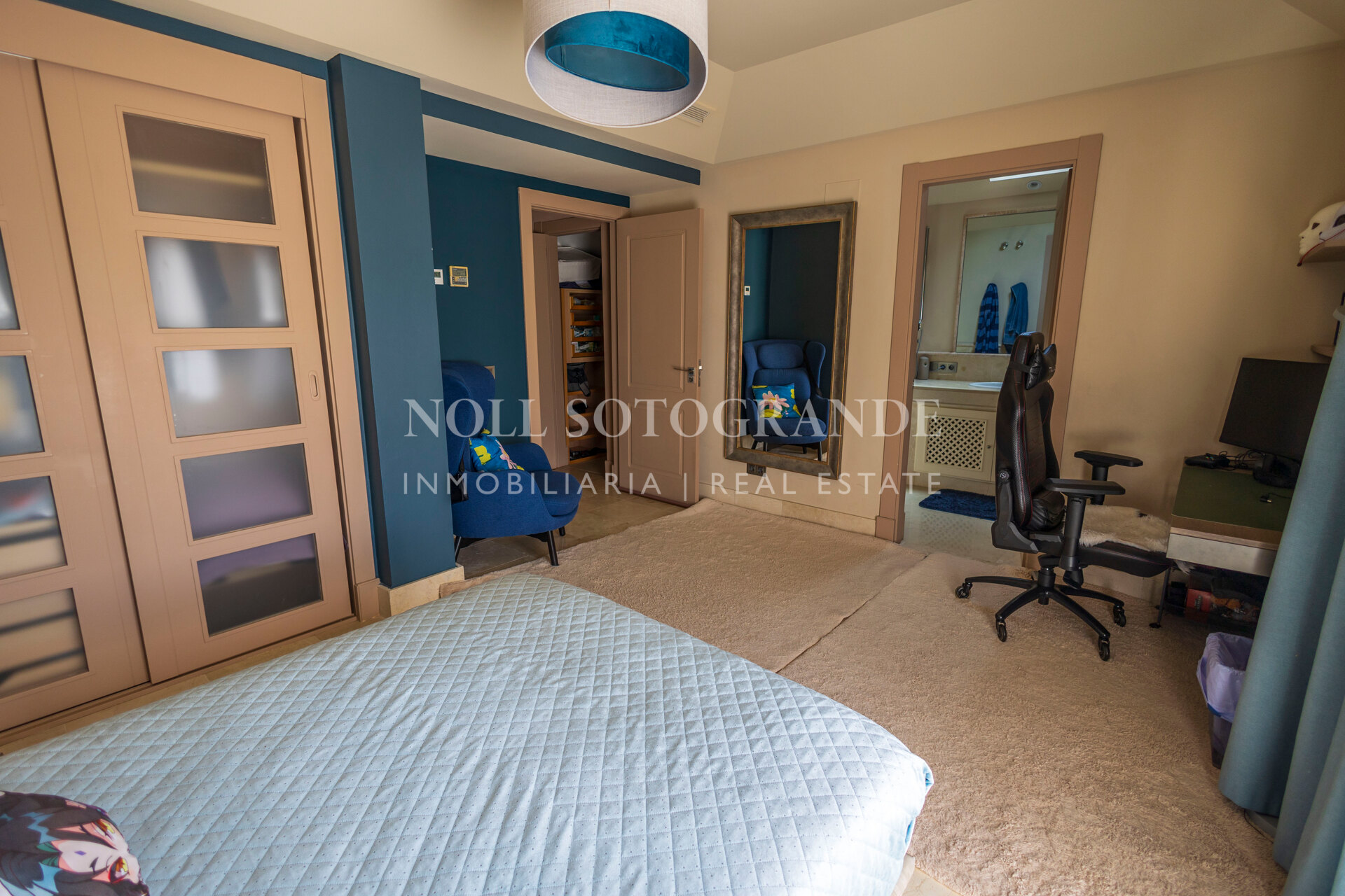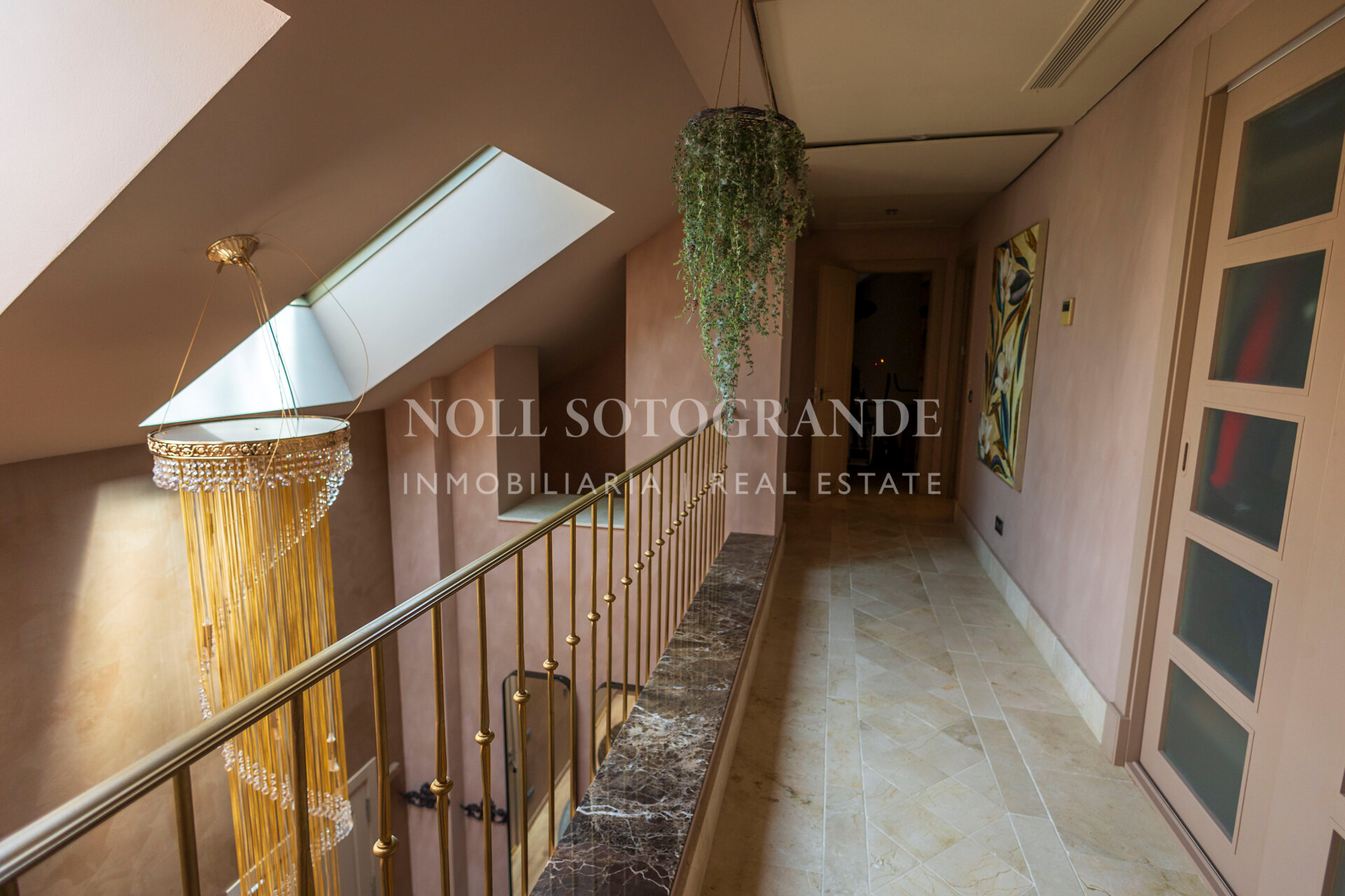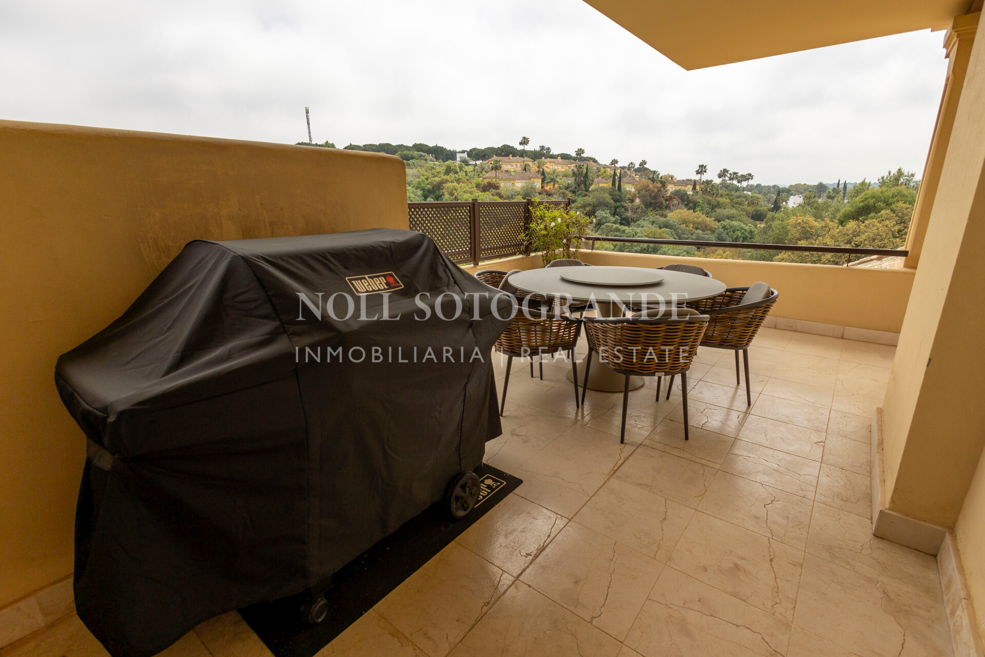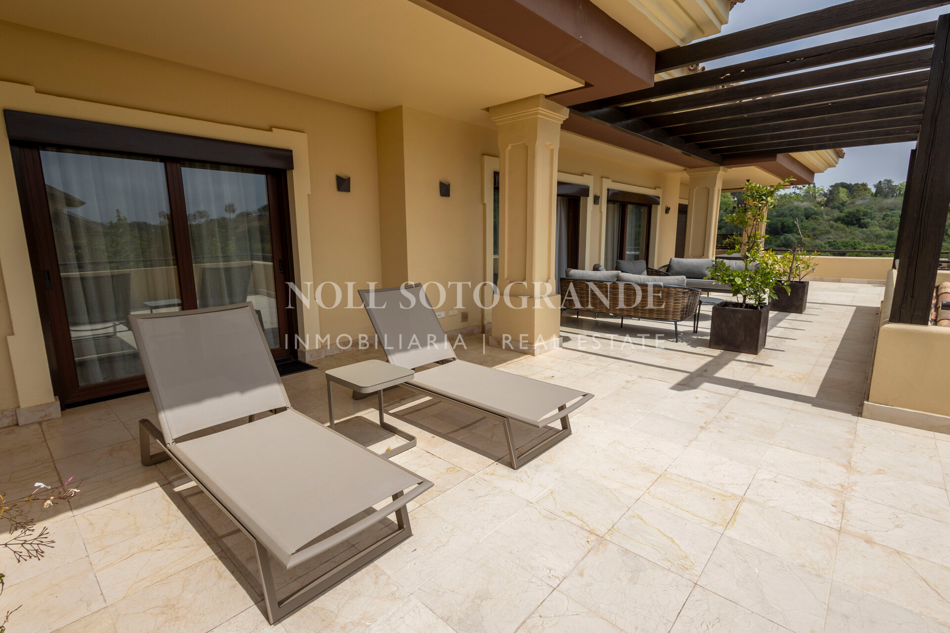 Dieses spektakuläre Duplex-Penthaus befindet sich in der Urbanisation Valgrande, nur wenige Meter vom Golfclub Valderrama entfernt und wurde kürzlich renoviert. Die beeindruckende Eingangshalle dieses Penthauses ist sowohl durch das Treppenhaus zugängig, als auch den Lift, der direkt in die Wohnung führt. Das Hauptgeschoss verfügt über: ein Gäste-WC, eine voll ausgestattete Küche mit Ausgang zur Terrasse mit Frühstücksbereich und Waschküche; ferner ein großes Wohnzimmer mit offenem Kamin. Ebenso befinden sich hier zwei Schlafzimmer, beide mit eigenem Bad, Ankleideraum und Zugang zur Terrasse. Das Esszimmer wurde in ein Heimkino umgewandelt. Das Obergeschoss verfügt über zwei Schlafzimmer mit Bad, eines davon mit Ankleideraum, und beide mit Zugang zur Terrasse. Die Immobilie verfügt außerdem über Fußbodenheizung, Klimaanlage (warm/kalt), rustiklale Marmorböden, zwei Stellplätze und einen Abstellraum in der Gemeinschaftsgarage.