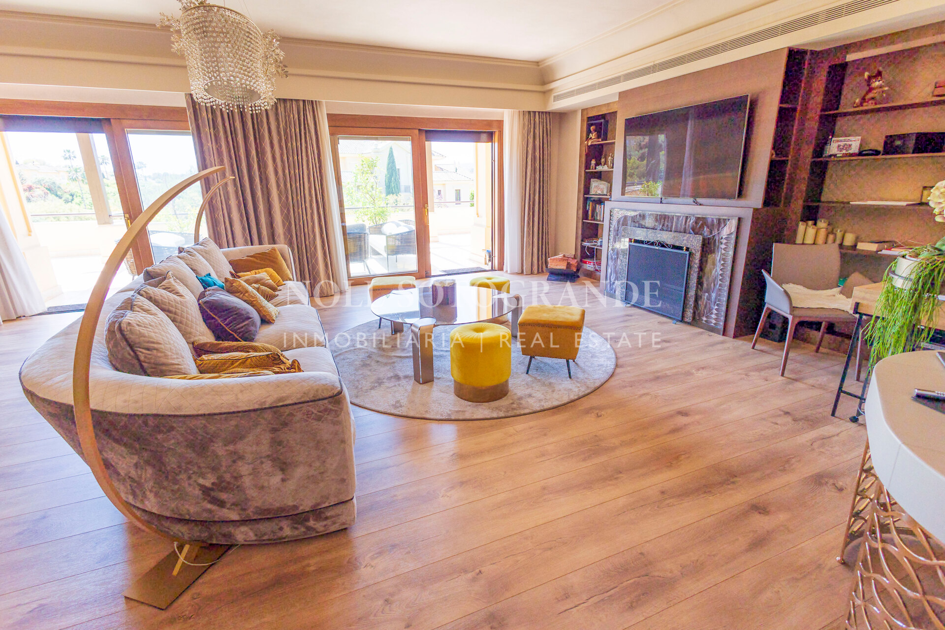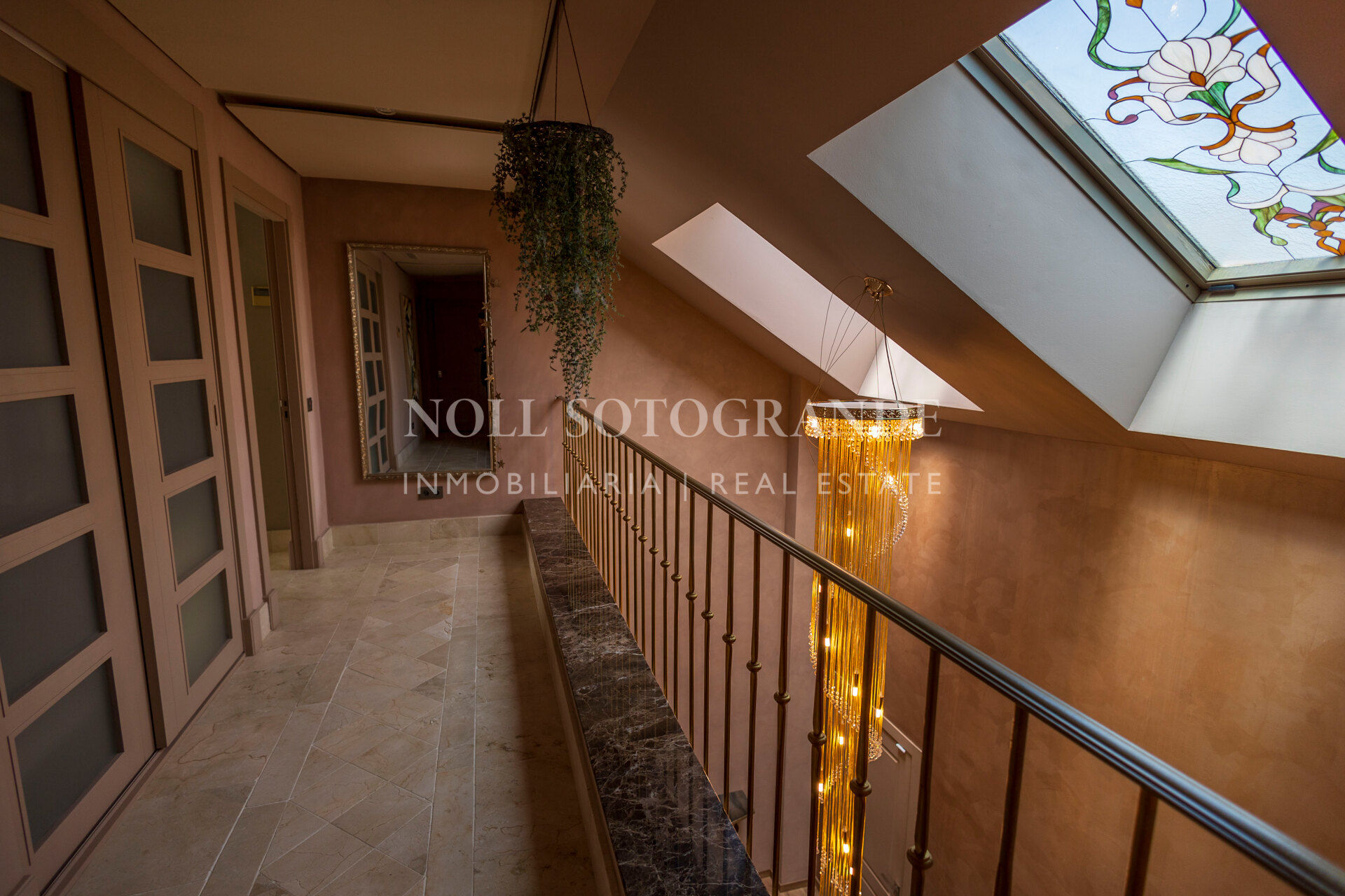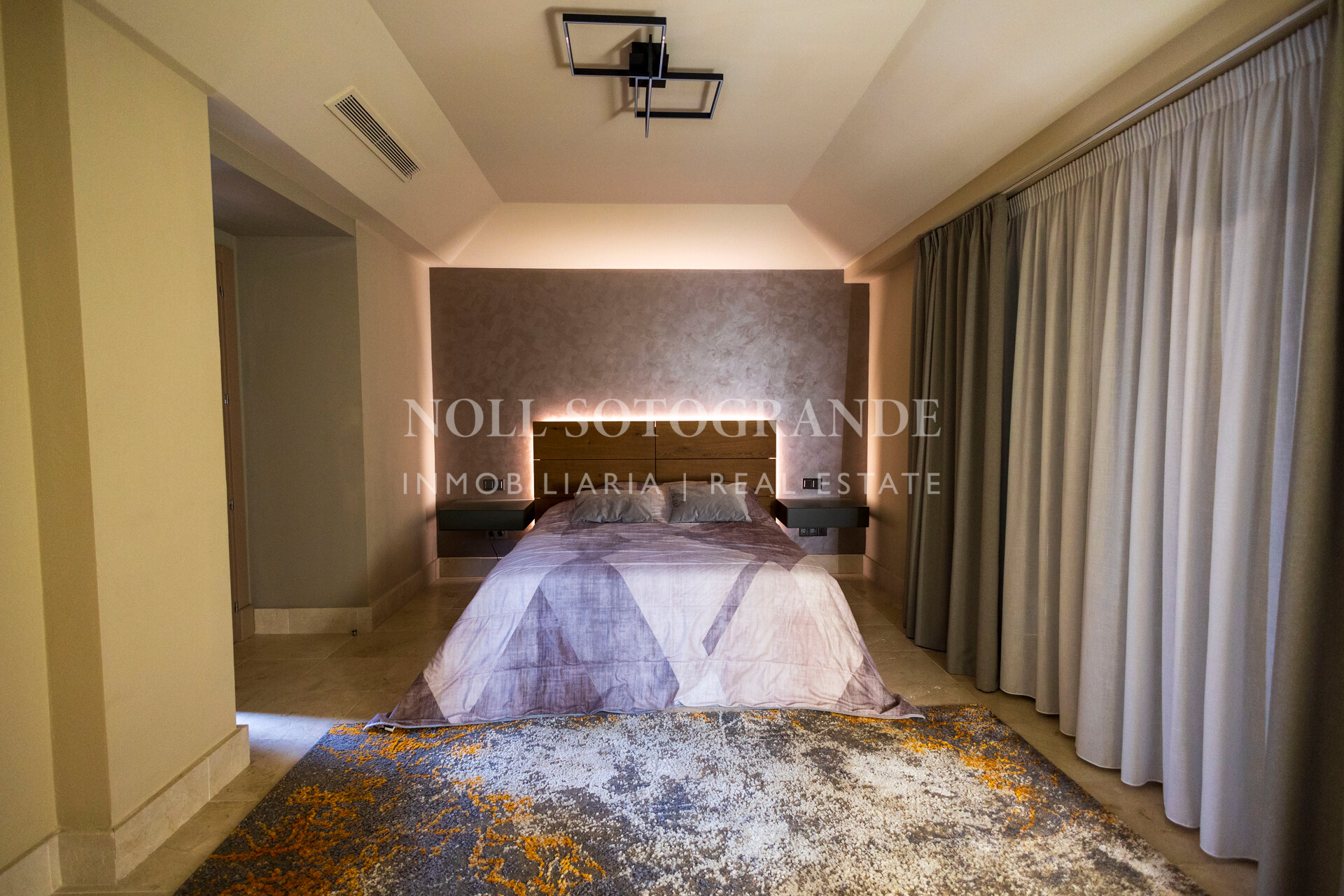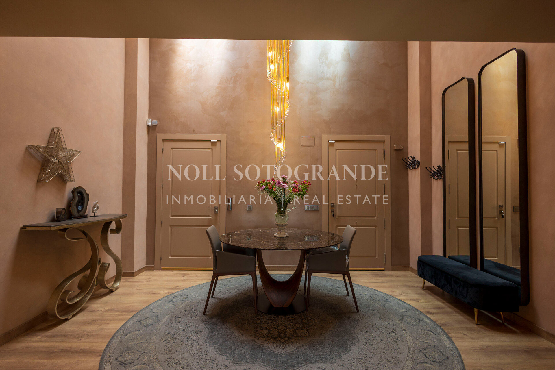 Dieses spektakuläre Duplex-Penthaus befindet sich in der Urbanisation Valgrande, nur wenige Meter vom Golfclub Valderrama entfernt und wurde kürzlich renoviert. Die beeindruckende Eingangshalle dieses Penthauses ist sowohl durch das Treppenhaus zugängig, als auch den Lift, der direkt in die Wohnung führt. Das Hauptgeschoss verfügt über: ein Gäste-WC, eine voll ausgestattete Küche mit Ausgang zur Terrasse mit Frühstücksbereich und Waschküche; ferner ein großes Wohnzimmer mit offenem Kamin. Ebenso befinden sich hier zwei Schlafzimmer, beide mit eigenem Bad, Ankleideraum und Zugang zur Terrasse. Das Esszimmer wurde in ein Heimkino umgewandelt. Das Obergeschoss verfügt über zwei Schlafzimmer mit Bad, eines davon mit Ankleideraum, und beide mit Zugang zur Terrasse. Die Immobilie verfügt außerdem über Fußbodenheizung, Klimaanlage (warm/kalt), rustiklale Marmorböden, zwei Stellplätze und einen Abstellraum in der Gemeinschaftsgarage.