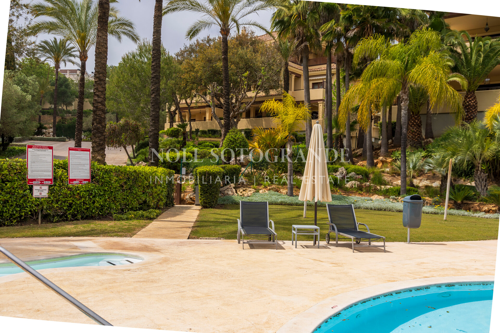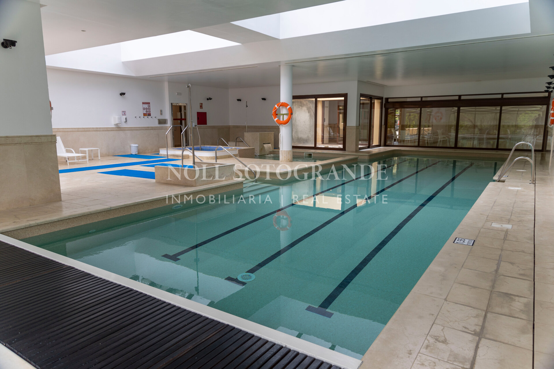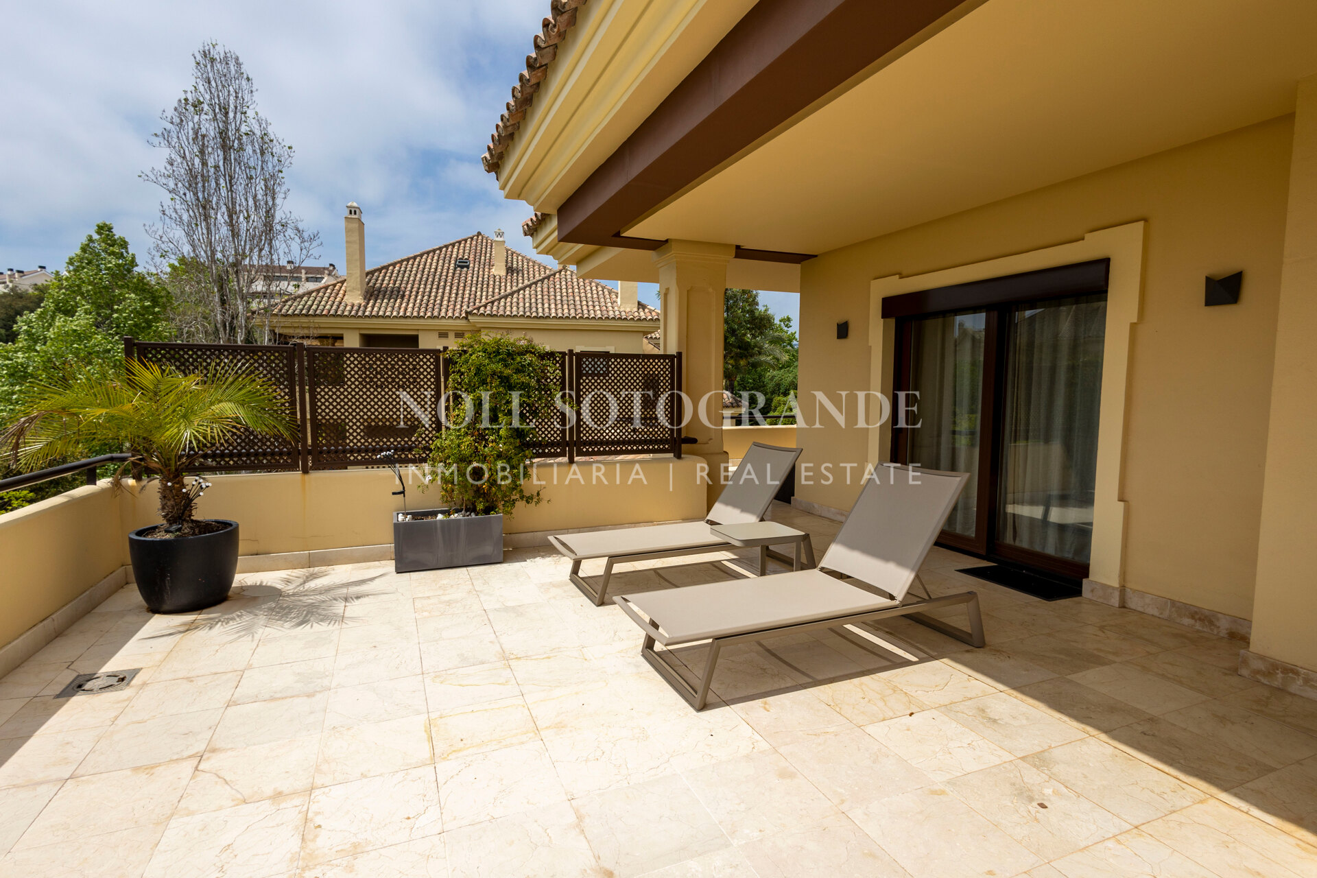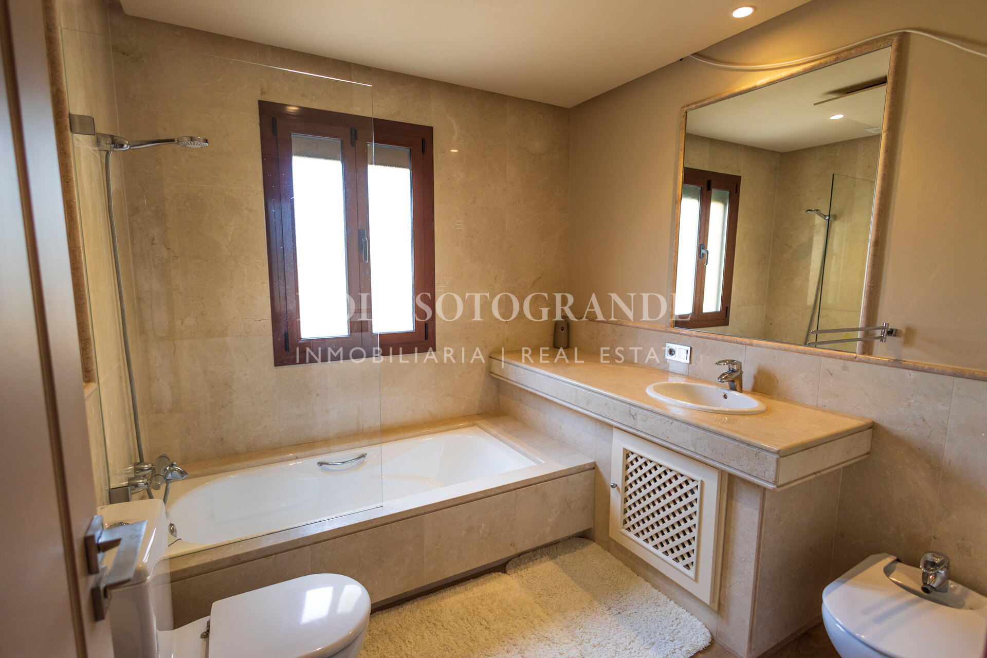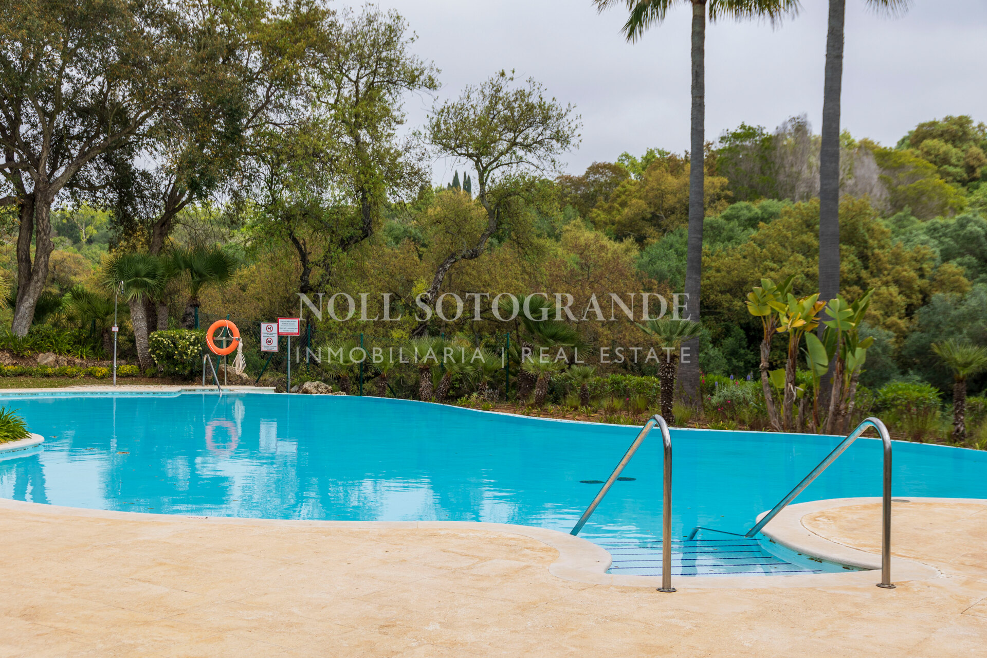 Dieses spektakuläre Duplex-Penthaus befindet sich in der Urbanisation Valgrande, nur wenige Meter vom Golfclub Valderrama entfernt und wurde kürzlich renoviert. Die beeindruckende Eingangshalle dieses Penthauses ist sowohl durch das Treppenhaus zugängig, als auch den Lift, der direkt in die Wohnung führt. Das Hauptgeschoss verfügt über: ein Gäste-WC, eine voll ausgestattete Küche mit Ausgang zur Terrasse mit Frühstücksbereich und Waschküche; ferner ein großes Wohnzimmer mit offenem Kamin. Ebenso befinden sich hier zwei Schlafzimmer, beide mit eigenem Bad, Ankleideraum und Zugang zur Terrasse. Das Esszimmer wurde in ein Heimkino umgewandelt. Das Obergeschoss verfügt über zwei Schlafzimmer mit Bad, eines davon mit Ankleideraum, und beide mit Zugang zur Terrasse. Die Immobilie verfügt außerdem über Fußbodenheizung, Klimaanlage (warm/kalt), rustiklale Marmorböden, zwei Stellplätze und einen Abstellraum in der Gemeinschaftsgarage.
