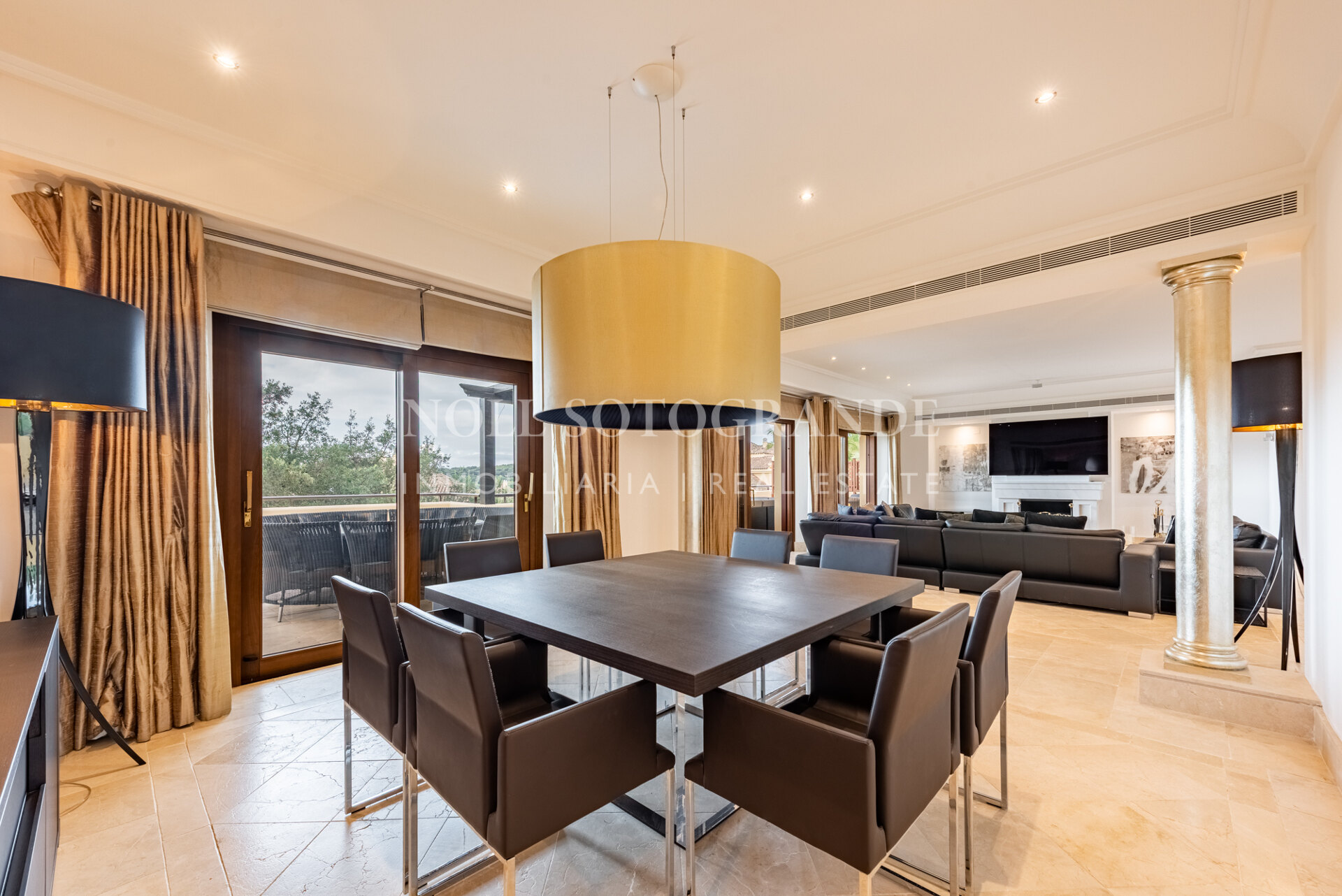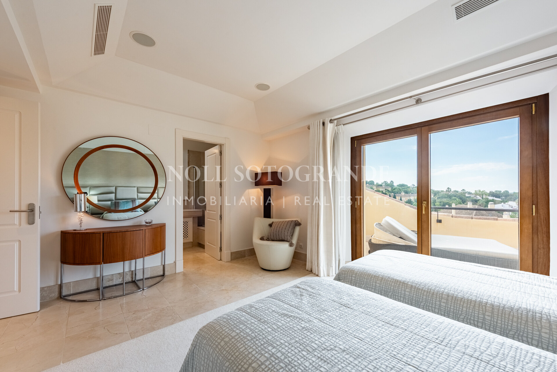 Dieses außergewöhnliche Duplex-Penthaus in der prestigeträchtigen Wohnanlage Valgrande, direkt gegenüber dem Valderrama Golf Club und nur wenige Autominuten von der Sotogrande International School entfernt, bietet eine Kombination aus Geräumigkeit, Privatsphäre und gehobenem Wohnkomfort. Ein privater Aufzug ermöglicht den direkten Zugang zur Residenz und sorgt vom ersten Moment an für absoluten Komfort und Exklusivität.
