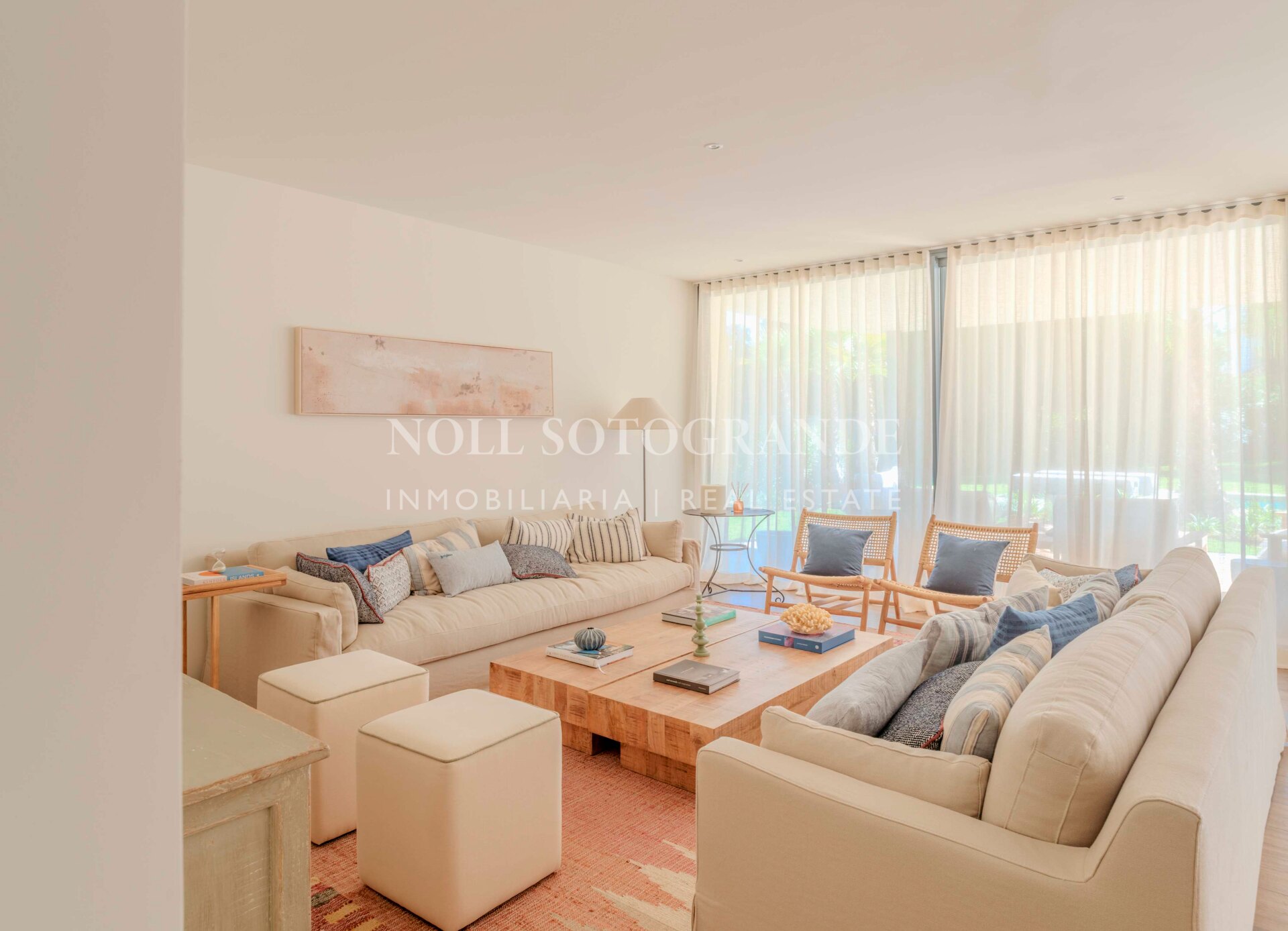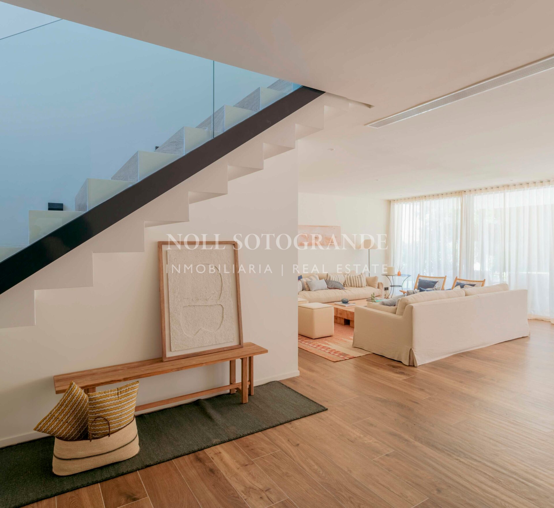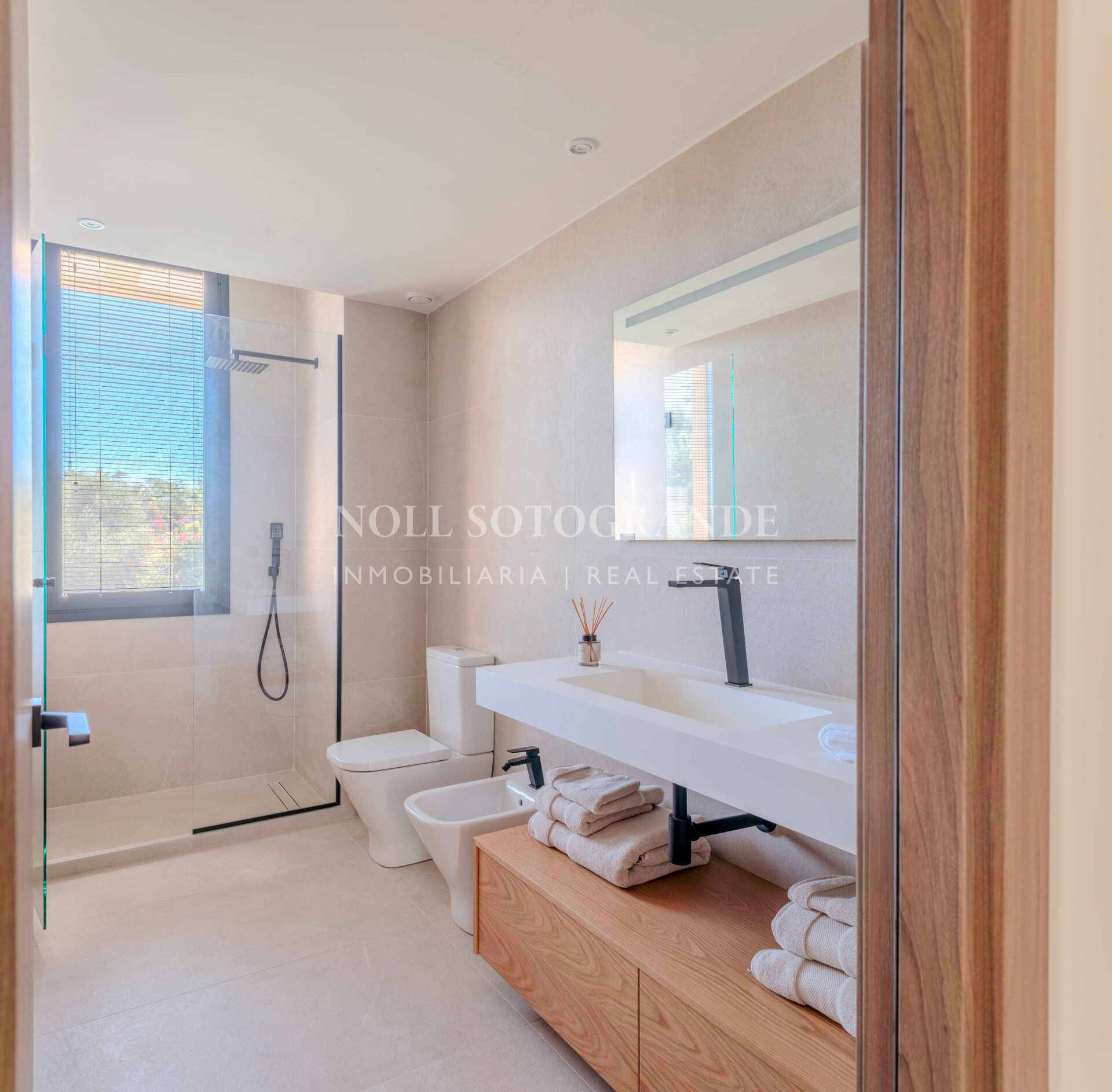 Diese luxuriöse Neubau-Villa in Sotogrande Costa ( B-Zone ) wurde vom renommierten Architekten Max Lago entworfen. Mit einem wunderschön angelegten tropischen Garten und Schwimmbad ist diese Residenz ein idyllischer Rückzugsort. Die Villa verfügt über vier geräumige Schlafzimmer, jedes mit eigenem Bad, die Privatsphäre und Komfort bieten. Die offene amerikanische Küche ist mit modernen Geräten voll ausgestattet, und die großzügigen Wohnbereiche fließen nahtlos in die Außenbereiche über, ideal zum Unterhalten oder Entspannen. Hochwertige Oberflächen und große Fenster schaffen eine lichtdurchflutete und einladende Atmosphäre im gesamten Haus. Zur Ausstattung gehören auch Zentralheizung, Klimaanlage, Solarpaneele. Die Villa liegt zentral sowohl in der Nähe der Golfplätze, der Strände sowie Einkaufsmöglichkeiten und anderen Annehmlichkeiten von Sotogrande, was sie ideal sowohl als Hauptresidenz als auch als Feriendomizil macht.