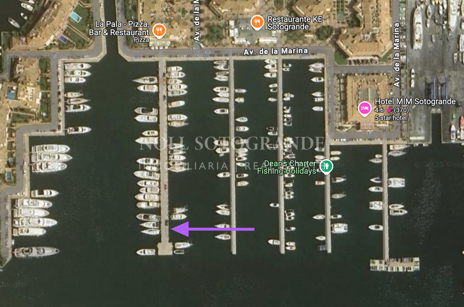 Eine hervorragende Gelegenheit, einen 15 × 4,5 Meter großen Liegeplatz (Nr. 346) im Herzen der Marina von Sotogrande am begehrten Pier 5 zu erwerben. Genießen Sie den Komfort, mit dem Auto direkt bis zu Ihrem Boot zu fahren, während die lebhafte Atmosphäre der Ke Bar und die Hafenpromenade nur wenige Schritte entfernt liegen. Diese Lage bietet unschlagbaren Komfort und eine hervorragende Erreichbarkeit.