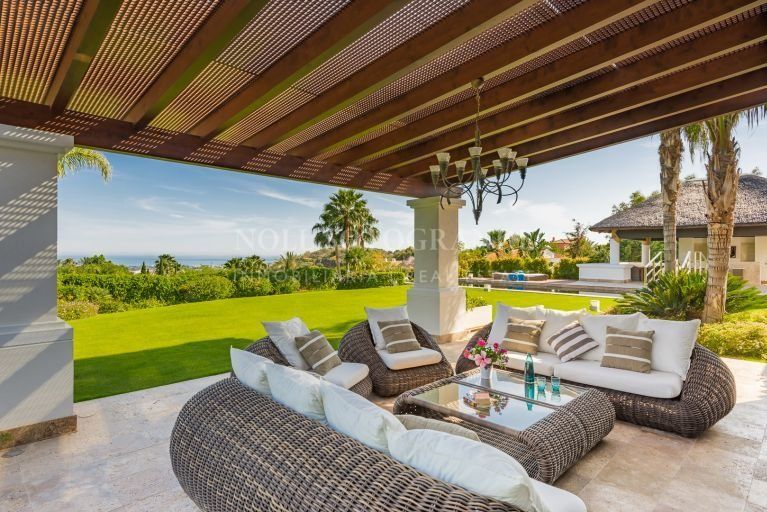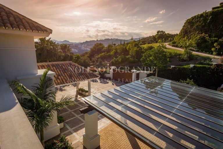 Das Haus für 7.500.000 € bietet aufgrund seiner unglaublichen Lage oberhalb des Golf-Tals von Nueva Andalucia einen atemberaubenden Blick auf das Mittelmeer.