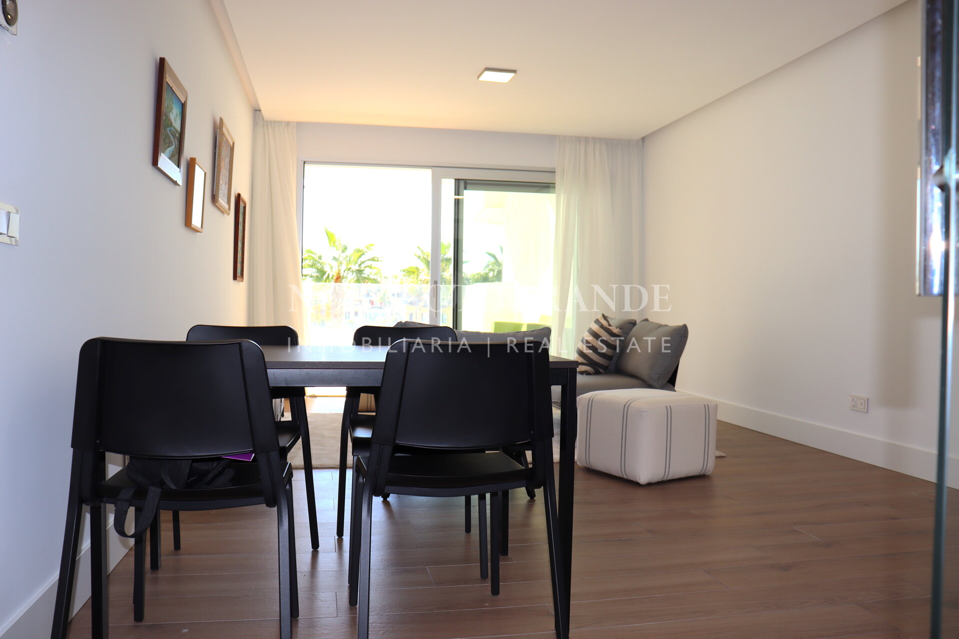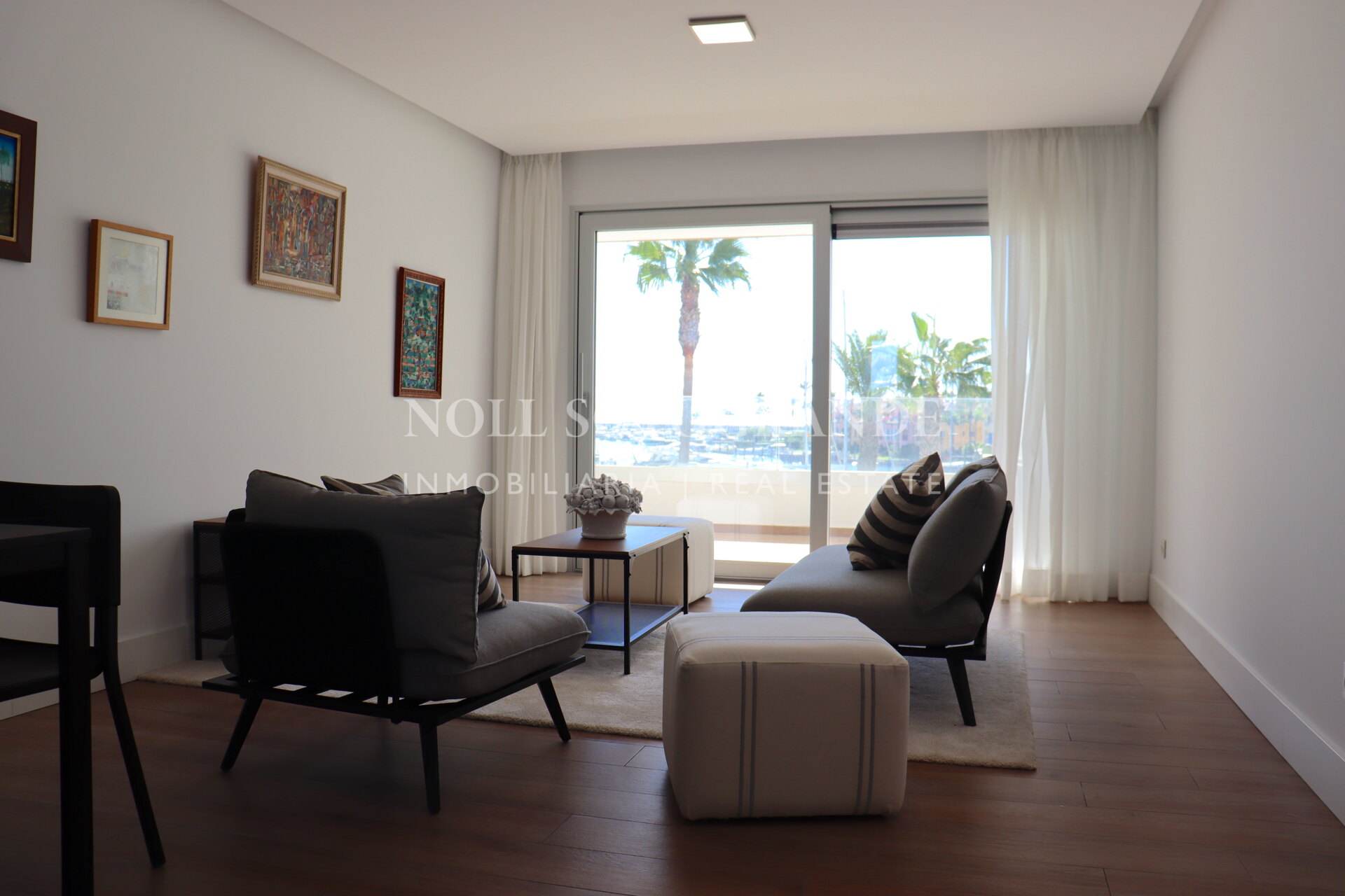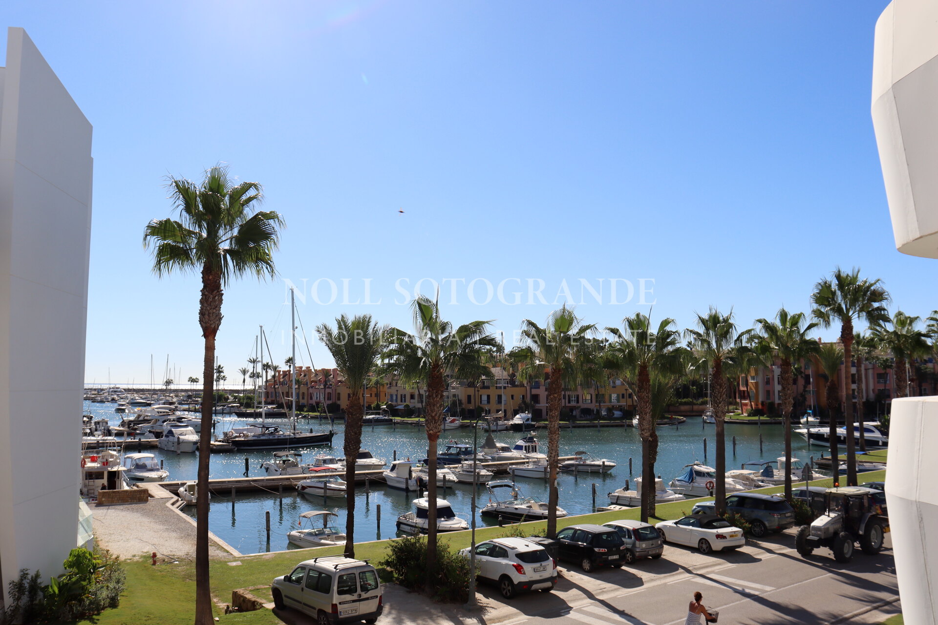 Exklusives Apartment mit zwei Schlafzimmern zur Langzeitmiete in Pier 2 im Yachthafen von Sotogrande mit herrlicher Aussicht. Die Wohnung besteht aus dem Wohnzimmer, voll ausgestatteter moderner Küche, zwei Schlafzimmern und zwei Badezimmern, Einbauschränken, Klimaanlage warm und kalt, Glasfaser-Internetverbindung, und einem Garagenplatz. Die überdachte Terrasse bietet Blick auf den Jachthafen und das Meer.