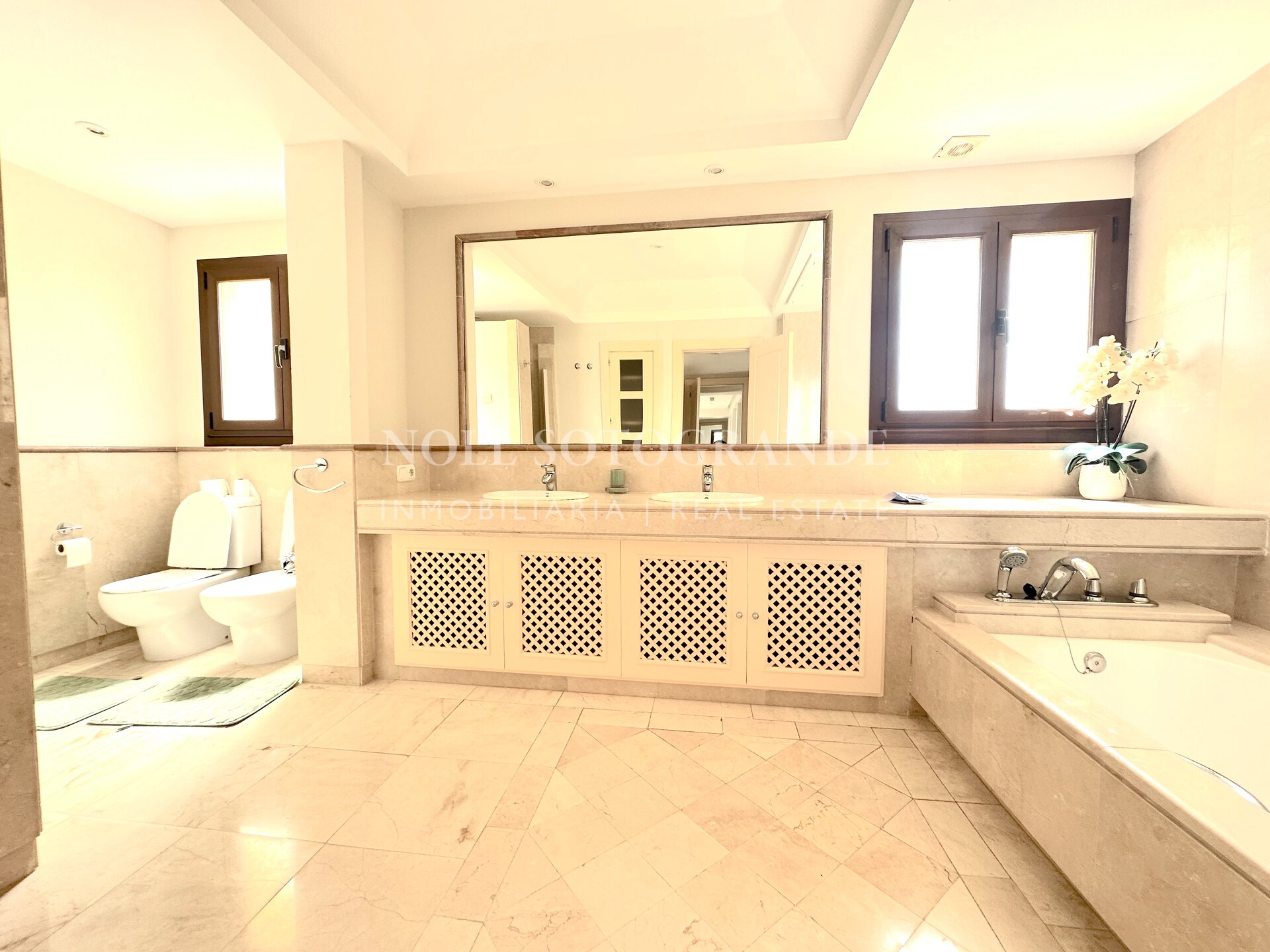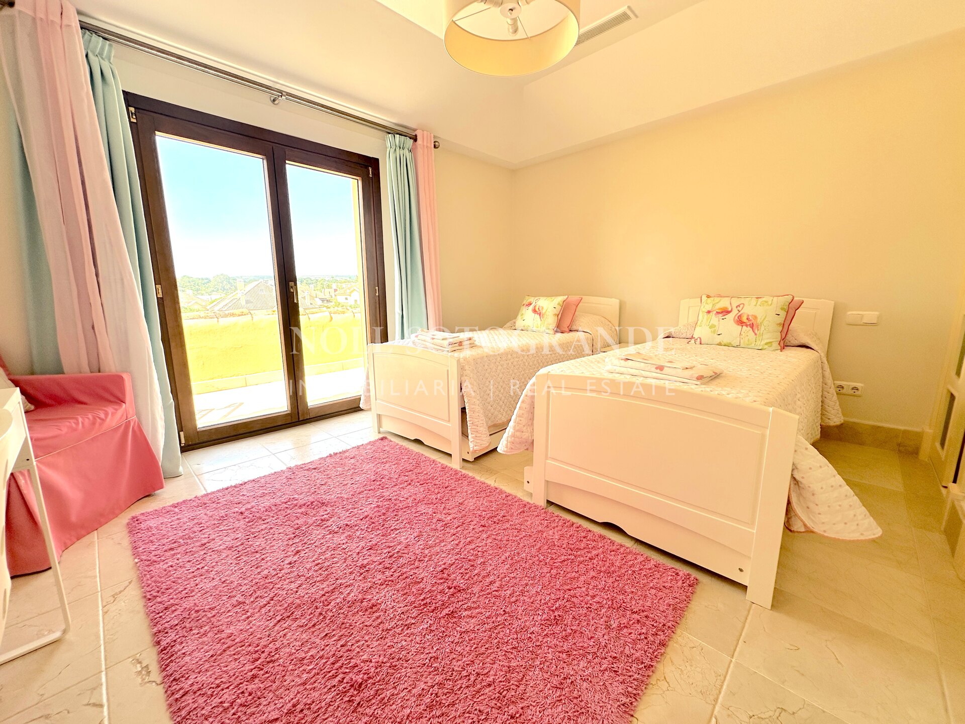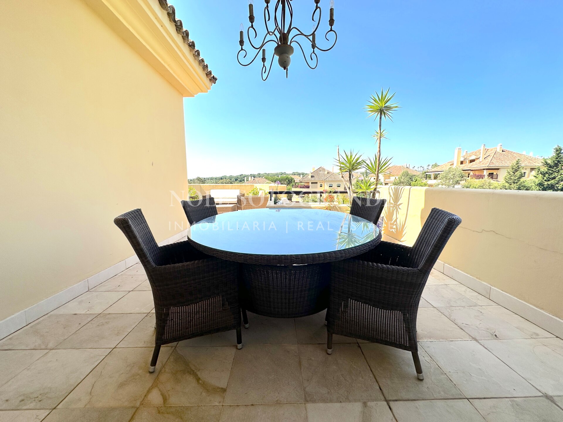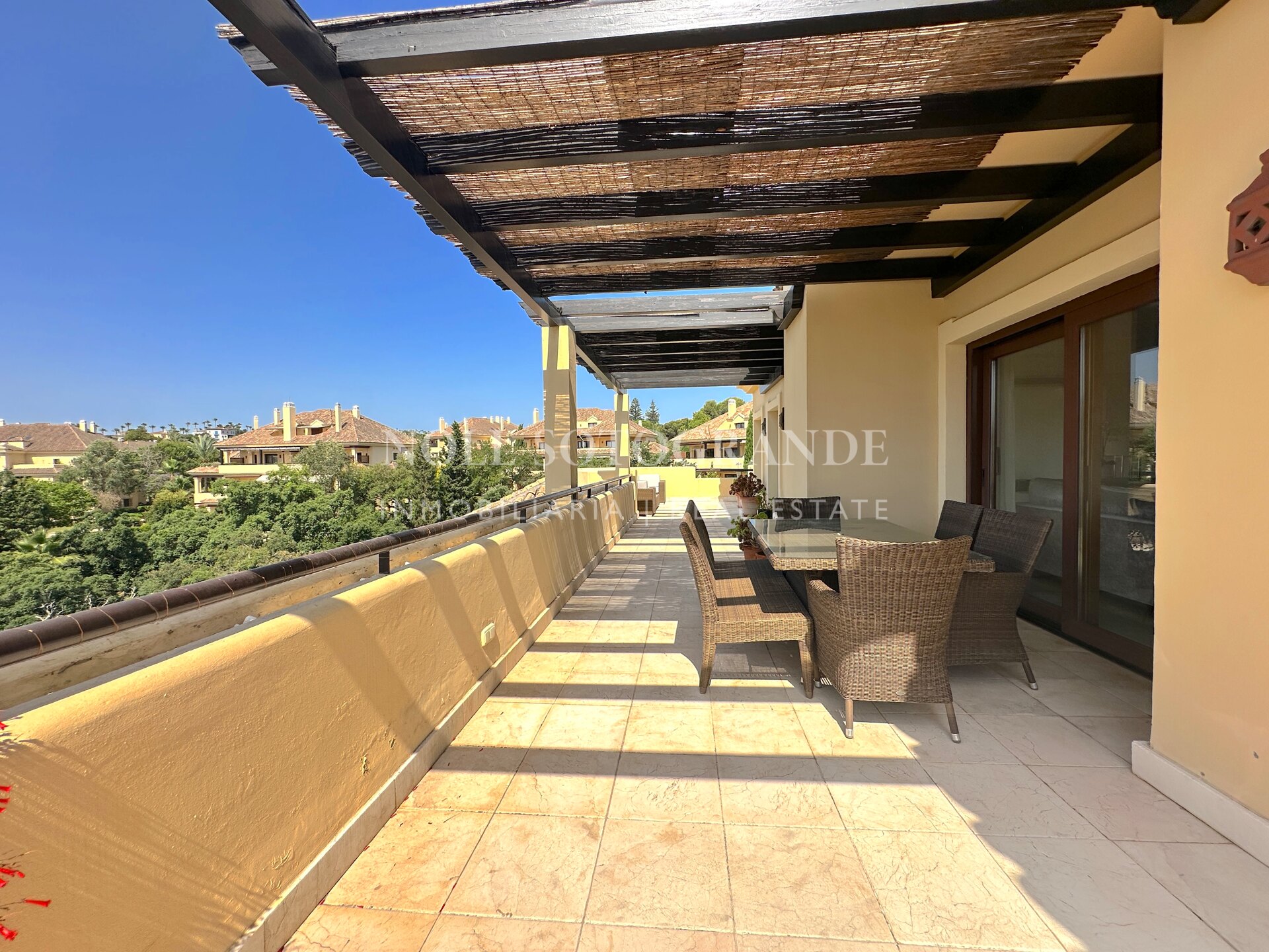 Dieses großzügige Duplex-Penthouse mit vier Schlafzimmern und vier Badezimmern im Valgrande-Komplex bietet eine außergewöhnliche Gelegenheit zur Langzeitmiete in Sotogrande Alto. Es erstreckt sich über das gesamte zweite und dritte Stockwerk und verfügt über eine großzügige Terrasse von ca. 190 m², die einen ruhigen Blick auf die Gärten und den Golfplatz bietet. Gegenüber dem renommierten Real Club de Golf Valderrama gelegen und in einer geschlossenen Wohnanlage mit 24-Stunden-Sicherheitsdienst, vereint diese Immobilie Exklusivität und Komfort auf perfekte Weise. Das Penthouse bietet 530 m² Wohnfläche, ist per Aufzug erreichbar und mit Marmorböden, Panoramafenstern und modernen Details ausgestattet. Geräumige Schlafzimmer mit eigenem Bad und klar abgegrenzte Wohnbereiche sorgen für Privatsphäre und Vielseitigkeit – ideal für Familien und Berufstätige. Für ein angenehmes Raumklima sorgen Klimaanlage und Fußbodenheizung das ganze Jahr über. Die Annehmlichkeiten der Wohnanlage unterstreichen das luxuriöse Wohngefühl: Den Bewohnern stehen Gemeinschaftspools, gepflegte Gärten, Spa, Fitnessraum und eine Golf-Übungsanlage zur Verfügung. Ein Tiefgaragenstellplatz sowie ein Abstellraum sind für Komfort und Sicherheit inbegriffen. Dieses Duplex-Penthouse eignet sich ideal für alle, die einen exklusiven, ruhigen Lebensstil in der Nähe der besten Freizeitangebote von Sotogrande suchen.