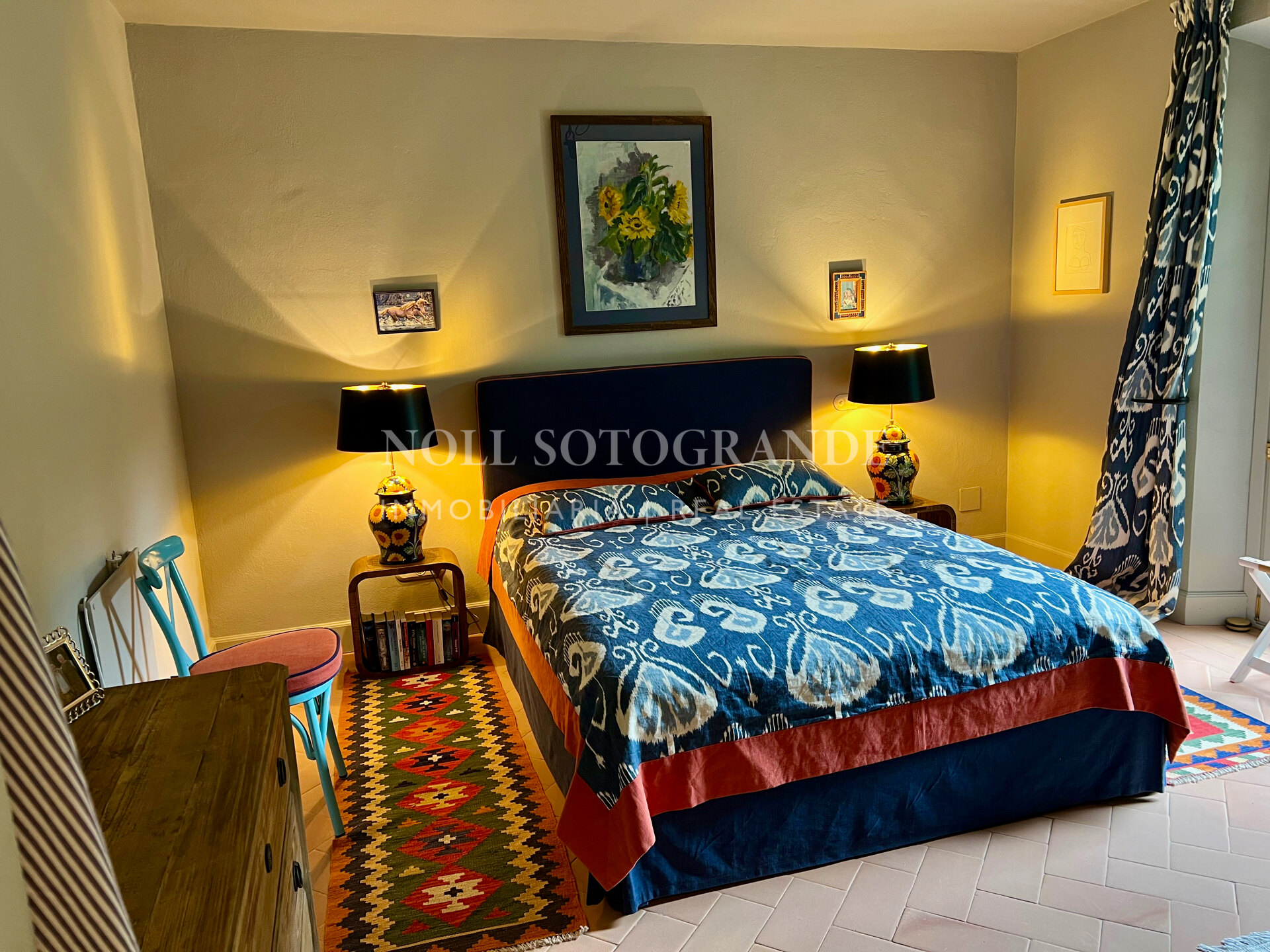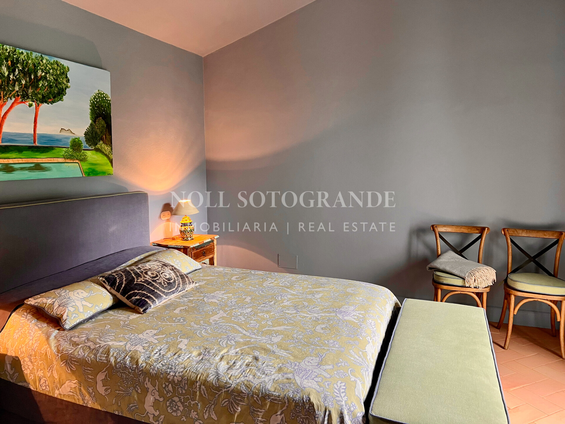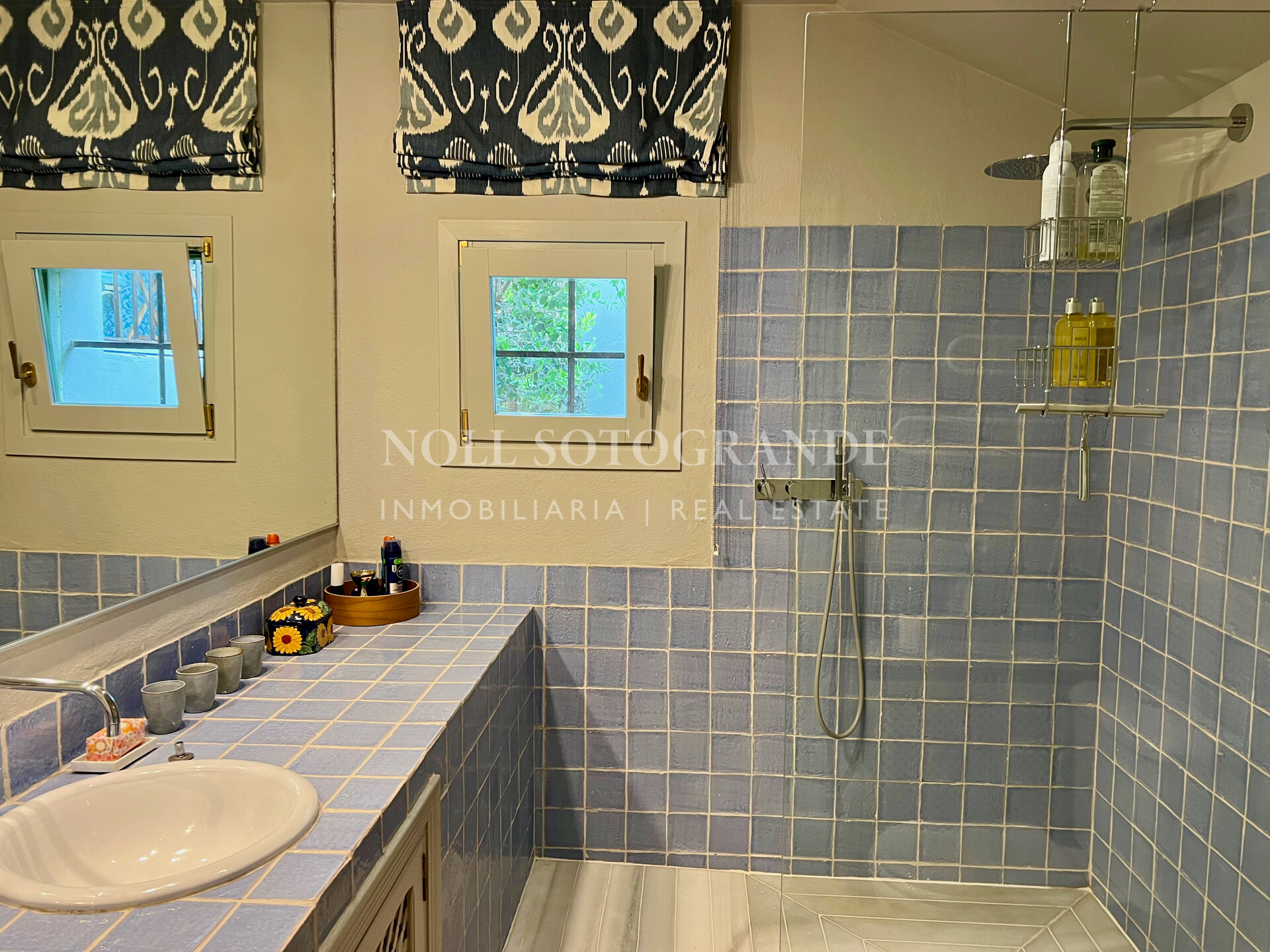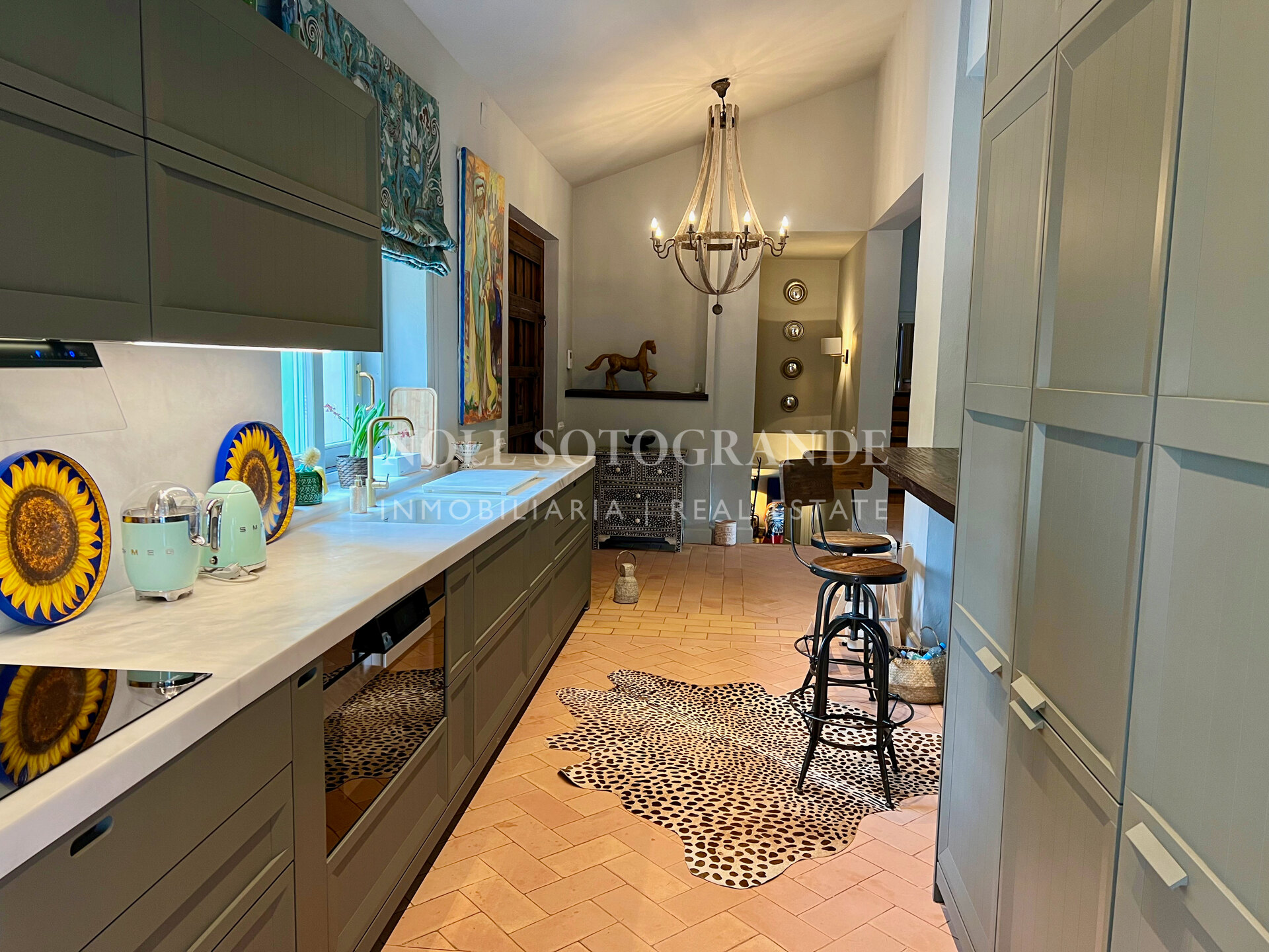 Diese entzückende, charaktervolle und makellose Villa steht nun anspruchsvollen Mietern zur Verfügung. Sie liegt nur wenige Minuten von Valderrama, La Reserva oder Real Club Sotogrande entfernt, und bietet seinen Bewohnern absolute Privatsphäre. Der Wohnbereich mit Wohnzimmer, Esszimmer inklusive der neuen eleganten Küche ist grosszügig und gleichzeitig unheimlich wohnlich gestaltet. Die Schlafzimmer verteilen sich über mehrere Halbetagen um seinen Bewohnern ein Maximum an Privatsphäre zu bieten. Auch die mit Mikrozement ausgestatteten Bäder präsentieren sich modern, elegant und zeitlos. Das Haus ist mit Zentralheizung ausgestattet und verfügt über Klimaanlage in drei Schlafzimmern. Die Terrasse beinhaltet eine Bar, Essbereich, sowie gemütliche Sitzbereiche um die warmen Monate in den Aussenbereichen des Hauses geniessen zu können.