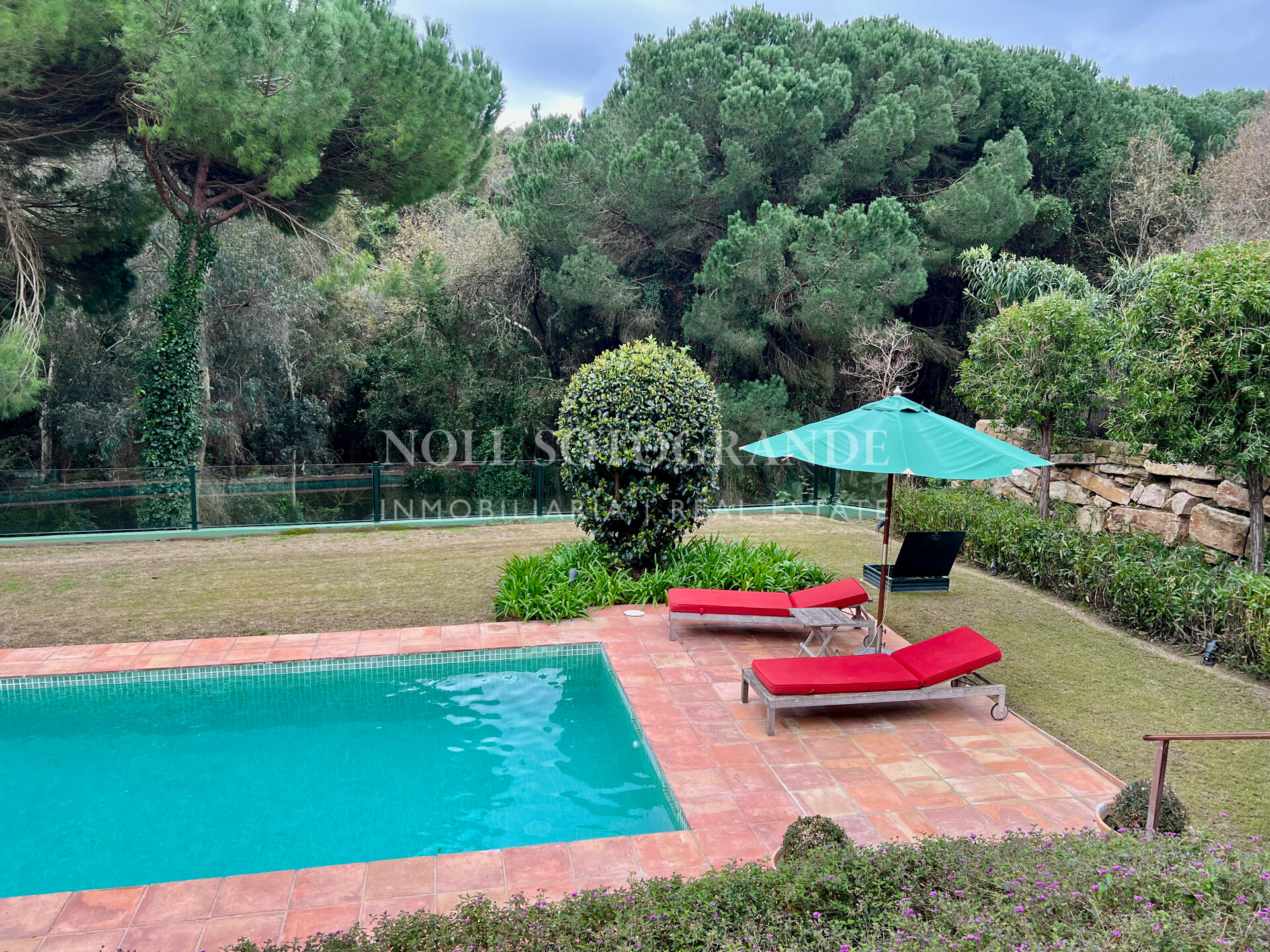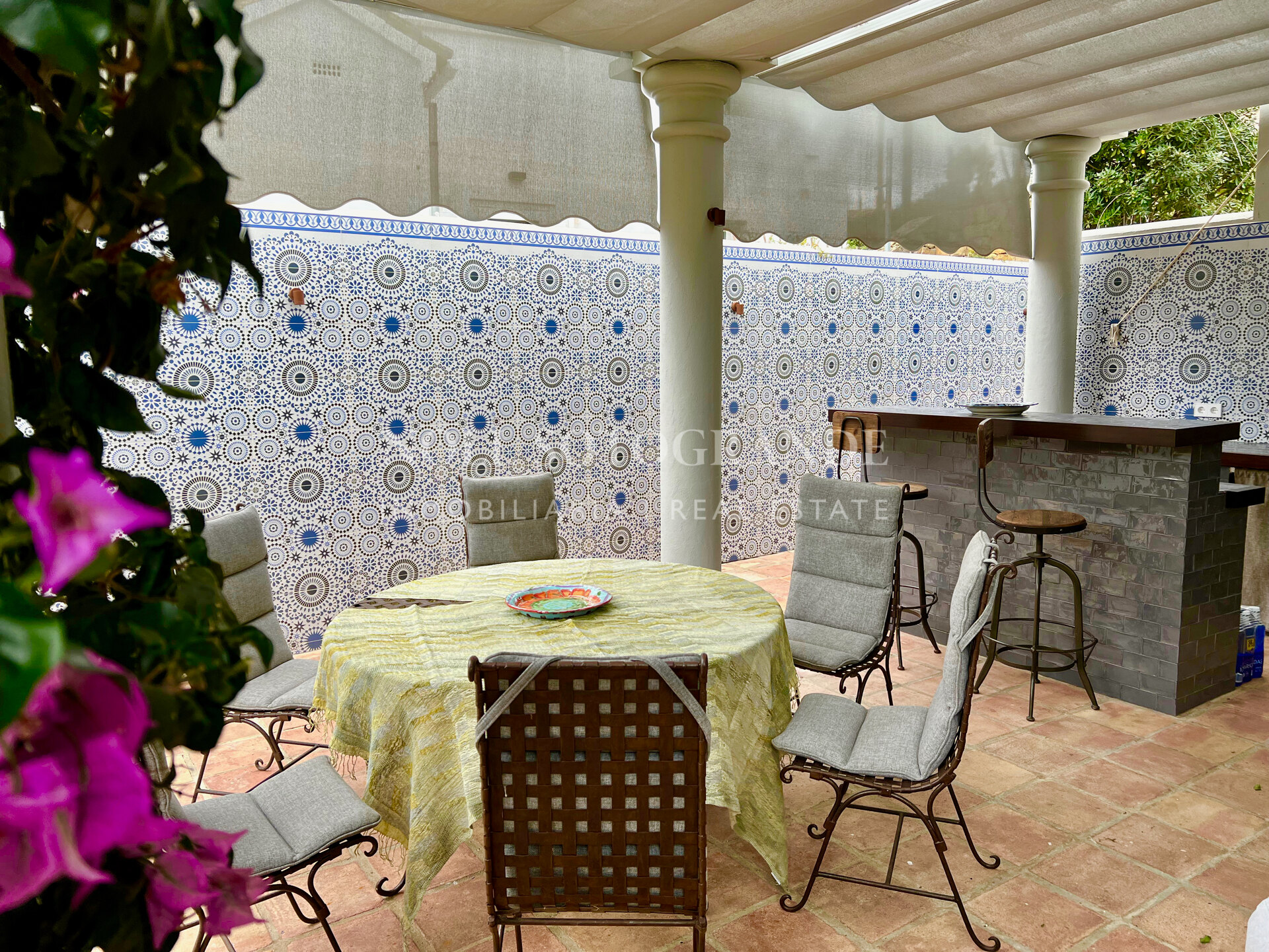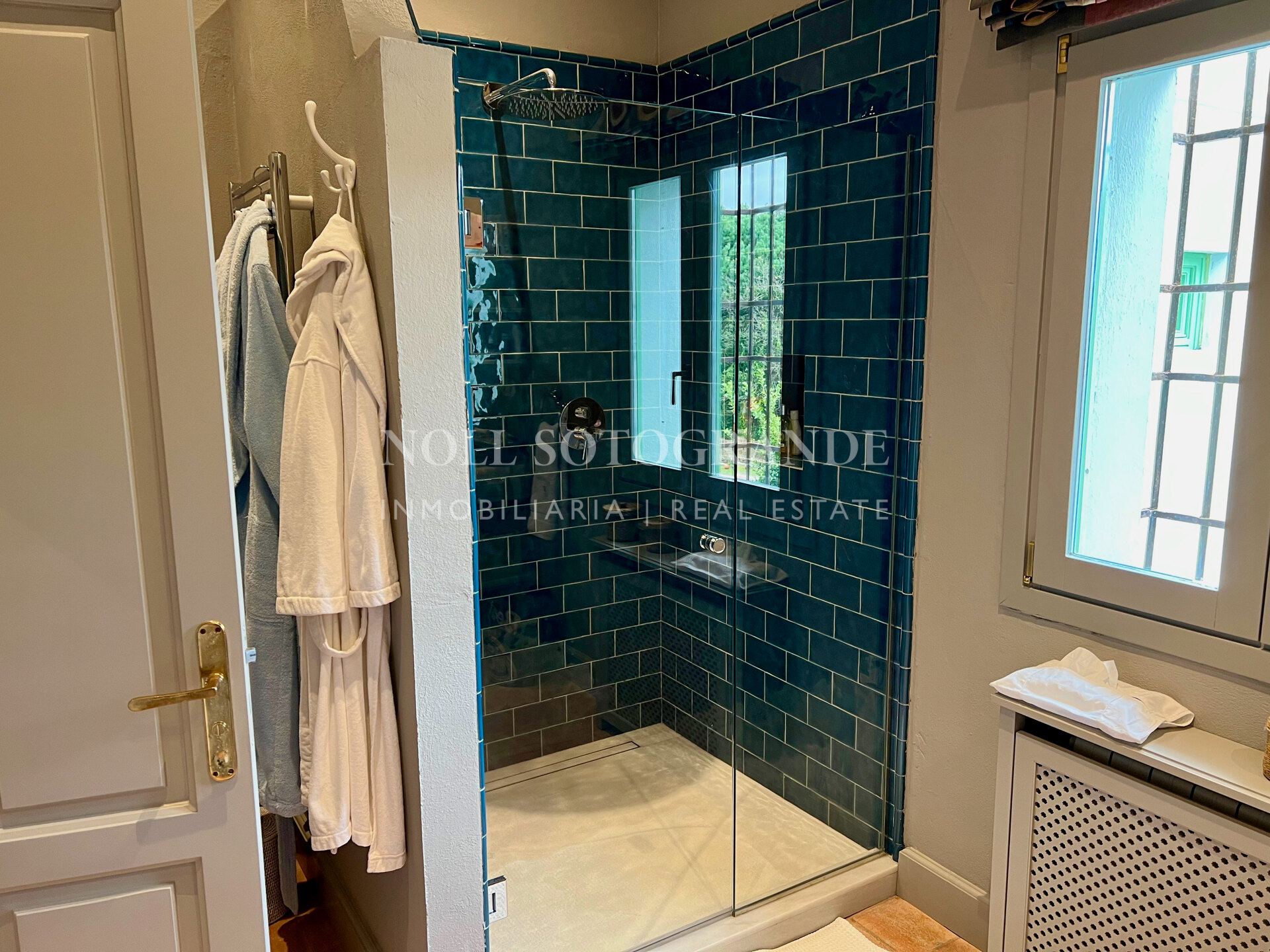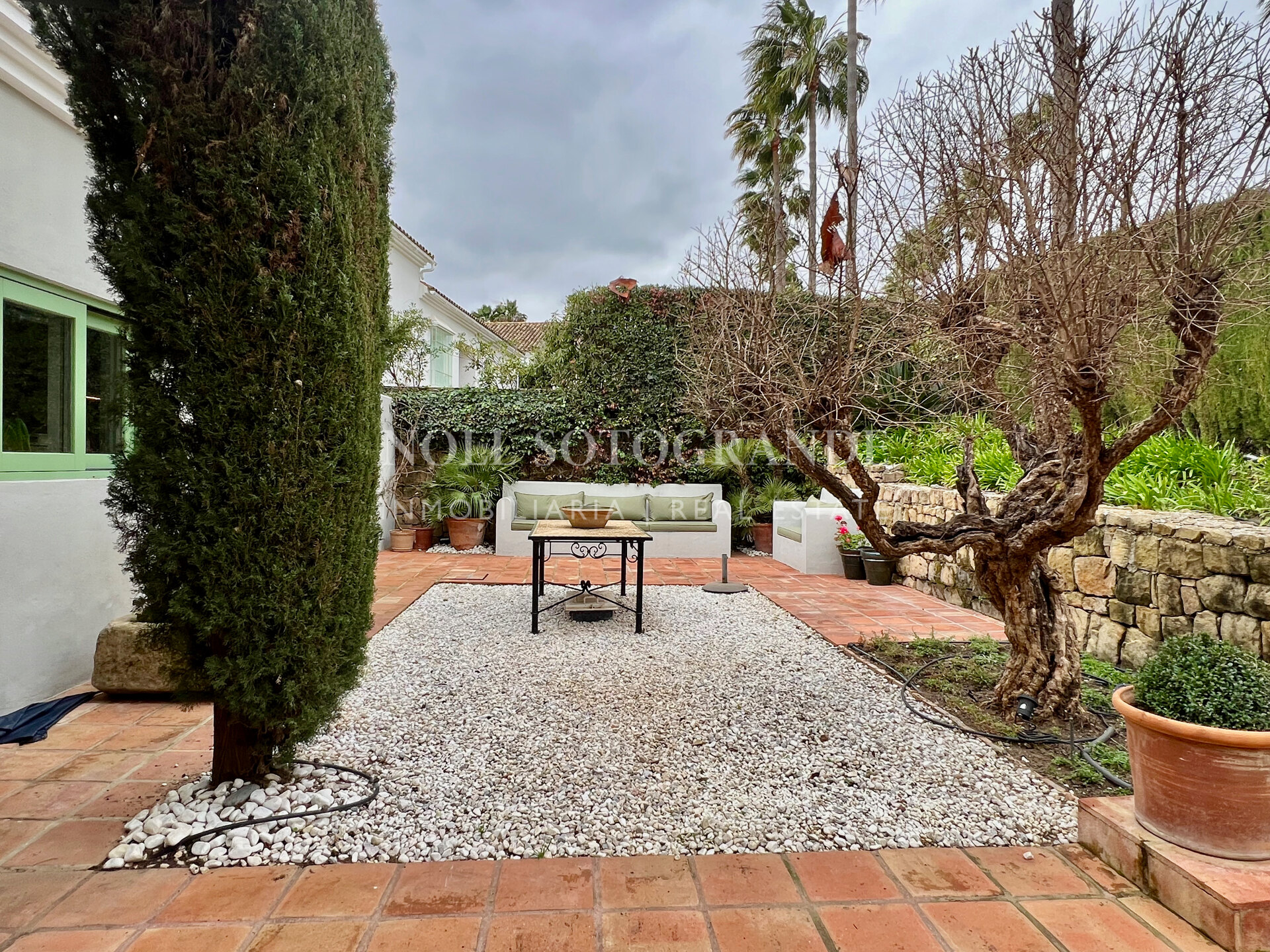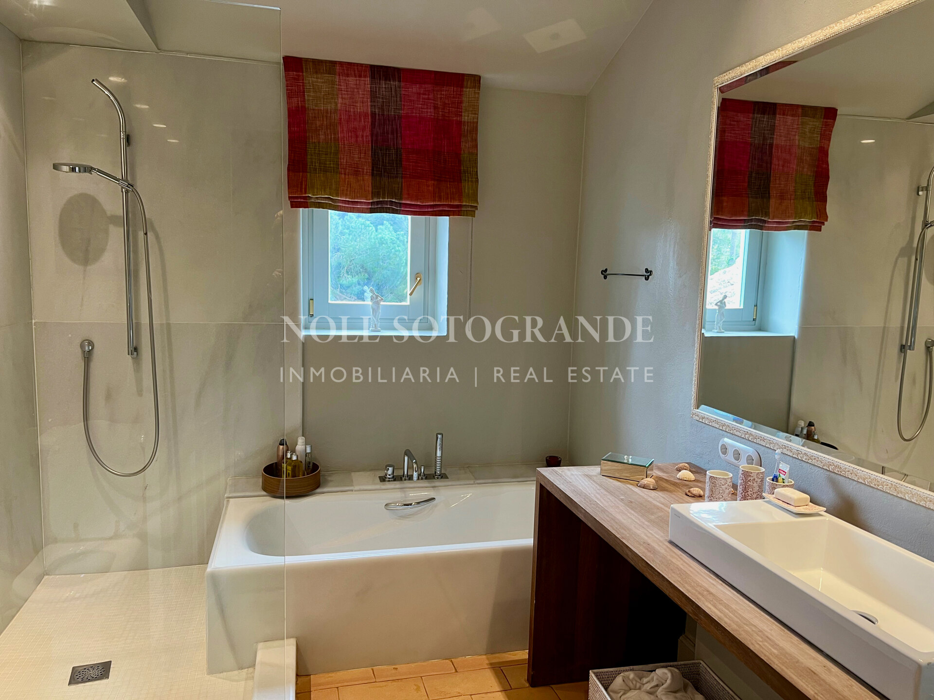 Diese entzückende, charaktervolle und makellose Villa steht nun anspruchsvollen Mietern zur Verfügung. Sie liegt nur wenige Minuten von Valderrama, La Reserva oder Real Club Sotogrande entfernt, und bietet seinen Bewohnern absolute Privatsphäre. Der Wohnbereich mit Wohnzimmer, Esszimmer inklusive der neuen eleganten Küche ist grosszügig und gleichzeitig unheimlich wohnlich gestaltet. Die Schlafzimmer verteilen sich über mehrere Halbetagen um seinen Bewohnern ein Maximum an Privatsphäre zu bieten. Auch die mit Mikrozement ausgestatteten Bäder präsentieren sich modern, elegant und zeitlos. Das Haus ist mit Zentralheizung ausgestattet und verfügt über Klimaanlage in drei Schlafzimmern. Die Terrasse beinhaltet eine Bar, Essbereich, sowie gemütliche Sitzbereiche um die warmen Monate in den Aussenbereichen des Hauses geniessen zu können.