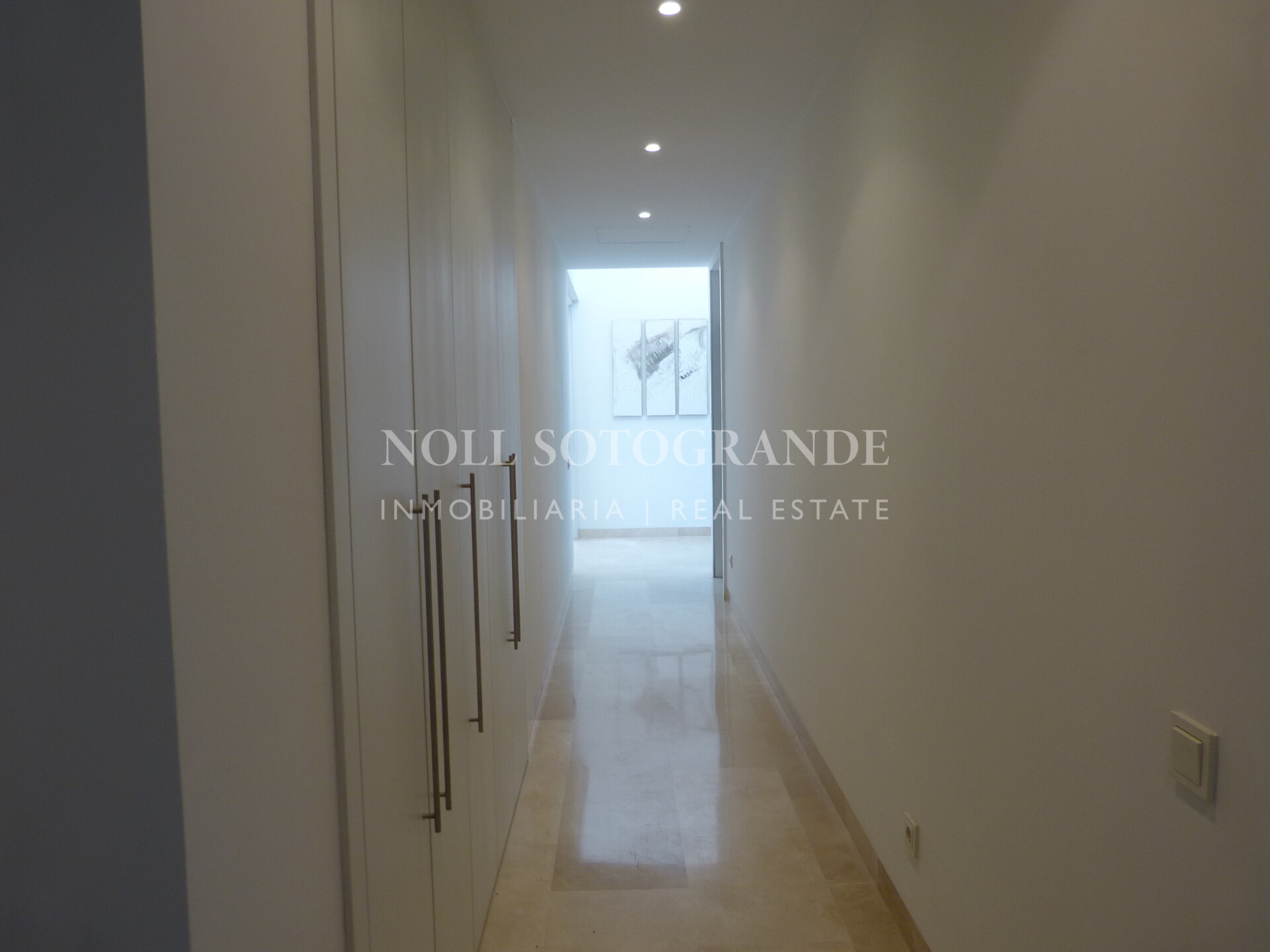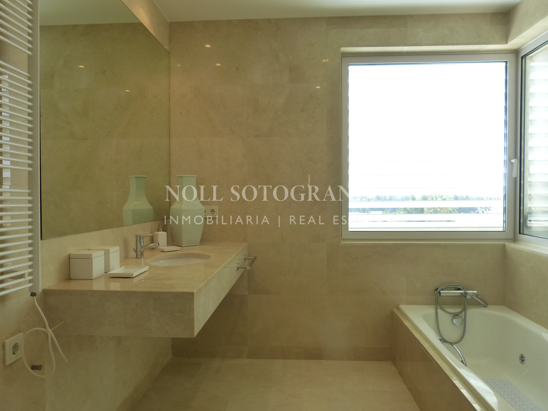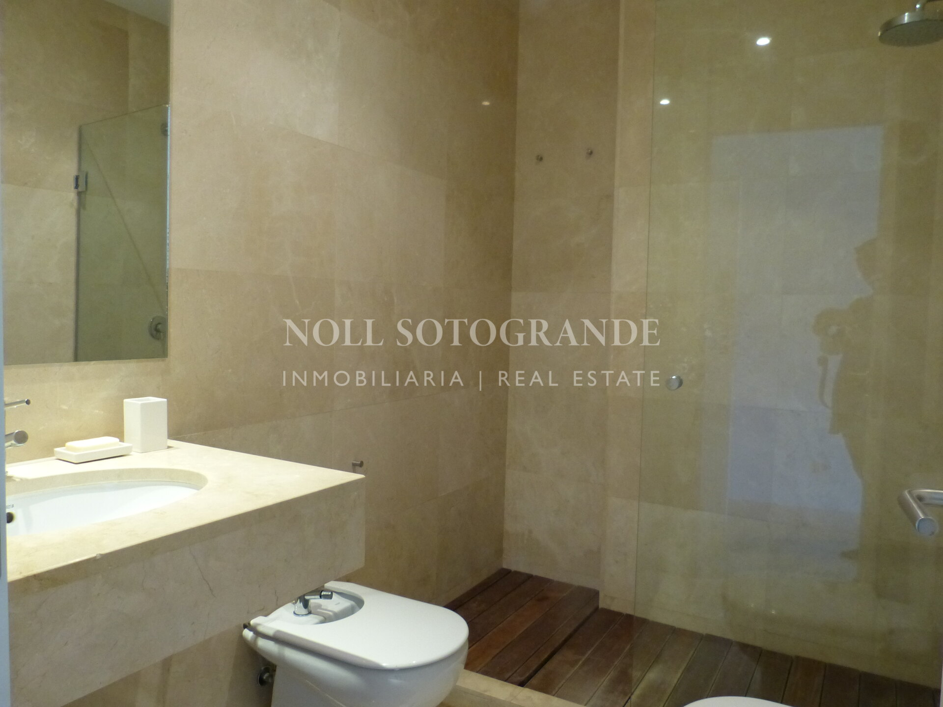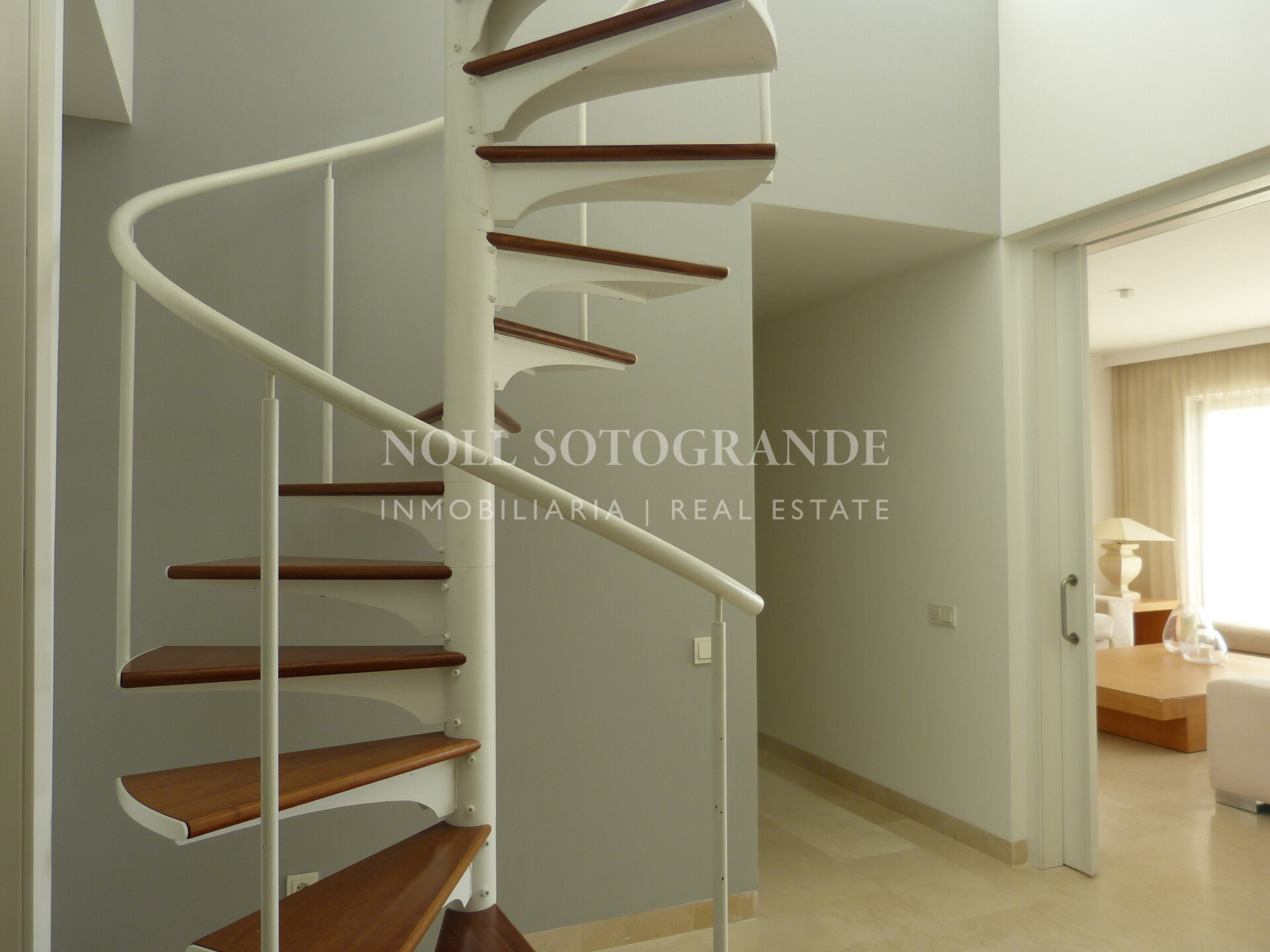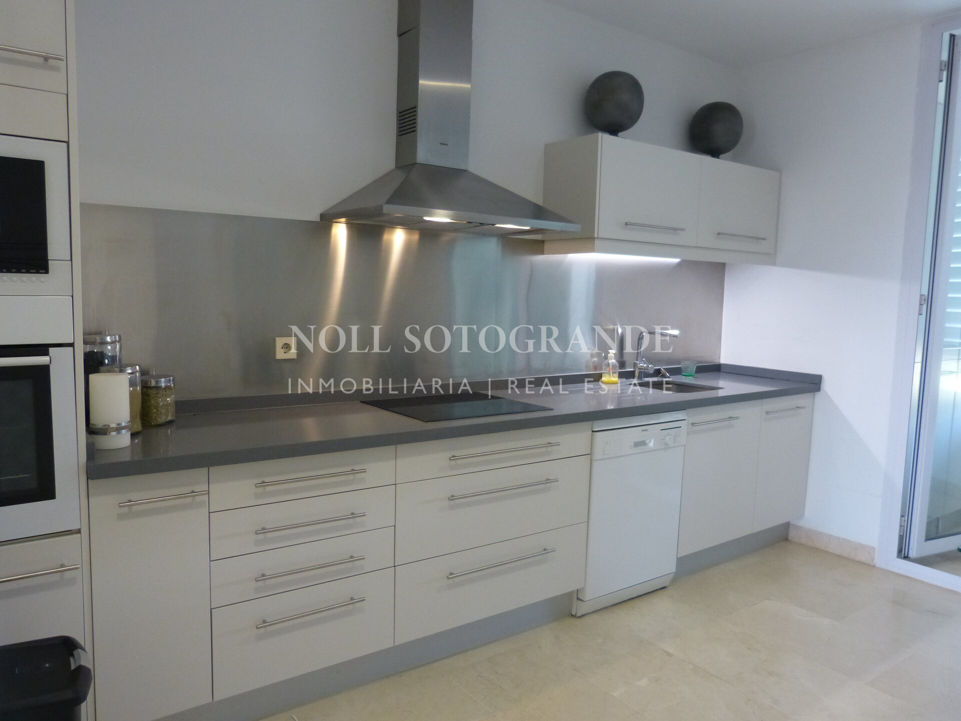 Dieses lichtdurchflutete Penthouse ist sehr gepflegt und schön eingerichtet. Die Küche ist komplett ausgestattet und neben der Küche befindet sich ein separater Hauswirtschaftsraum mit Waschmaschine, Trockner und Waschbecken. Der geräumige Wohn- und Essbereich bietet Zugang zu einer Terrasse mit Sitzbereich sowie Sonnenliegen. Das Apartment verfügt über vier Schlafzimmer mit jeweils eigenem Bad, verschiedenen Einbauschränken und einer Gästetoilette. Eine Wendeltreppe führt zur großen Dachterrasse mit Whirlpool und Blick auf das Meer. Der Apartmentkomplex verfügt über einen 24-Stunden-Sicherheitsdienst, einen Außenpool, ein Gym, Paddle-Tennisplatz, Sauna, Dampfbad und einen Spielbereich für Kinder.