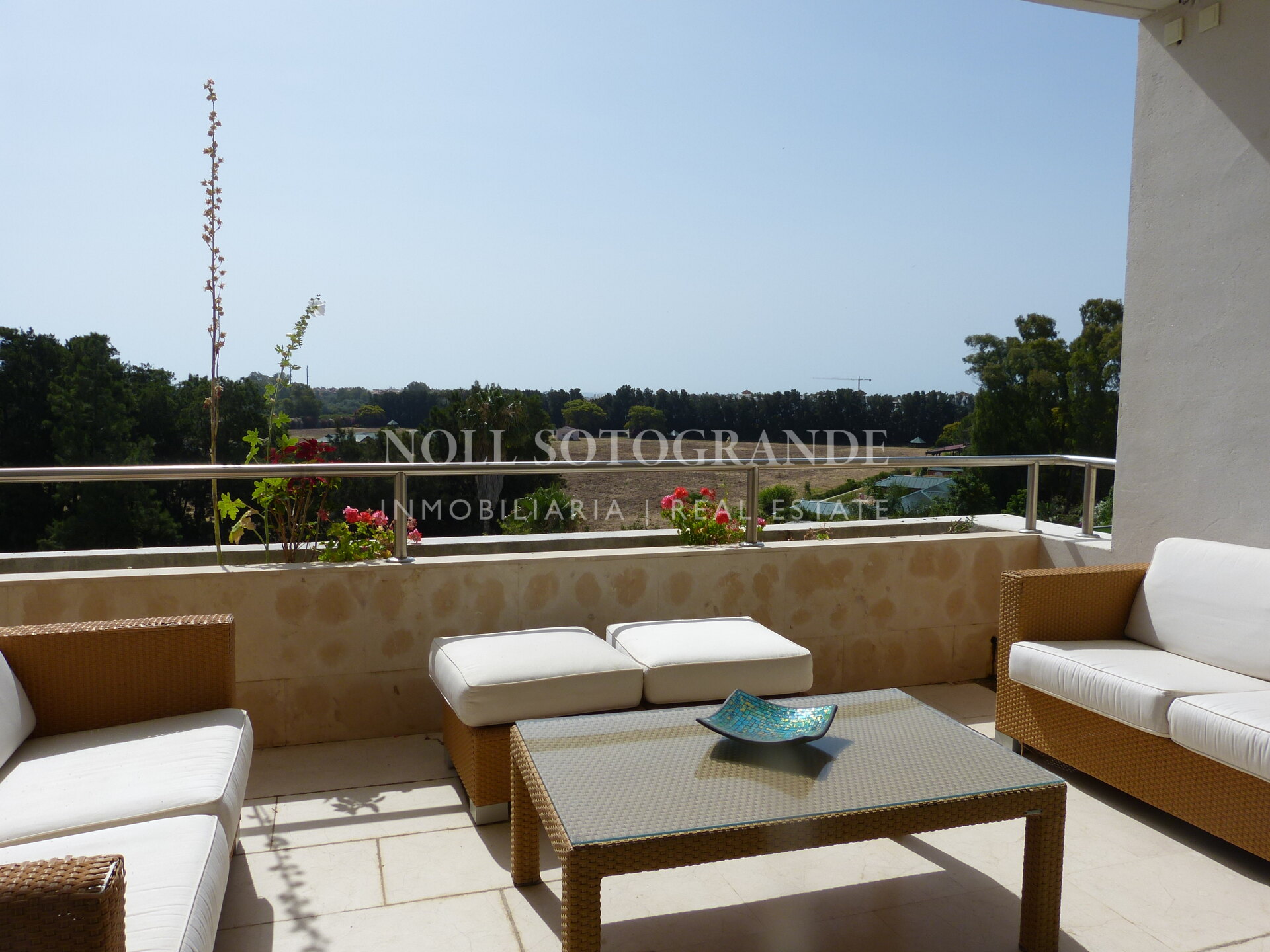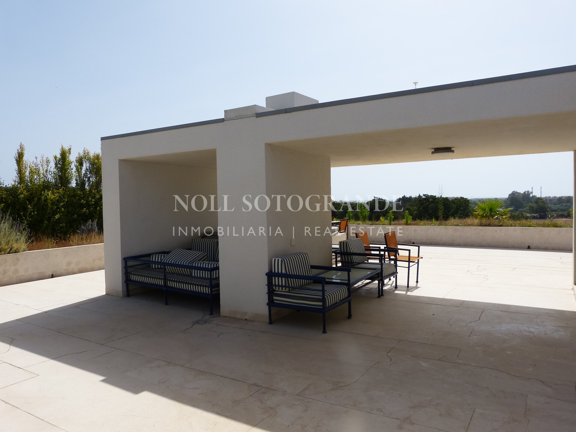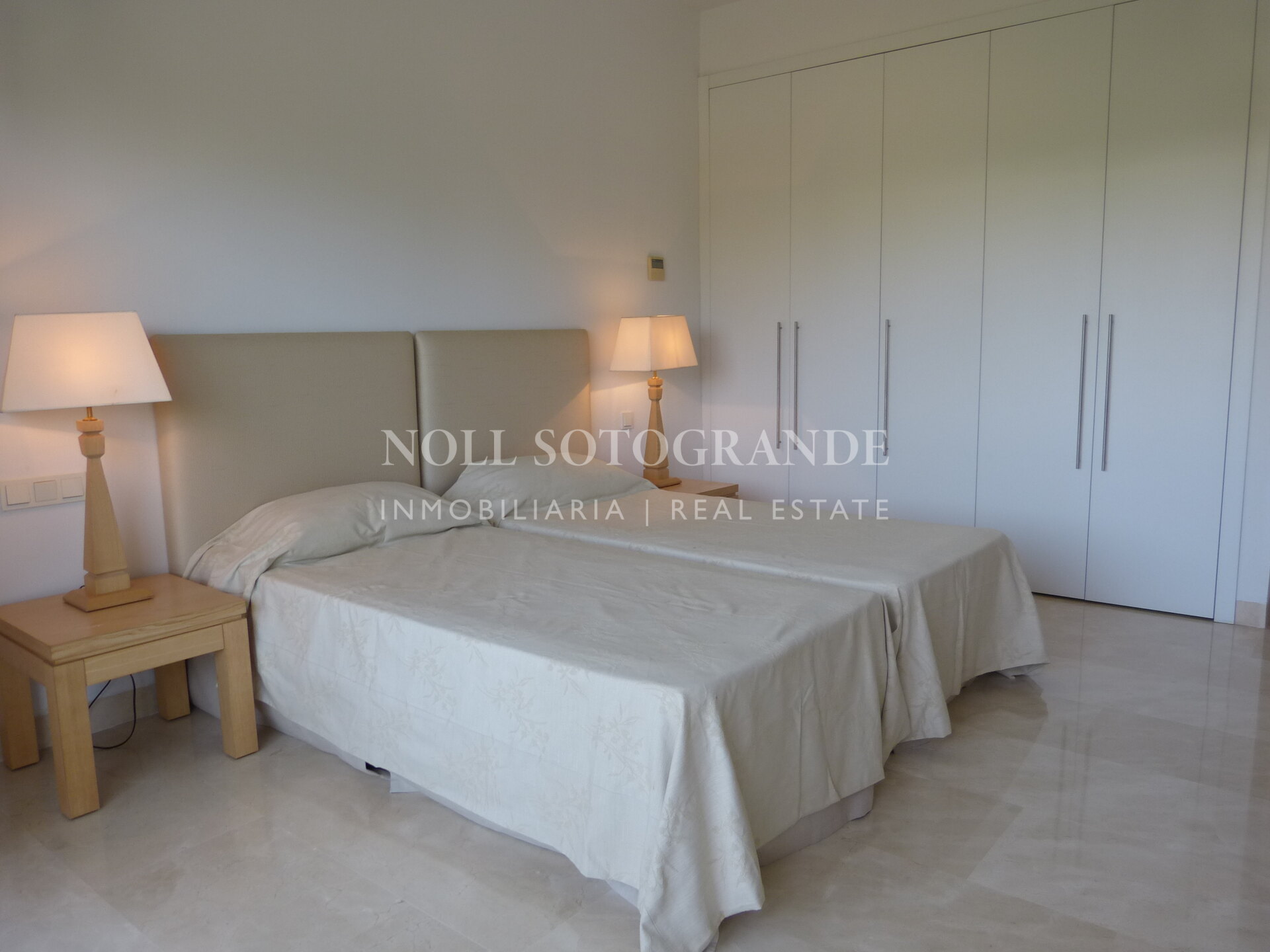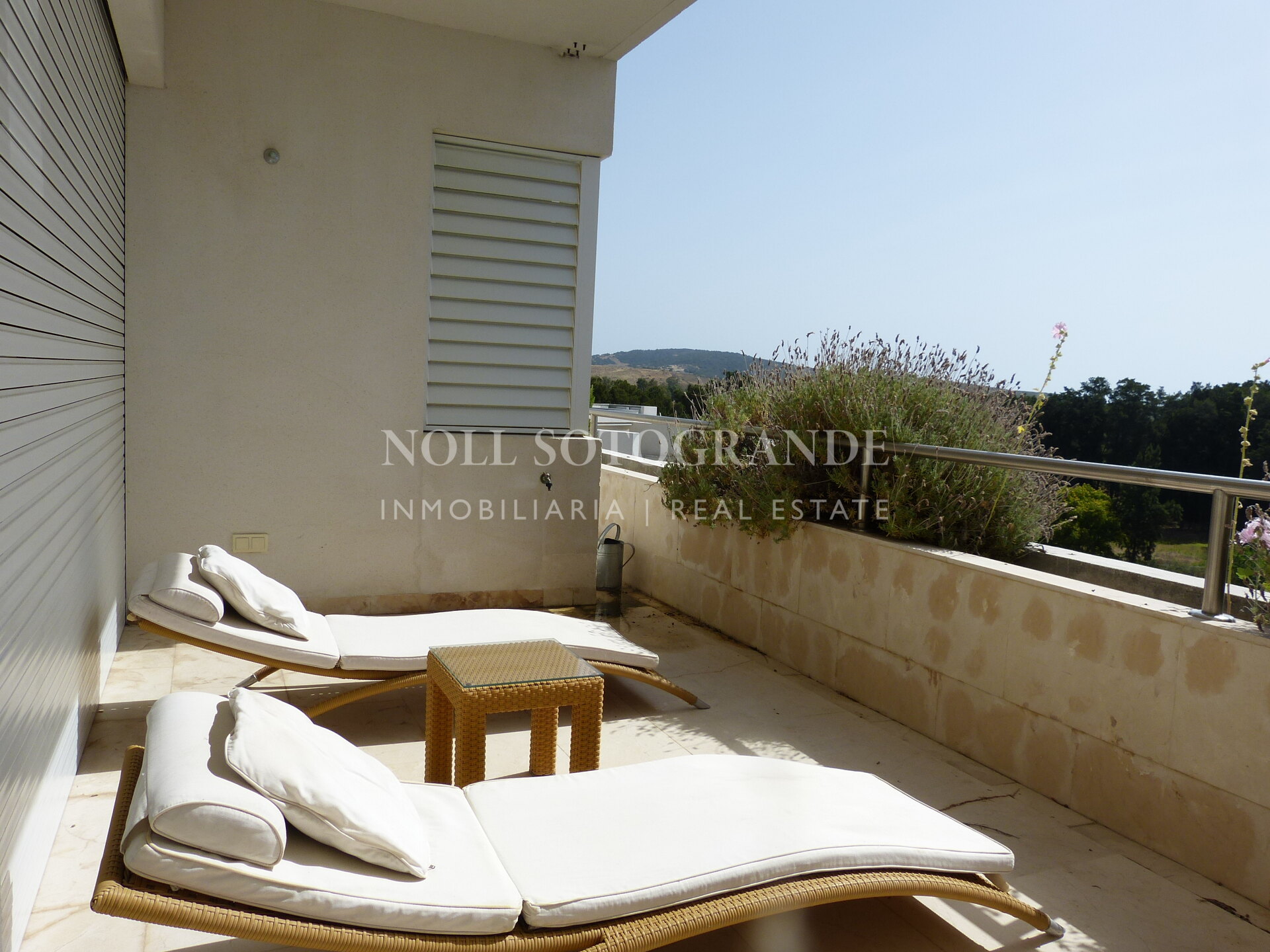 Dieses lichtdurchflutete Penthouse ist sehr gepflegt und schön eingerichtet. Die Küche ist komplett ausgestattet und neben der Küche befindet sich ein separater Hauswirtschaftsraum mit Waschmaschine, Trockner und Waschbecken. Der geräumige Wohn- und Essbereich bietet Zugang zu einer Terrasse mit Sitzbereich sowie Sonnenliegen. Das Apartment verfügt über vier Schlafzimmer mit jeweils eigenem Bad, verschiedenen Einbauschränken und einer Gästetoilette. Eine Wendeltreppe führt zur großen Dachterrasse mit Whirlpool und Blick auf das Meer. Der Apartmentkomplex verfügt über einen 24-Stunden-Sicherheitsdienst, einen Außenpool, ein Gym, Paddle-Tennisplatz, Sauna, Dampfbad und einen Spielbereich für Kinder.