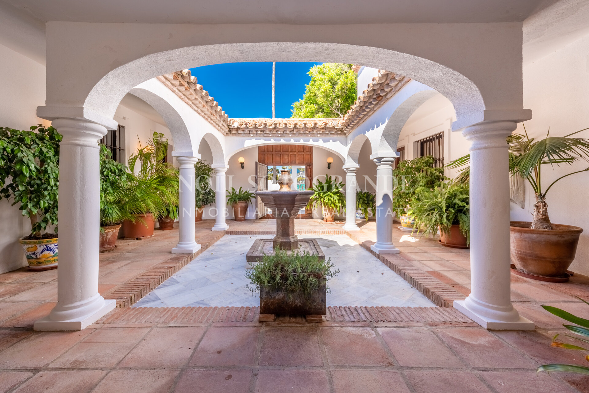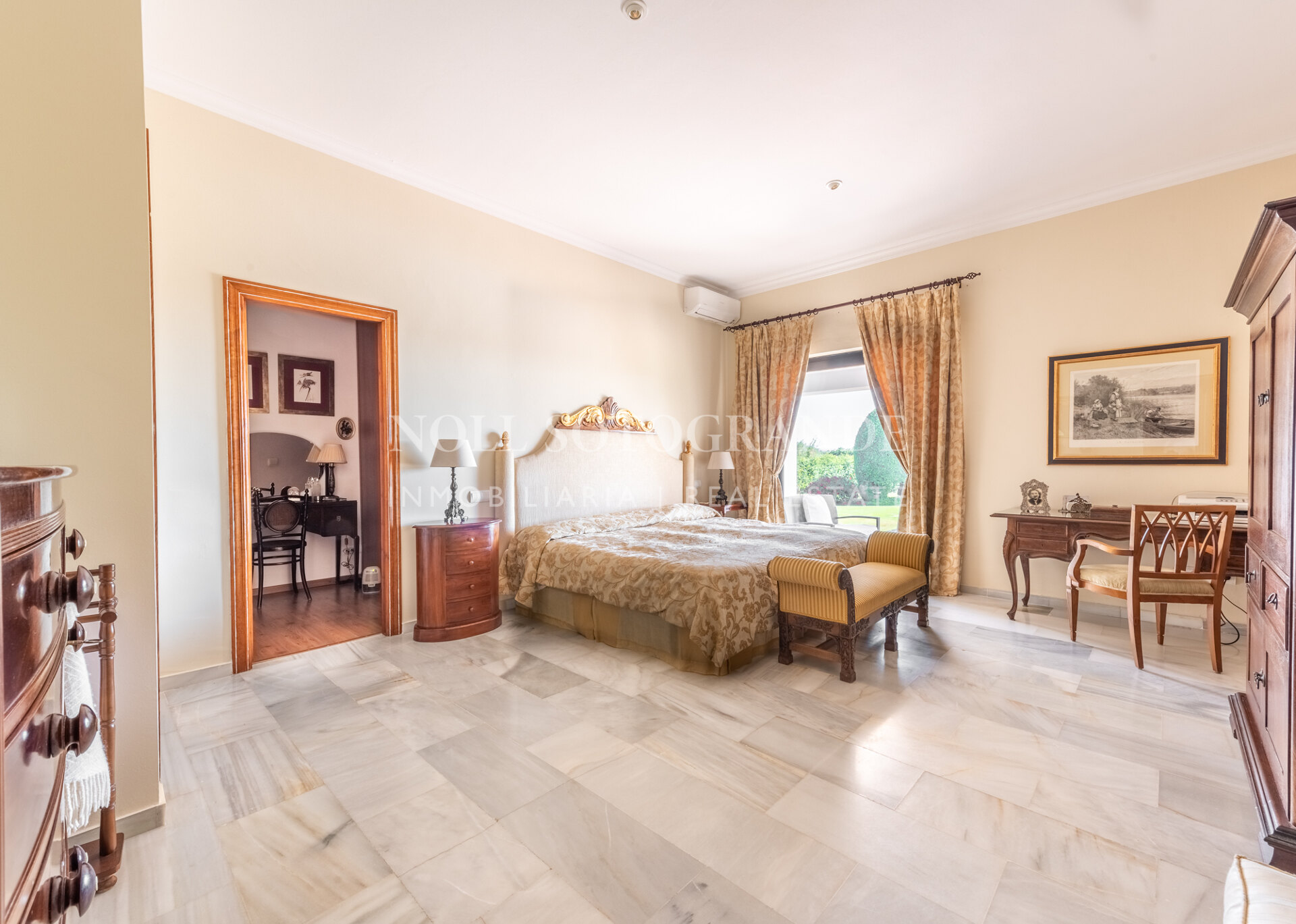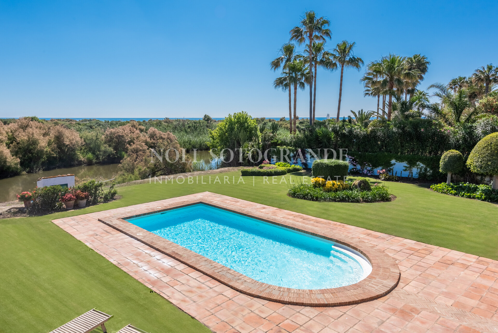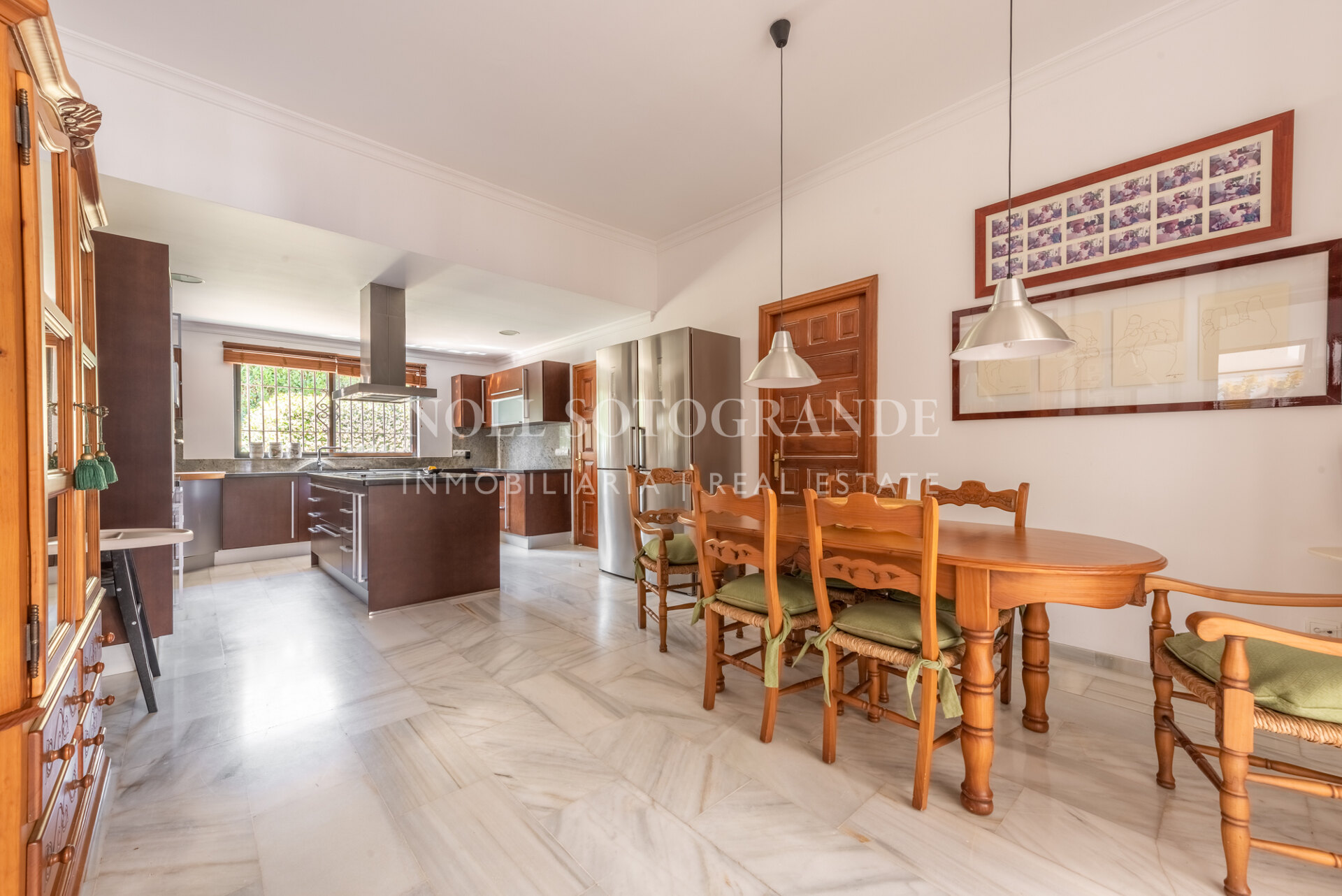 Entdecken Sie diese geräumige 8-Schlafzimmer-Villa im exklusiven Kings & Queens-Gebiet von Sotogrande Costa, die zur vorübergehenden Vermietung zur Verfügung steht. Ideal gelegen, nur wenige Schritte vom Strand entfernt und in der Nähe des renommierten Real Club de Golf Sotogrande, von Strandclubs und Padel-Einrichtungen, bietet diese Immobilie sowohl Luxus als auch Komfort. Eingebettet auf einem flachen Grundstück mit einem privaten Garten, der an das ruhige Naturschutzgebiet am Mündungsgebiet des Río Guadiaro grenzt, ist die Villa perfekt für Familien oder Gruppen, die einen friedlichen Rückzugsort suchen. Die Villa verfügt über großzügige Innenräume, darunter acht komfortable Schlafzimmer, die ausreichend Platz für Gäste bieten. Für ganzjährigen Komfort konzipiert, ist sie mit Fußbodenheizung und Klimaanlage in allen Schlafzimmern ausgestattet. Das Layout verbindet harmonisch Innen- und Außenwohnen, sodass Gäste den üppigen Garten genießen können, der sich ideal zum Entspannen oder für gesellige Zusammenkünfte eignet.