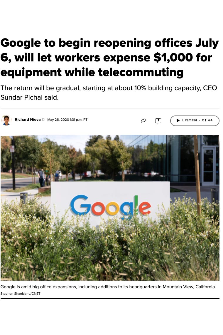 A medida que la pandemia nos ha atrapado a todos, hemos estado escuchando y leyendo sobre la llamada "nueva normalidad". La realidad es que nadie sabe aún qué significa esto y cómo puede ser. Por lo tanto, me animé mucho el otro día cuando leí un artículo que destacaba que las compañías que adoptaron la tecnología hace 20 años reemplazaron a todas las compañías que no lo hicieron. Y que las empresas que adoptan el trabajo remoto reemplazarán a todas las empresas que no lo hagan en 20 años.