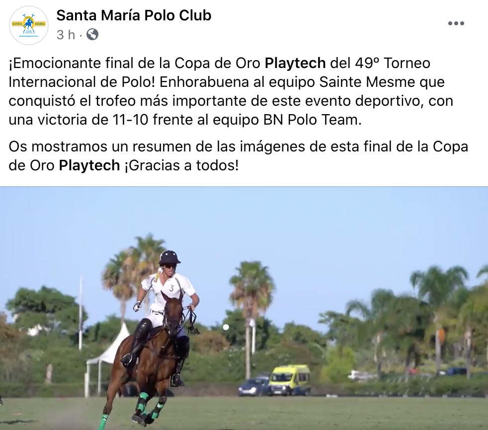 ¡Enhorabuena al equipo francés Sainte Mesme! Ganador de la Copa de Oro Playtech del 49 Torneo Internacional MANSION de Polo. El equipo victorioso derrotó a su contrincante pakistaní BN Polo Team, 11 a 10 en la gran final del domingo 30 de Agosto en Santa María Polo Club de Sotogrande.