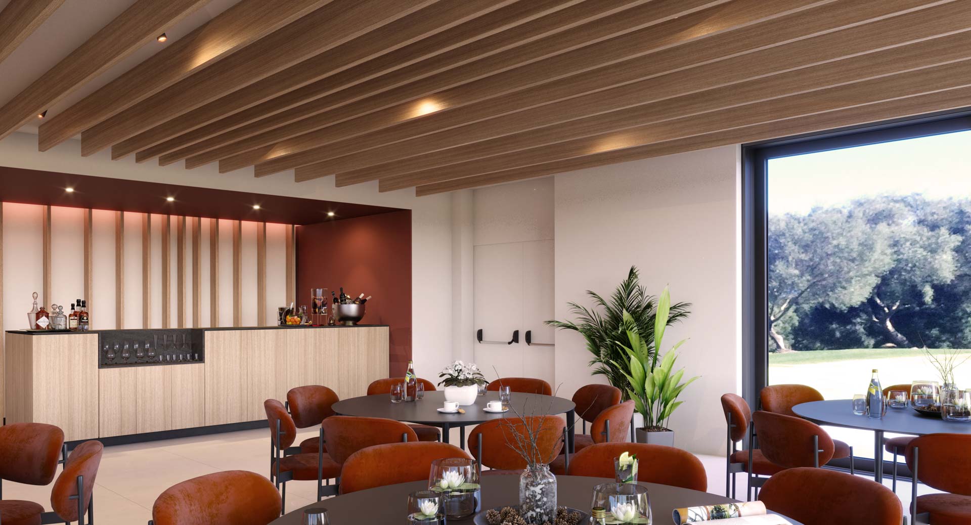 - SOCIAL-CLUB El lugar favorito de los lugareños para reunirse y disfrutar de las vistas panorámicas sobre el campo de golf de 27 hoyos.