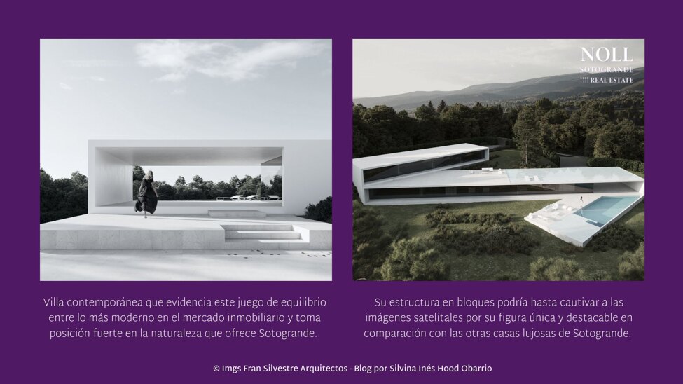 "Esta villa muy contemporánea de Fran Silvestre, el destacado joven arquitecto de Valencia, pronto se construirá en la prestigiosa zona de Altos de Valderrama de Sotogrande." Destaca Charles Gubbins