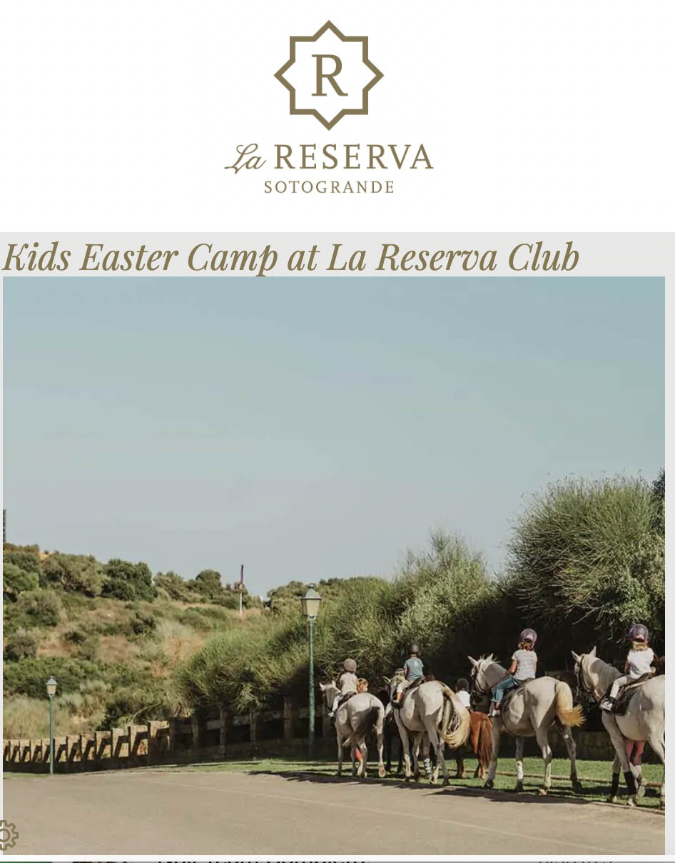 Semana Santa en La Reserva Sotogrande para niños: actividades durante toda la semana, desde golf y tenis hasta equitación y deportes acuáticos, todo dirigido por un fantástico equipo de profesores. Más detalles aquí: Campamento de Semana Santa en La Reserva Sotogrande y más aquí. Eventos de abril para adultos y niños, haga clic aquí.