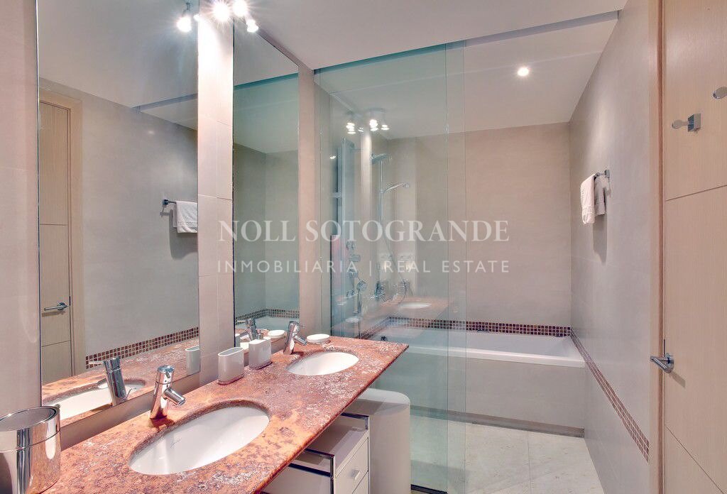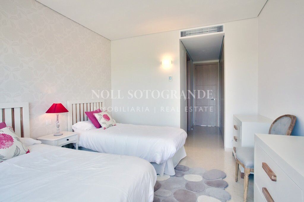 Este gran apartamento de dos dormitorios se encuentra en Ribera del Marlin, el mejor desarrollo de apartamentos en el puerto deportivo de Sotogrande. Se encuentra a poca distancia de la playa y del puerto de Sotogrande con todos sus restaurantes, bares y tiendas. Ribera del Marlin ofrece una gran piscina cubierta, jacuzzi, sauna, baño de vapor, gimnasio, así como varias piscinas al aire libre y servicio de seguridad las 24 horas. El apartamento está ubicado en el cuarto piso del edificio y consta de 2 dormitorios con baños en suite, un aseo para invitados, una cocina totalmente amueblada y equipada y un lavadero, una sala de estar y comedor que se abre a la terraza cubierta con vistas al Puerto deportivo de Sotogrande. El apartamento está equipado con aire acondicionado frío / calor y calefacción por suelo radiante en los baños. Una plaza de garaje subterráneo y un trastero están incluidos en el precio. La fibra óptica está en el apartamento.