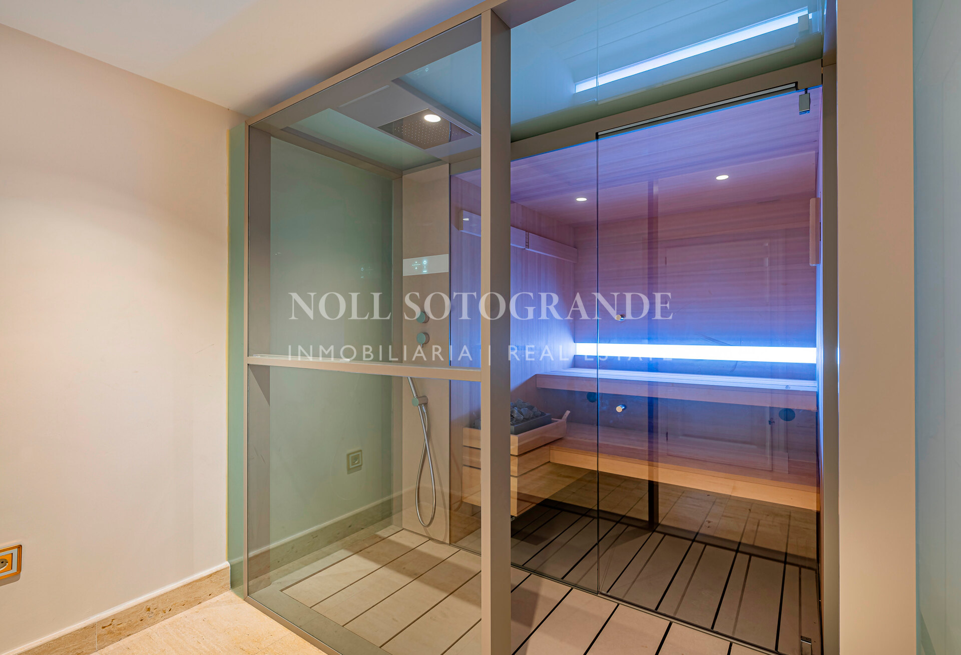 Sal al exterior a la terraza privada, donde una piscina climatizada te invita a disfrutar de las vistas panorámicas del mar y los jardines exuberantes. Ya sea que prefieras espacios cubiertos o descubiertos, las terrazas proporcionan el telón de fondo perfecto para la vida al aire libre.