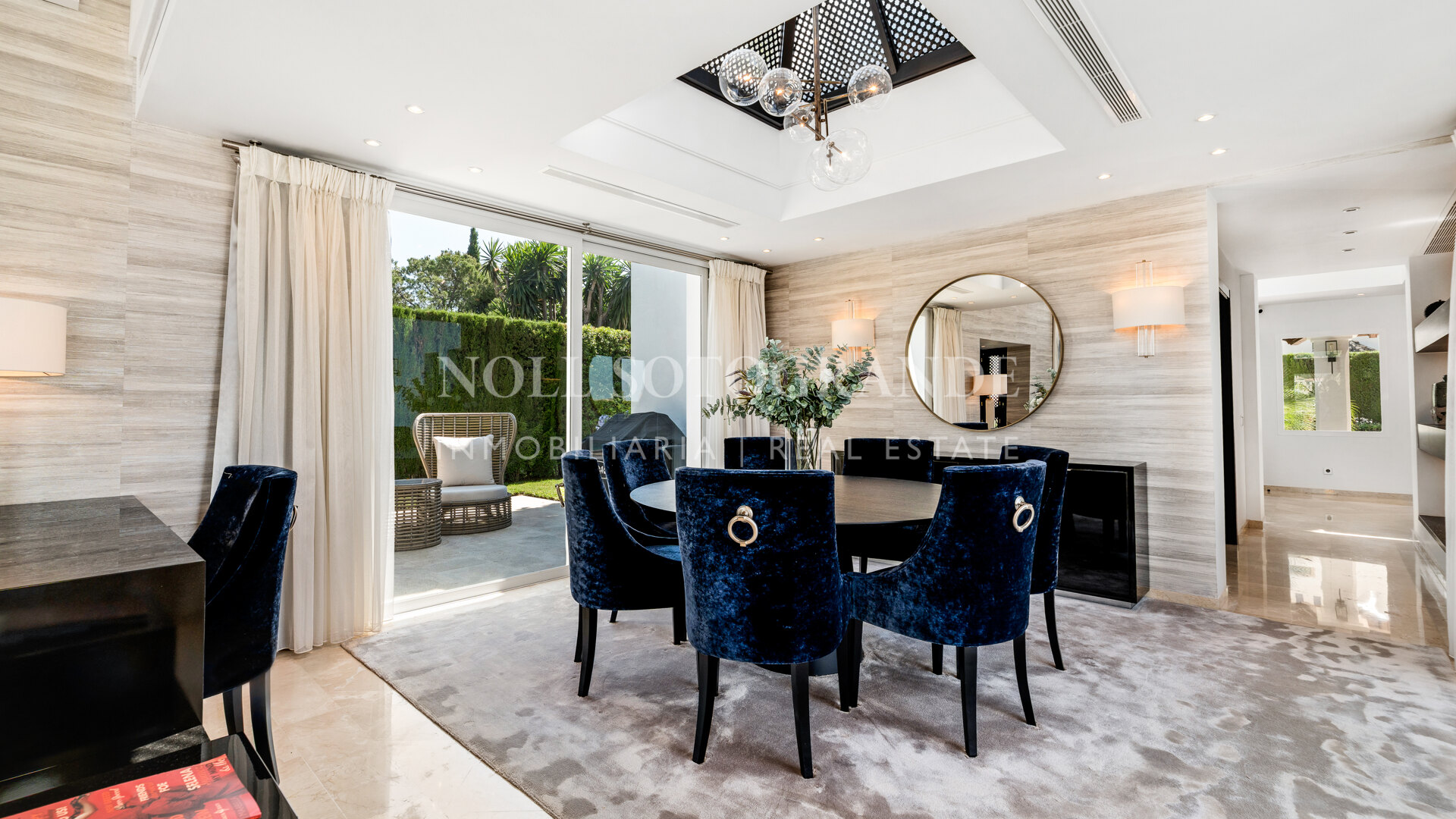 Distribuida en 3 plantas, la vivienda comprende, en la planta de entrada: un gran vestíbulo con techo de doble altura, luminoso salón-comedor con ventanales de suelo a techo que dan acceso a la amplia terraza cubierta y a la zona de piscina privada—ideal para el entretenimiento al aire libre y la relajación; cocina moderna con electrodomésticos Meile, tres amplios dormitorios, cada uno con acceso a terrazas privadas y dos de ellos con baño en suite, además de un baño completo independiente. En la planta superior, la lujosa suite principal incluye un gran dormitorio, vestidor, elegante baño en suite y una terraza privada con espectaculares vistas al mar y al campo de golf, hacia Gibraltar y la costa del norte de África. En la planta inferior, un apartamento de invitados independiente—con entrada propia desde el jardín, dormitorio y baño en suite—ofrece total privacidad y comodidad para los visitantes.